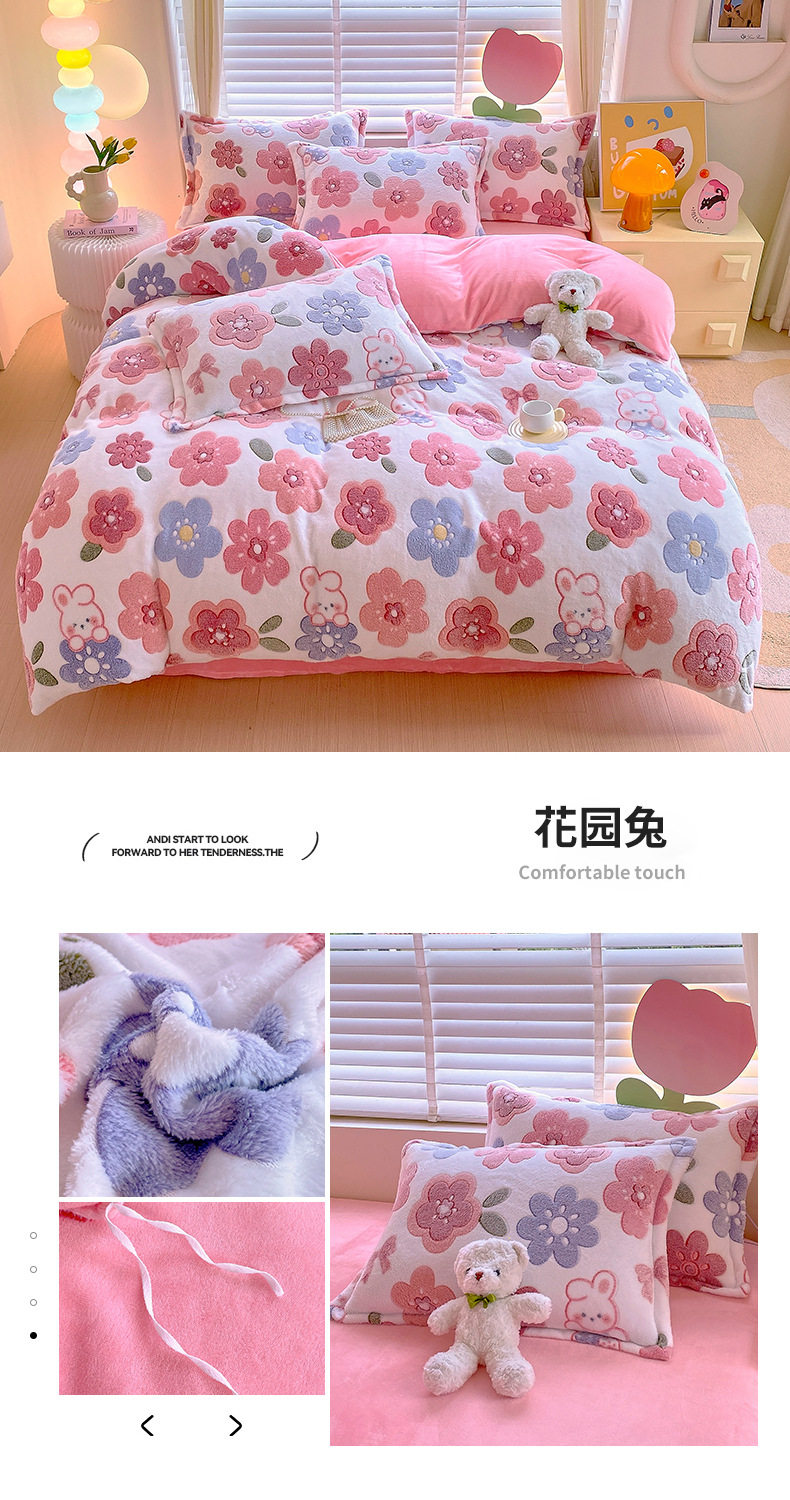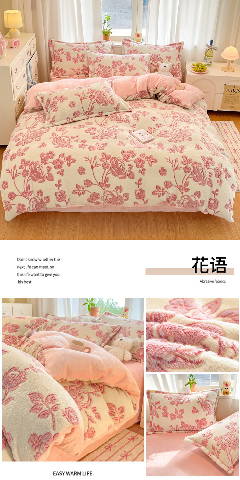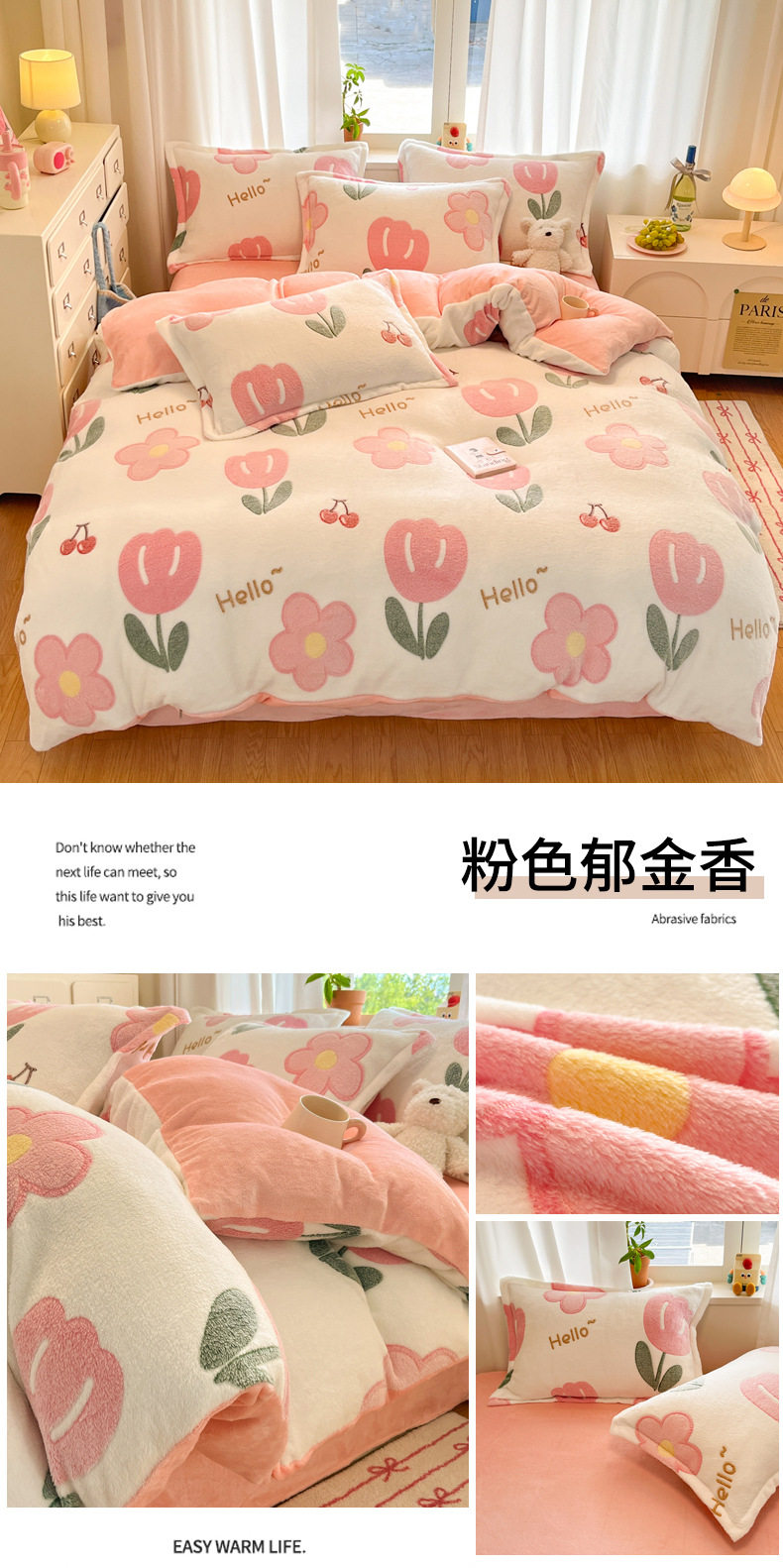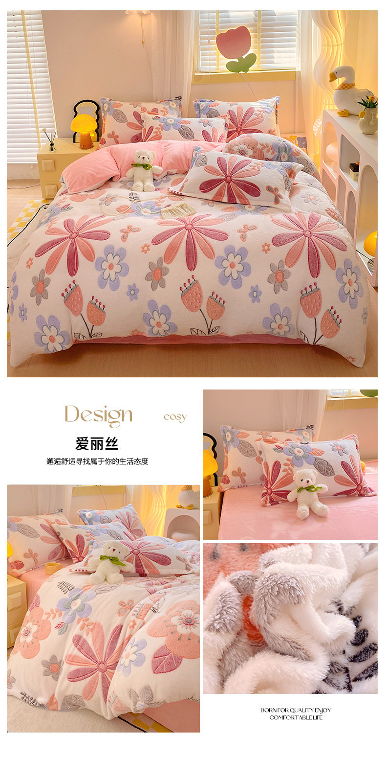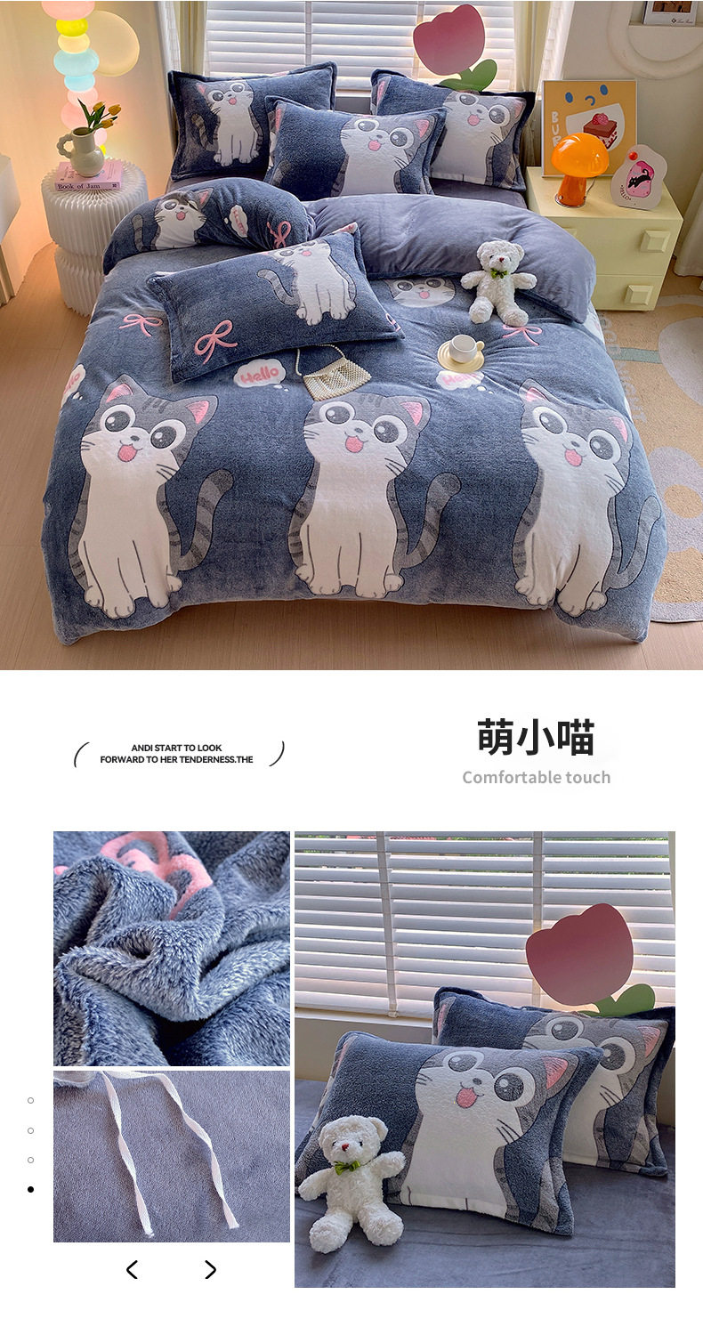 Thickened Snowflake Velvet Four-Piece Winter Coral Milk Velvet Quilt Cover Double-Sided Velvet Bed Sheets Quilt Cover Three-Piece Fitted Bed Sheets Set