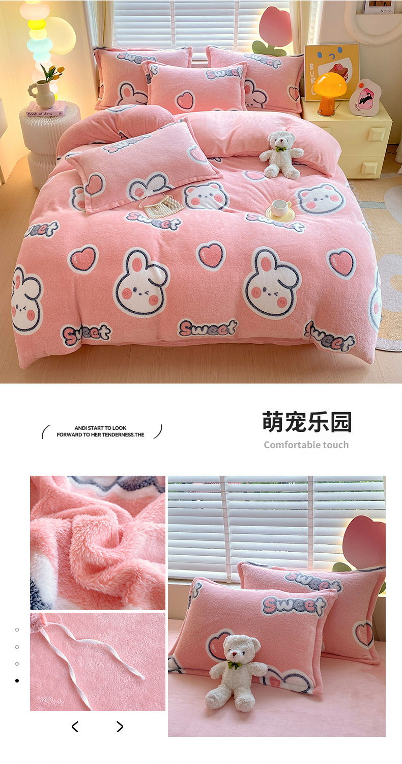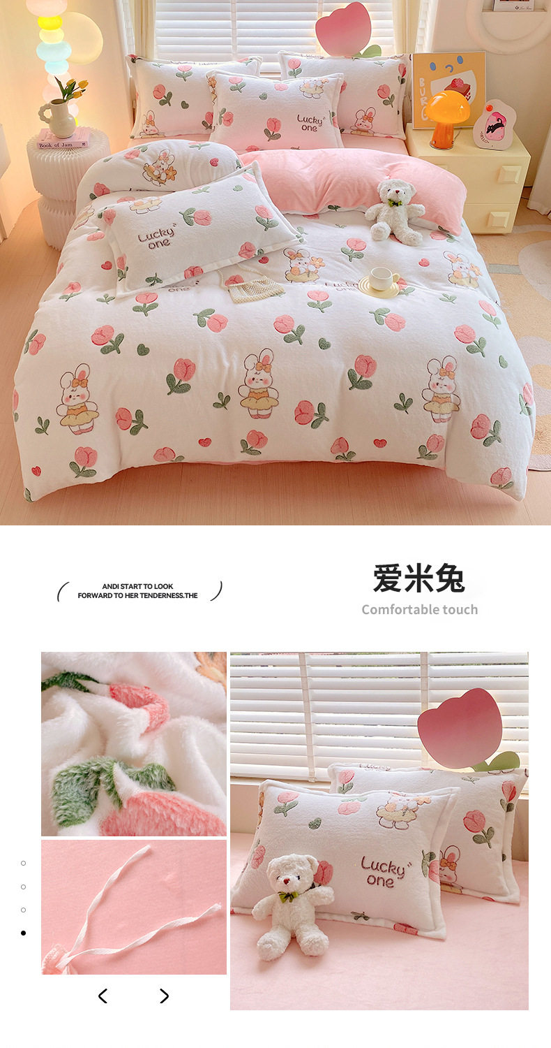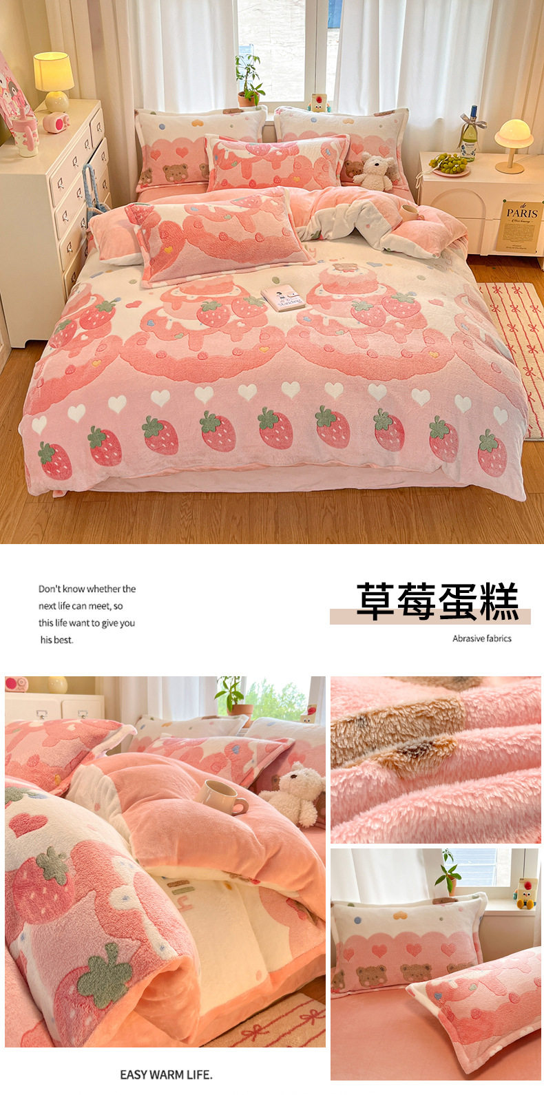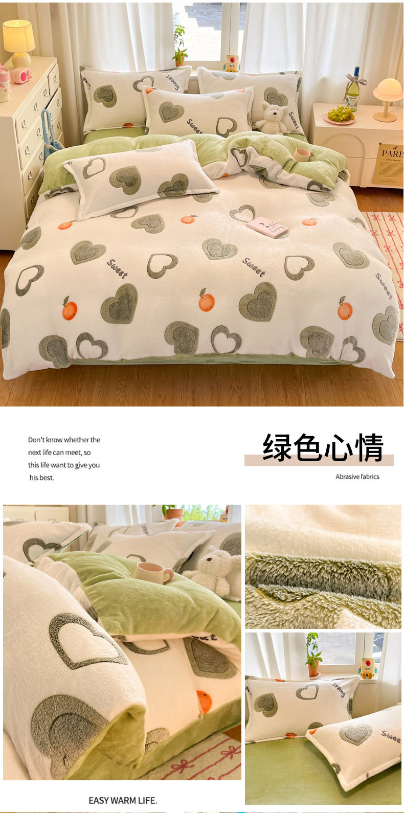 Thickened Snowflake Velvet Four-Piece Winter Coral Milk Velvet Quilt Cover Double-Sided Velvet Bed Sheets Quilt Cover Three-Piece Fitted Bed Sheets Set