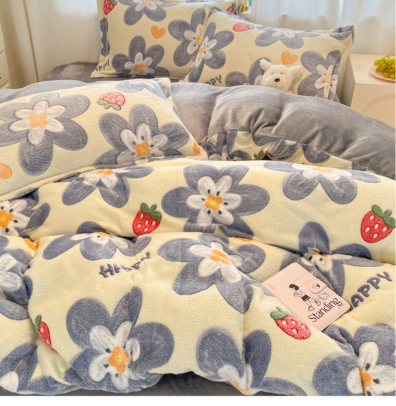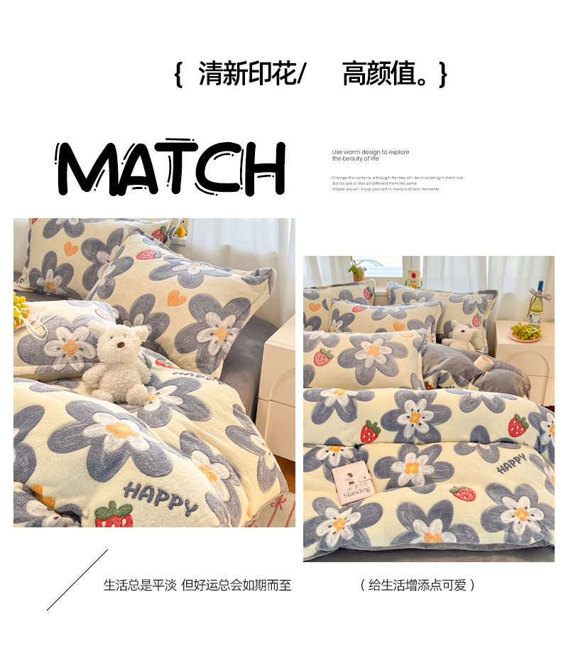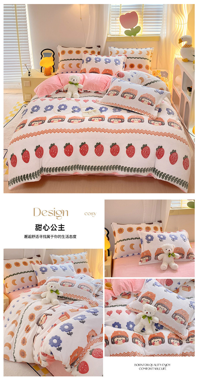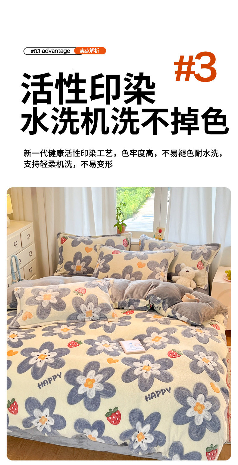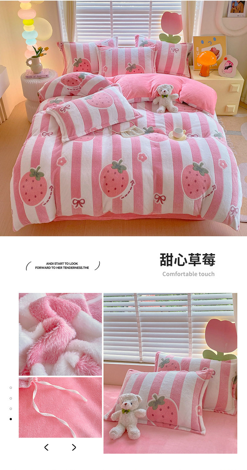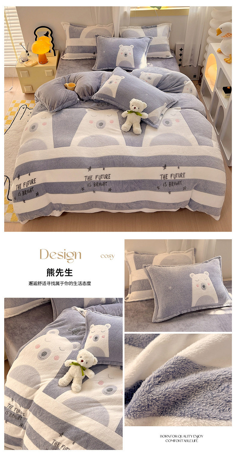 Thickened Snowflake Velvet Four-Piece Winter Coral Milk Velvet Quilt Cover Double-Sided Velvet Bed Sheets Quilt Cover Three-Piece Fitted Bed Sheets Set