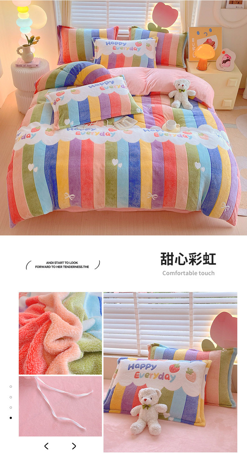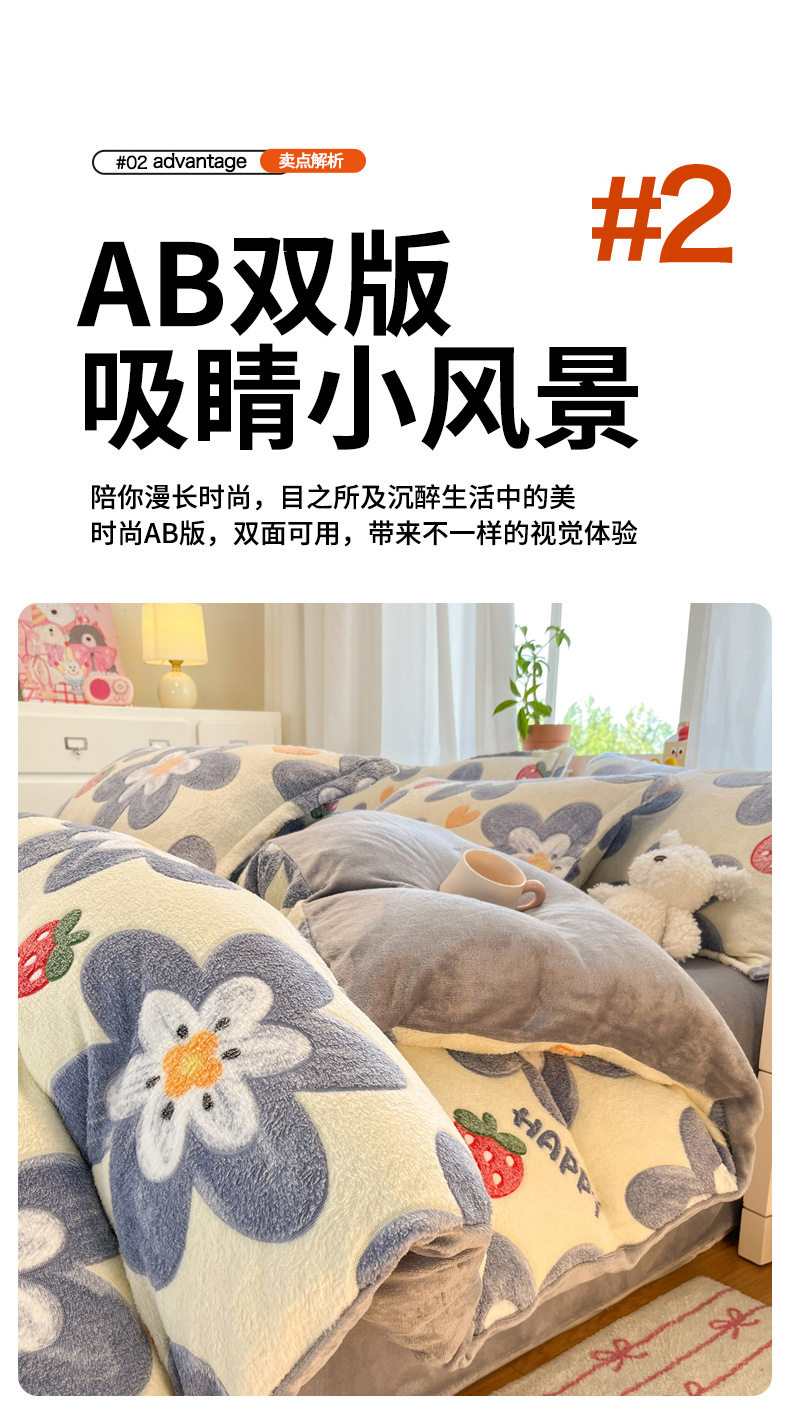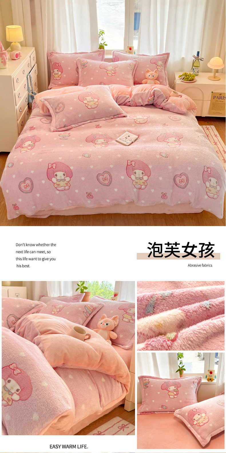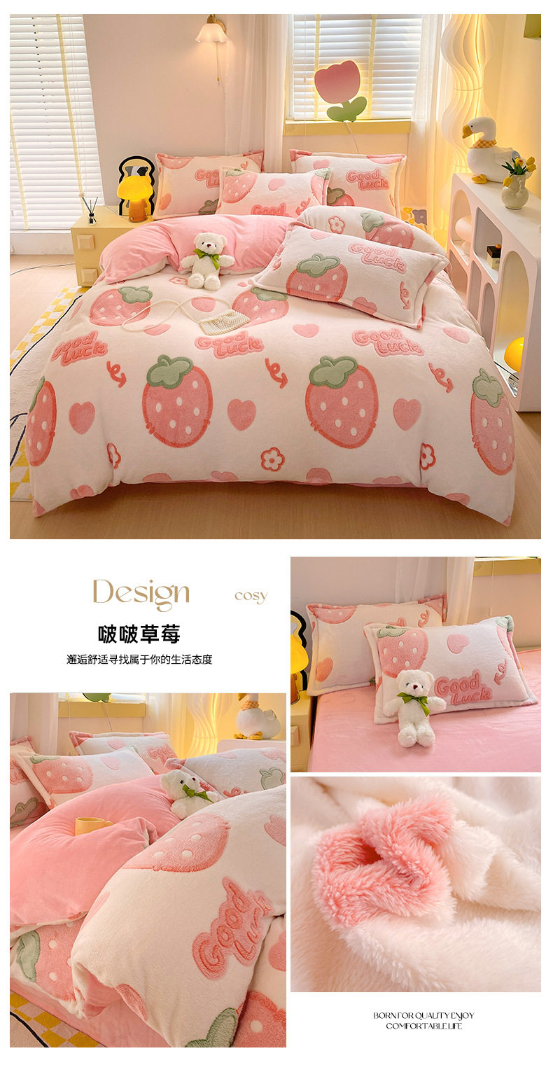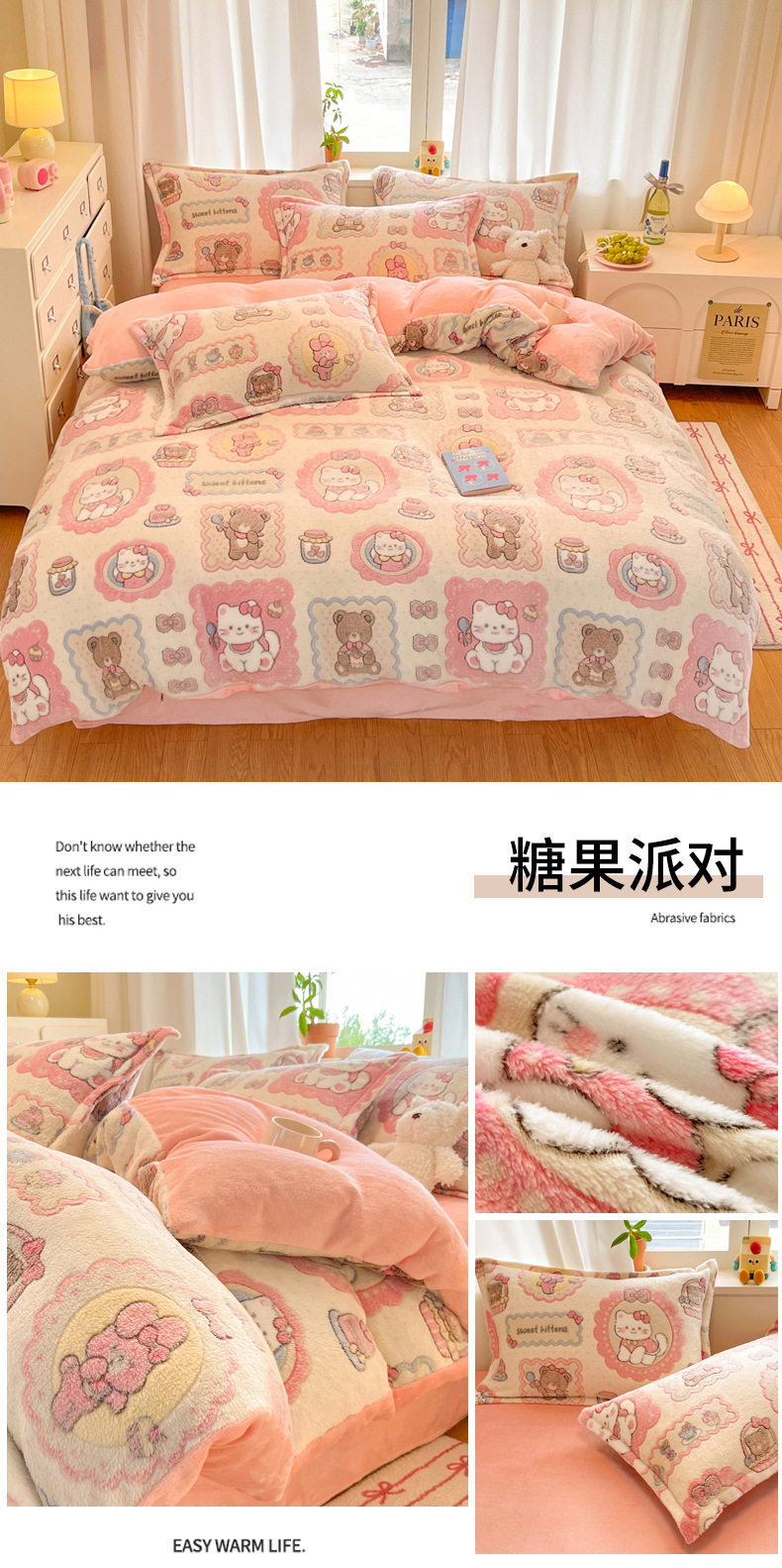 Thickened Snowflake Velvet Four-Piece Winter Coral Milk Velvet Quilt Cover Double-Sided Velvet Bed Sheets Quilt Cover Three-Piece Fitted Bed Sheets Set