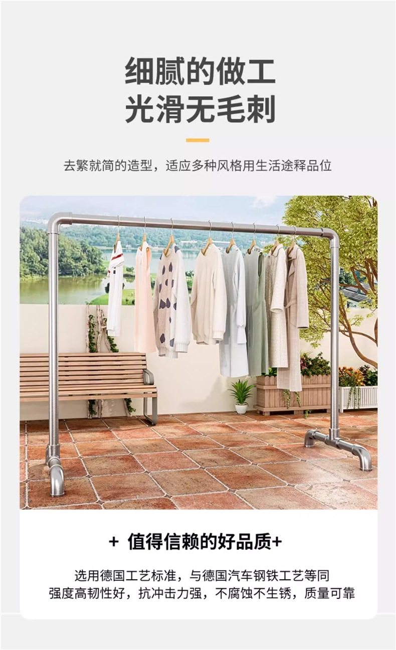Steel Pipe Clothes Drying Rack for Home Use, Floor-Standing Balcony Clothes Hanger, Quilt Drying Rack, Clothes Rack, Galvanized Single Rod Water Pipe
