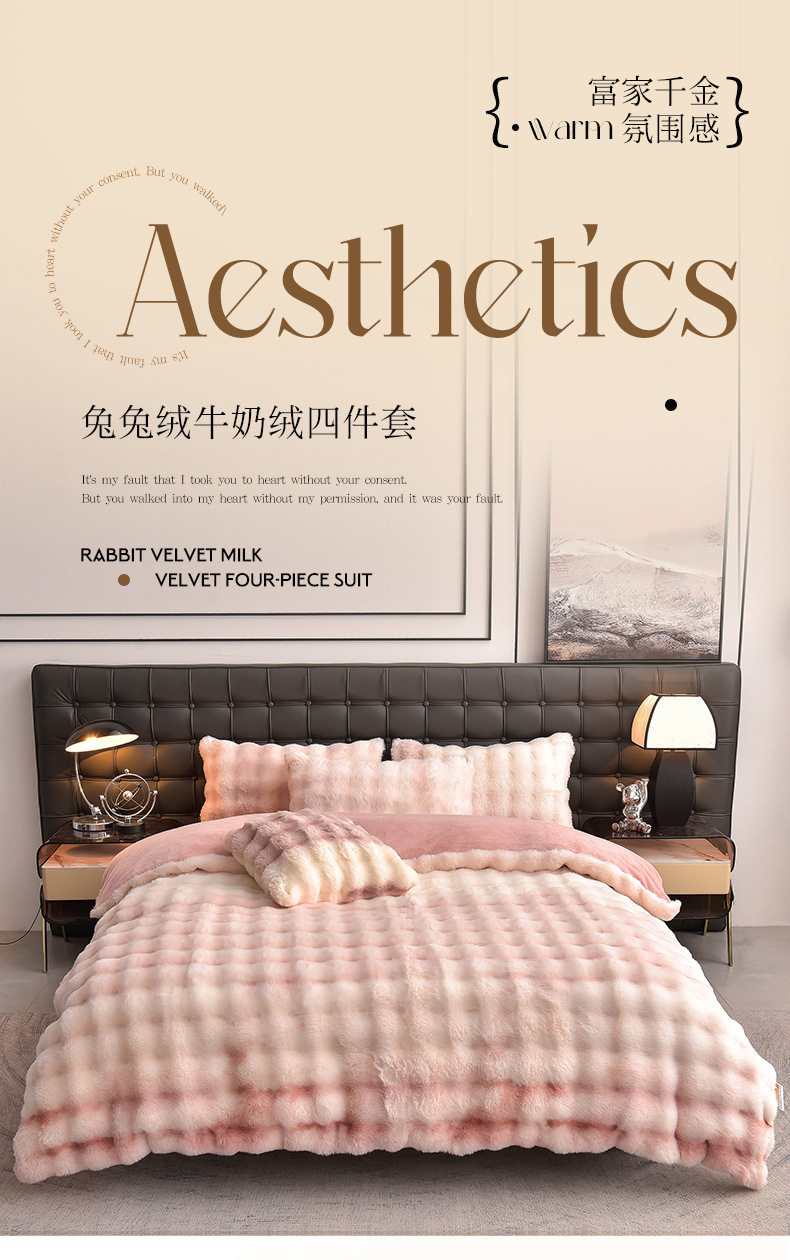 2024 New Rabbit Fur Live Broadcast Hot Style Rabbit Fur Rabbit Velvet Rabbit Fur Four-Piece Set