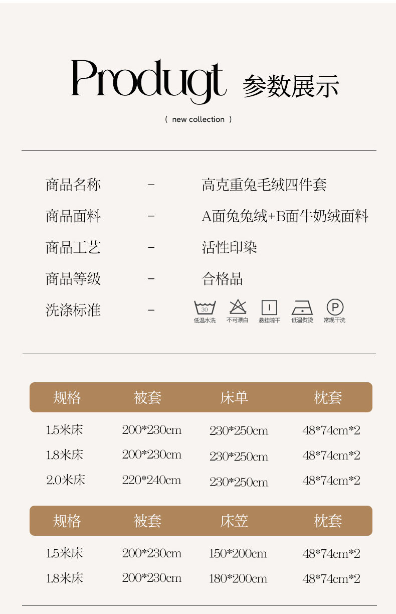 | Size specifications | 1.2m bed sheet three-piece set,1.5m bed sheet four-piece set,1.8m bed sheet four-piece set,2.0m bed sheet four-piece set,1.5m fitted sheet set of four,1.8m fitted sheet set of four |