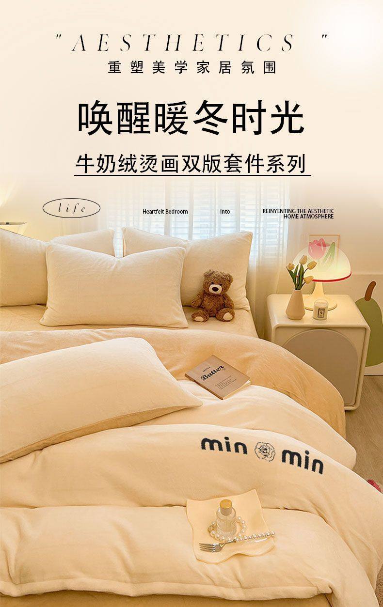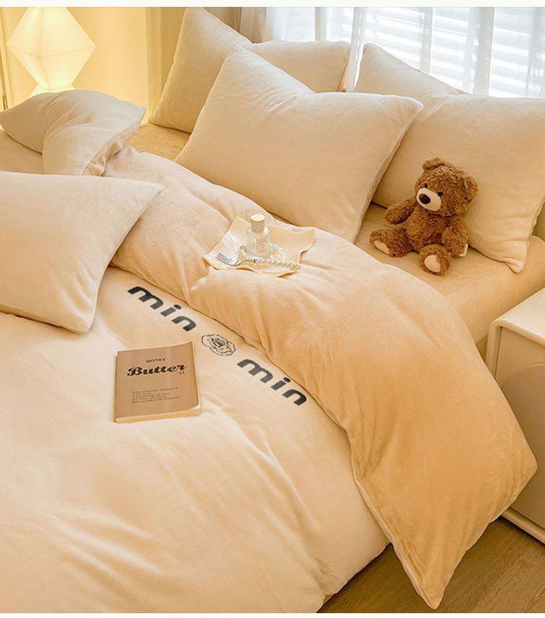 Autumn and Winter Milk Velvet Bed Four-Piece Set Thickeneded Coral Velvet Quilt Cover Double-Sided Flannel Bed Bed Sheets Three-Piece Dormitory Set