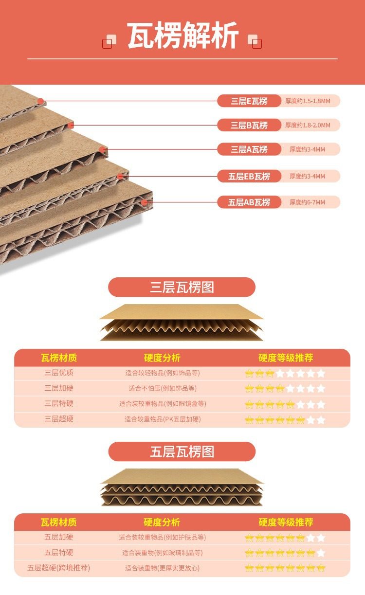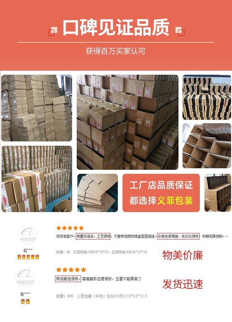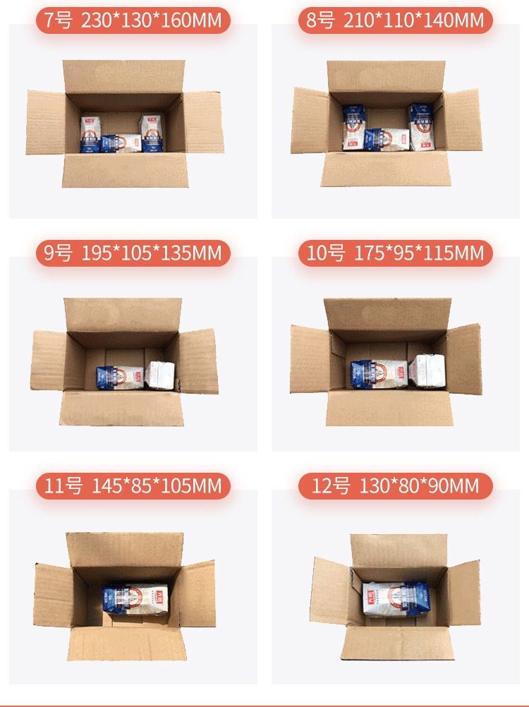 | Specifications and models | No. 13 130*80*45mm; three layers of high quality (blank); none,No. 13 130*80*45mm; three layers of hardening (blank); none,No. 12 130*80*90mm; three layers of high quality (blank); none,No. 12 130*80*90mm; three layers of hardening (blank); none,No. 12 130*80*90mm; three layers of extra hard (blank); none,No. 12 130*80*90mm; three layers of super hard (blank); none,No. 12 130*80*90mm; five layers of hardening (blank); none,No. 12 130*80*90mm; five layers of extra hard (blank); none,No. 11 145*85*105mm; three layers of high quality (blank); none,No. 11 145*85*105mm; three layers of hardening (blank); none,No. 11 145*85*105mm; three layers of extra hard (blank); none,No. 11 145*85*105mm; three layers of super hard (blank); none,No. 11 145*85*105mm; five layers of hardening (blank); none,No. 11 145*85*105mm; five layers of extra hard (blank); none,No. 10 175*95*115mm; three layers of high quality (blank); none,No. 10 175*95*115mm; three layers of hardening (blank); none,No. 10 175*95*115mm; three layers of extra hard (blank); none,No. 10 175*95*115mm; three layers of super hard (blank); none,No. 10 175*95*115mm; five layers of hardening (blank); none,No. 10 175*95*115mm; five layers of extra hard (blank); none,No. 9 195*105*135mm; three layers of high quality (blank); none,No. 9 195*105*135mm; three layers of hardening (blank); none,No. 9 195*105*135mm; three layers of extra hard (blank); none,No. 9 195*105*135mm; three layers of super hard (blank); none,No. 9 195*105*135mm; five layers of hardening (blank); none,No. 9 195*105*135mm; five layers of extra hard (blank); none,No. 8 210*110*140mm; three layers of high quality (blank); none,No. 8 210*110*140mm; three layers of hardening (blank); none,No. 8 210*110*140mm; three layers of extra hard (blank); none,No. 8 210*110*140mm; three layers of super hard (blank); none,No. 8 210*110*140mm; five layers of hardening (blank); none,No. 8 210*110*140mm; five layers of extra hard (blank); none,No. 7 230*130*160mm; three layers of high quality (blank); none,No. 7 230*130*160mm; three layers of hardening (blank); none,No. 7 230*130*160mm; three layers of extra hard (blank); none,No. 7 230*130*160mm; three layers of super hard (blank); none,No. 7 230*130*160mm; five layers of hardening (blank); none,No. 7 230*130*160mm; five layers of extra hard (blank); none,No. 6 260*150*180mm; three layers of high quality (blank); none,No. 6 260*150*180mm; three layers of hardening (blank); none,No. 6 260*150*180mm; three layers of extra hard (blank); none,No. 6 260*150*180mm; three layers of super hard (blank); none,No. 6 260*150*180mm; five layers of hardening (blank); none,No. 6 260*150*180mm; five layers of extra hard (blank); none,No. 5 290*170*190mm; three layers of high quality (blank); none,No. 5 290*170*190mm; three layers of hardening (blank); none,No. 5 290*170*190mm; three layers of extra hard (blank); none,No. 5 290*170*190mm; three layers of super hard (blank); none,No. 5 290*170*190mm; five layers of hardening (blank); none,No. 5 290*170*190mm; five layers of extra hard (blank); none,No. 4 350*190*230mm; three layers of high quality (blank); none,No. 4 350*190*230mm; three layers of hardening (blank); none,No. 4 350*190*230mm; three layers of extra hard (blank); none,No. 4 350*190*230mm; three layers of super hard (blank); none,No. 4 350*190*230mm; five layers of hardening (blank); none,No. 4 350*190*230mm; five layers of extra hard (blank); none,No. 3 430*210*270mm; three layers of hardening (blank); none,No. 3 430*210*270mm; three layers of extra hard (blank); none,No. 3 430*210*270mm; three layers of super hard (blank); none,No. 3 430*210*270mm; five layers of hardening (blank); none,No. 3 430*210*270mm; five layers of extra hard (blank); none,No. 2 530*230*290mm; five layers of hardening (blank); none,No. 2 530*230*290mm; five layers of extra hard (blank); none,No. 1 530*290*370mm; five layers of hardening (blank); none,No. 1 530*290*370mm; five layers of extra hard (blank); none,No. 11 half-height box 145*85*53mm; three layers of hardening (blank); none,No. 10 half-height box 175*95*57mm; three layers of hardening (blank); none,No. 9 half-height box 195*105*67mm; three layers of hardening (blank); none,No. 8 half-height box 210*110*70mm; three layers of hardening (blank); none,No. 7 half-height box 230*130*80mm; three layers of hardening (blank); none,No. 6 half-height box 260*150*90mm; three layers of hardening (blank); none,No. 5 half-height box 290*170*95mm; three layers of hardening (blank); none,No. 4 half-height box 350*190*110mm; three layers of hardening (blank); none,No. 3 half-height box 430*210*135mm; three layers of hardening (blank); none,10*10*10cm; three layers of extra hard (blank); none,15*15*15cm; three layers of extra hard (blank); none,20*20*20cm; three layers of extra hard (blank); none,25*25*25cm; three layers of extra hard (blank); none,30*30*30cm; three layers of extra hard (blank); none,30*30*30cm; five layers of super hard (blank); none,35*35*35cm; five layers of super hard (blank); none,40*40*40cm; five layers of super hard (blank); none,30*25*20cm; five layers of super hard (blank); none,30*30*20cm; five layers of super hard (blank); none,40*30*20cm; five layers of super hard (blank); none,40*30*30cm; five layers of super hard (blank); none,50*40*30cm; five layers of super hard (blank); none,50*40*40cm; five layers of super hard (blank); none,60*40*30cm; five layers of super hard (blank); none,60*40*40cm; five layers of super hard (blank); none,60*40*50cm; five layers of super hard (blank); none |
