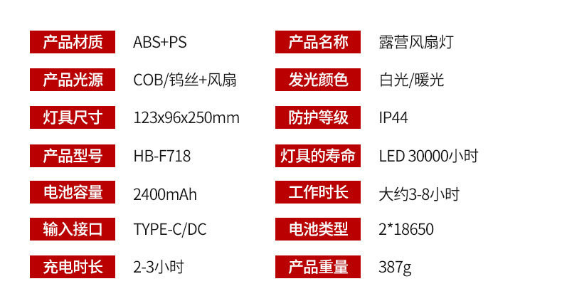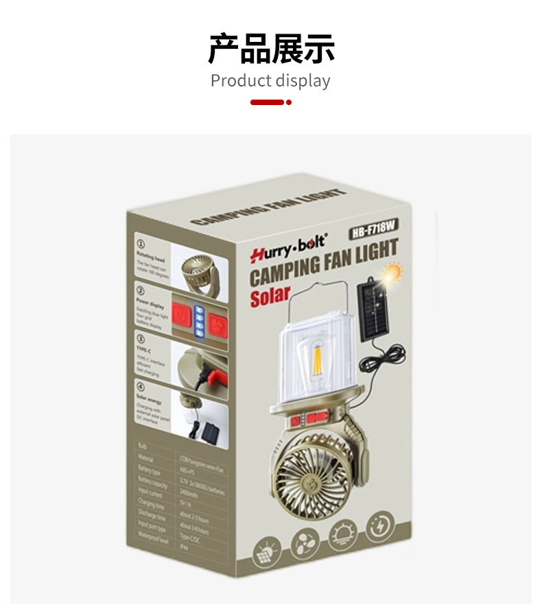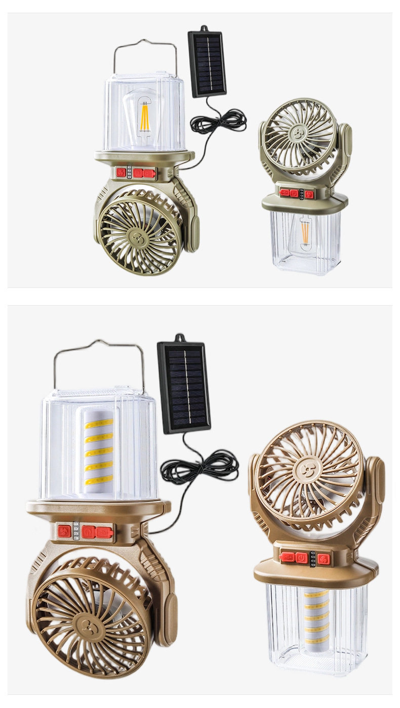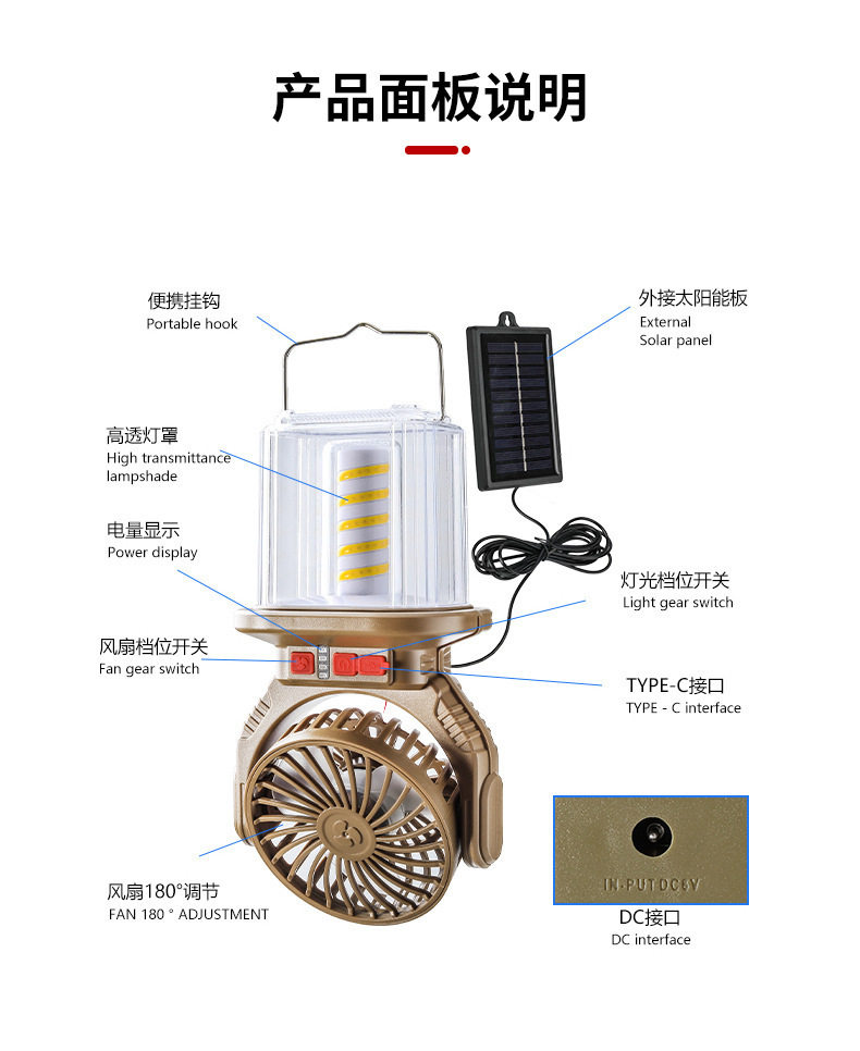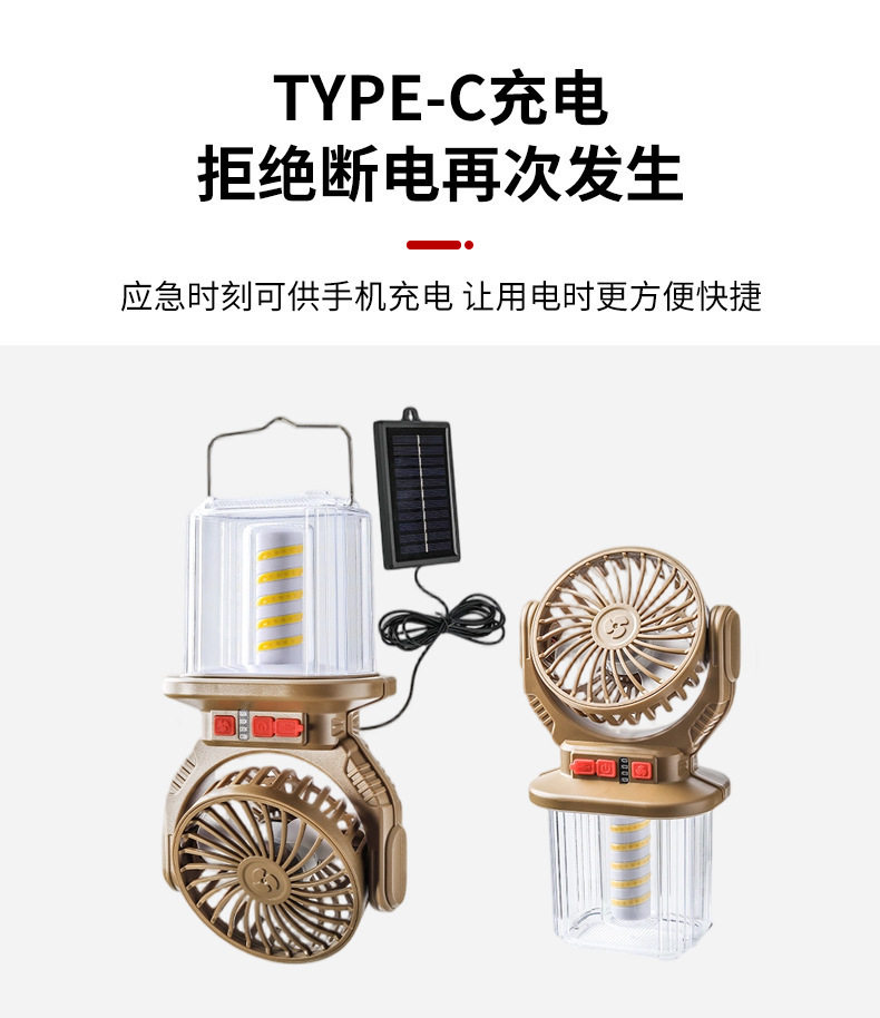 Outdoor Solar Camping Light Fan Light Portable Light Dual Light Source Lighting Hook Long Life Emergency Light