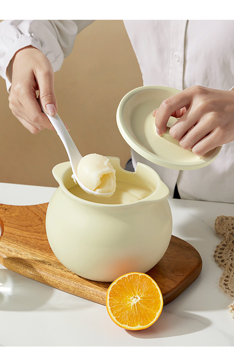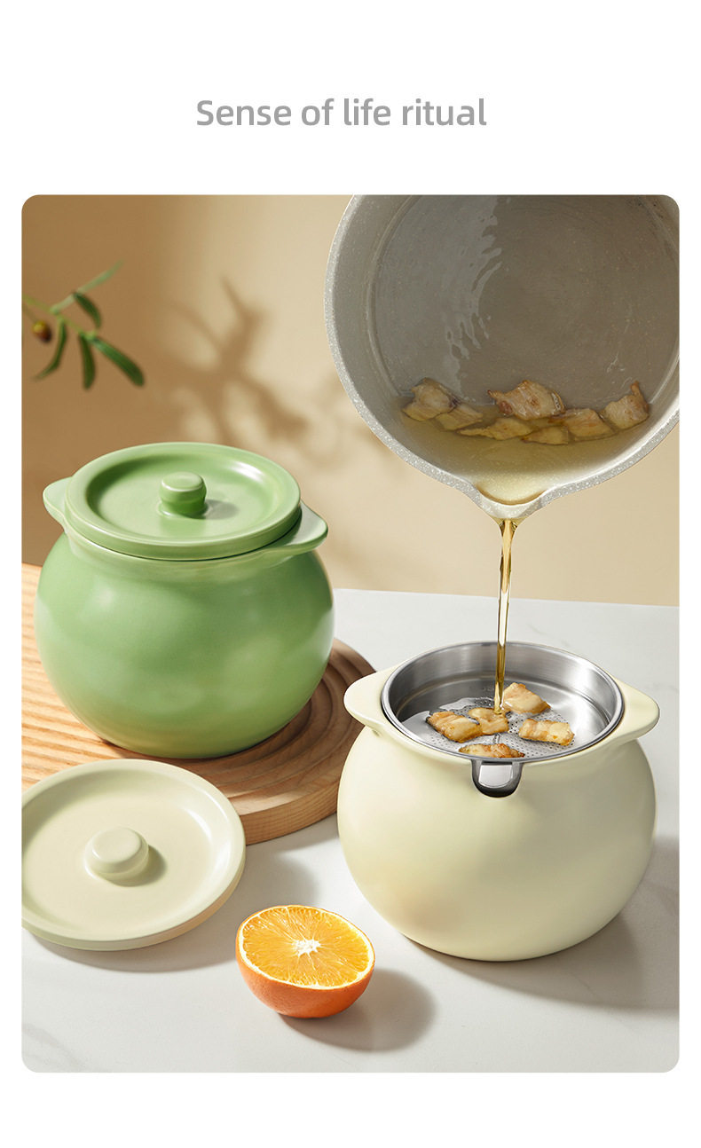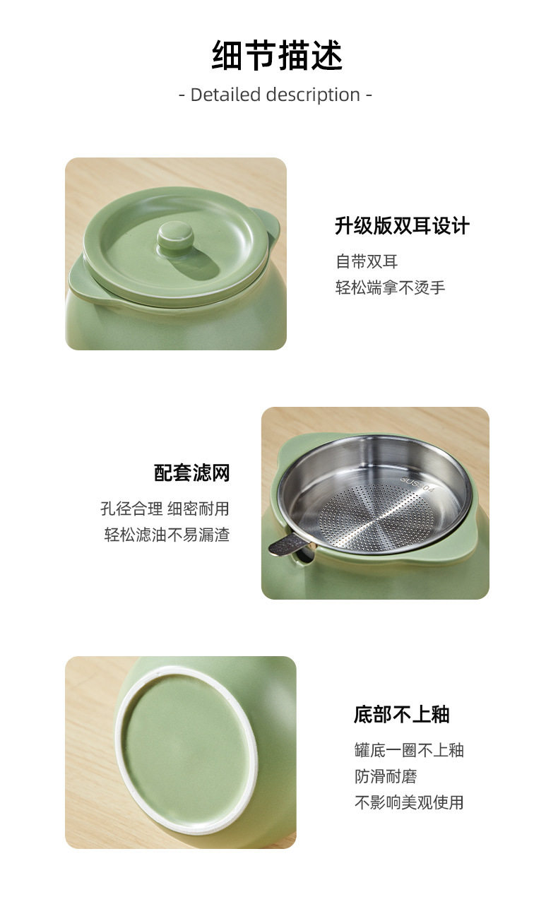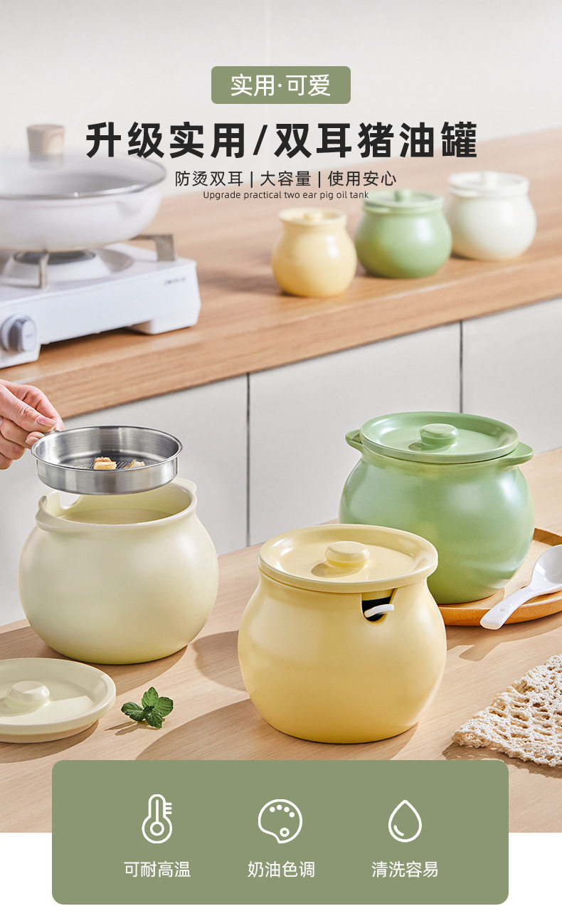High-Temperature Resistant Ceramic Lard Jar, Household Kitchen Oil and Chili Seasoning Container with Lid and Spoon, Microwaveable Lard Jar