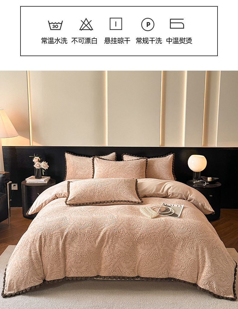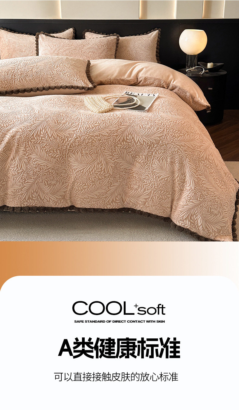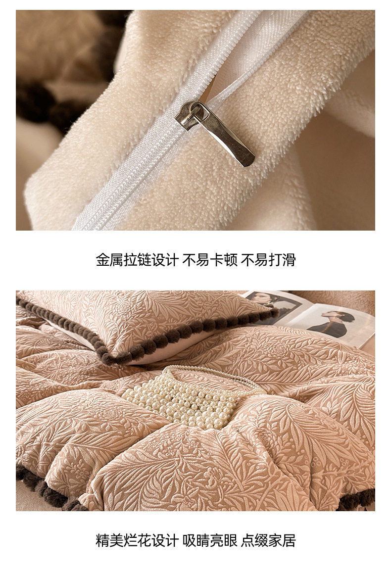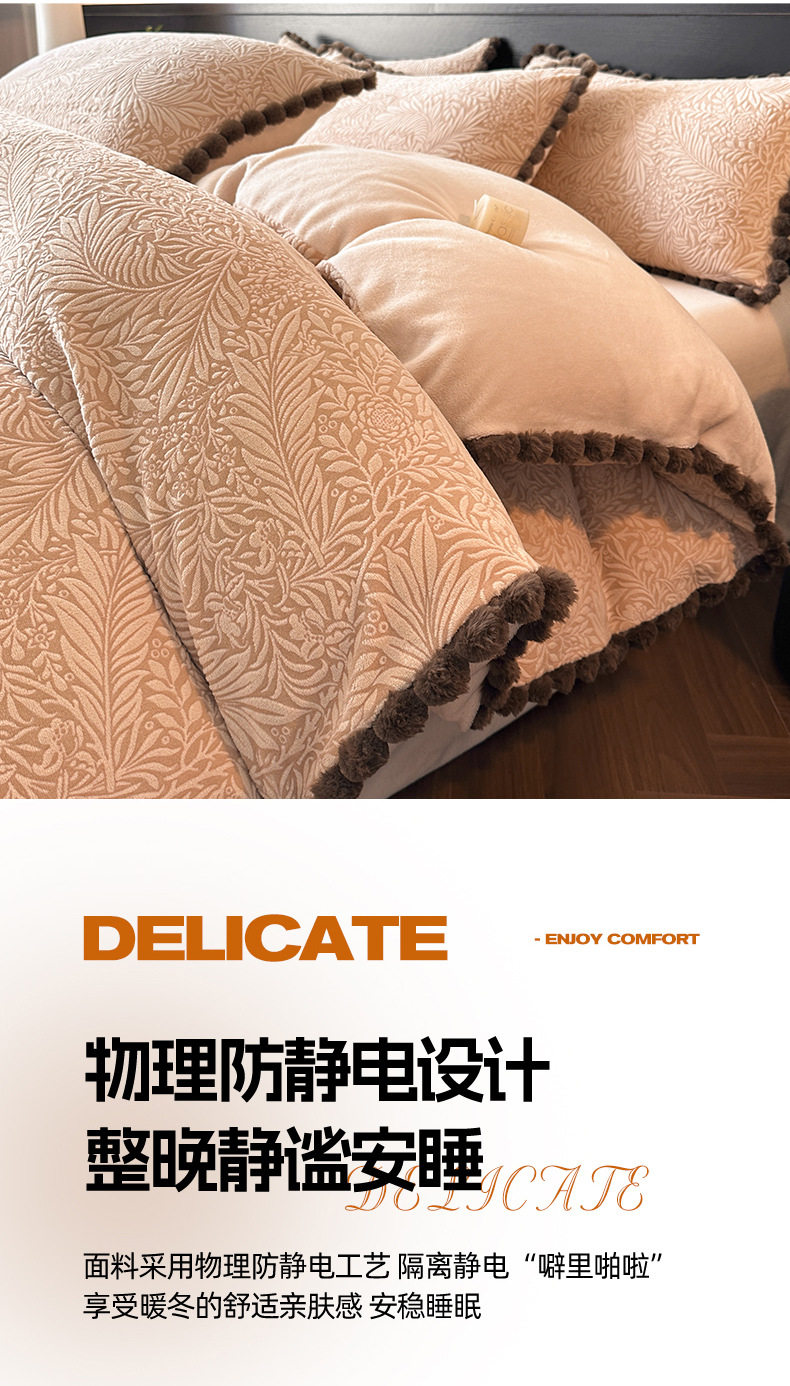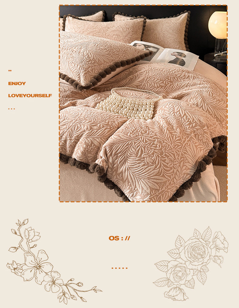 Rabbit Fur Ball Carved Milk Velvet Accessible Luxury Bed Four-Piece Set Coral Velvet Fleece-Lined Thickeneded Bed Bed Sheets Quilt Cover Three-Piece Winter Set
