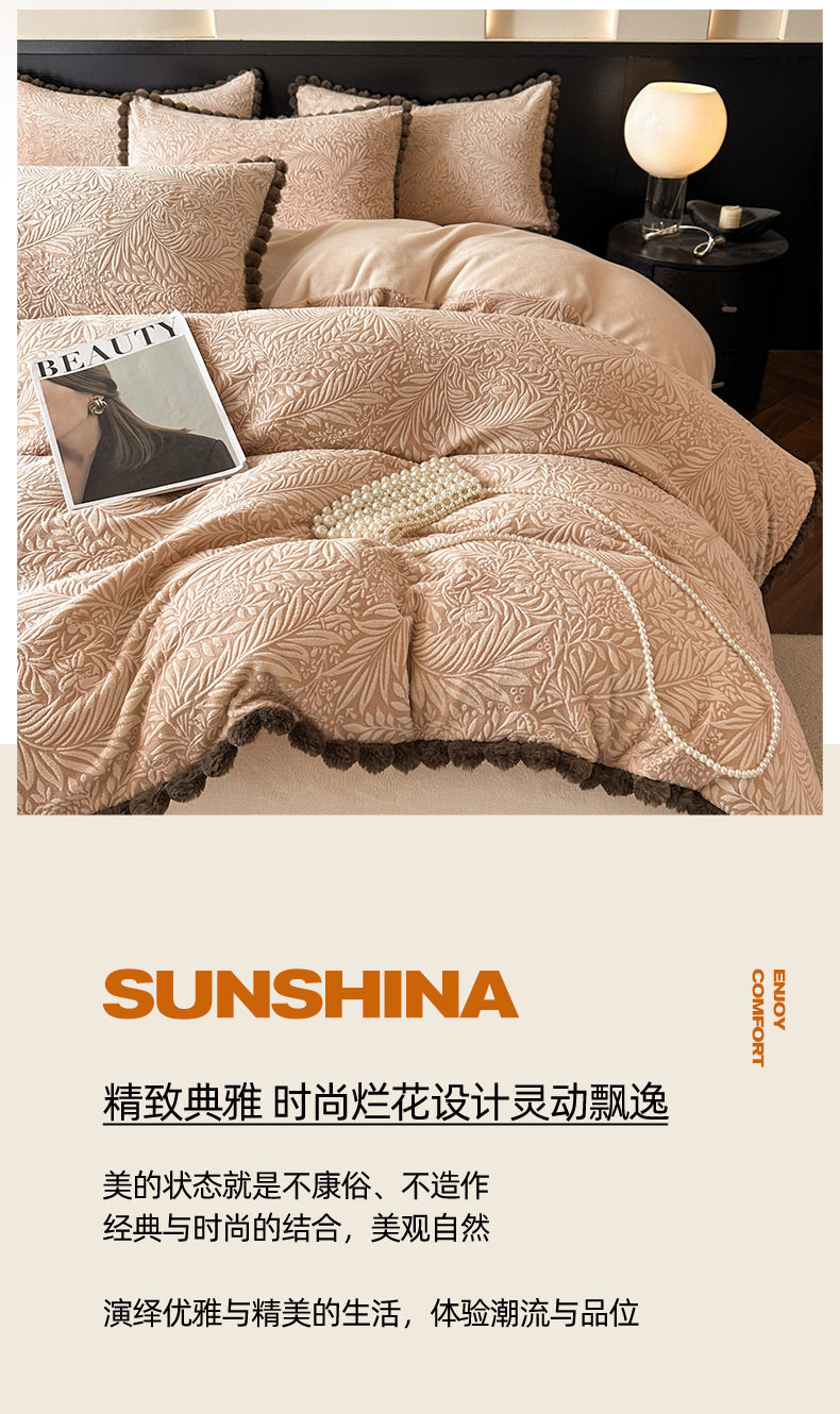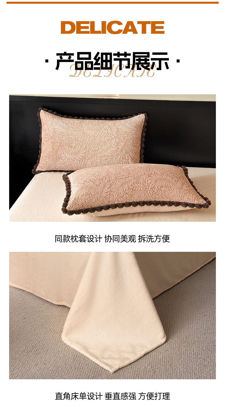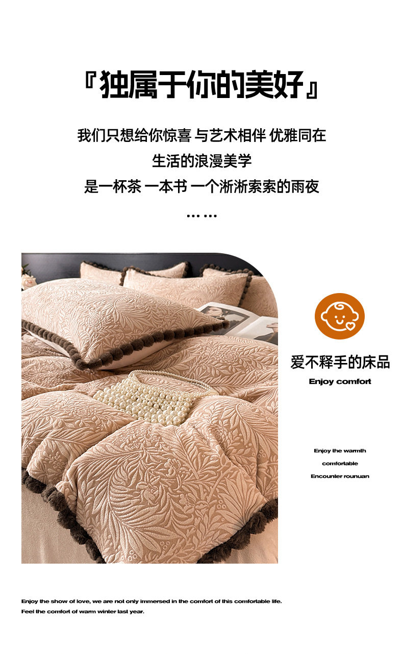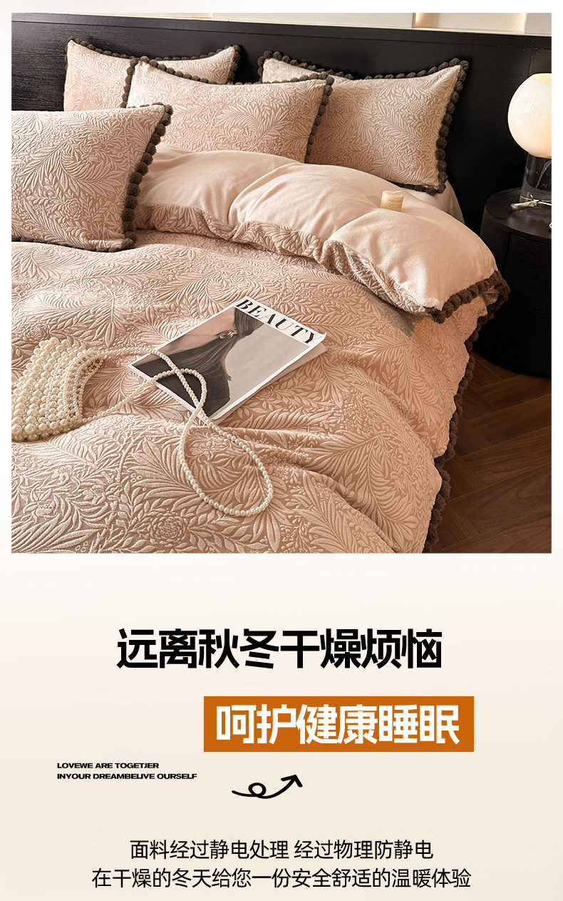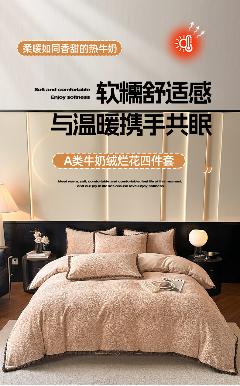 Rabbit Fur Ball Carved Milk Velvet Accessible Luxury Bed Four-Piece Set Coral Velvet Fleece-Lined Thickeneded Bed Bed Sheets Quilt Cover Three-Piece Winter Set