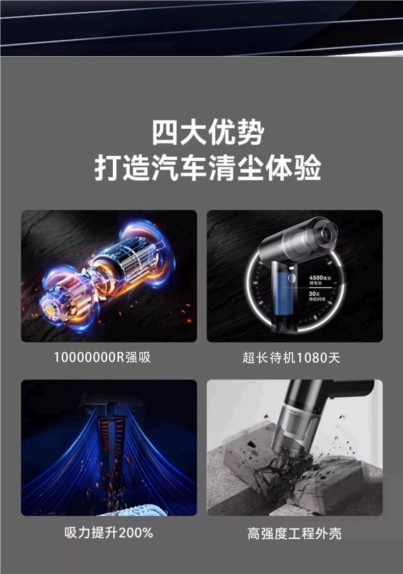 | Color classification | [flagship black] 9999000pa strong suction [320 minutes battery life brush_1 long suction nozzle_1 comes with filter element_*1],[flagship white] 9999000pa strong suction [320 minutes battery life brush_1 long suction nozzle_1 comes with filter element_*1],[black fast charging version] 10000000pa strong suction [560 minutes battery life brush_1 long nozzle_1 comes with filter element_1],[white fast charging version] 10000000pa strong suction [560 minutes battery life brush_1 long nozzle_1 comes with filter element_1] |