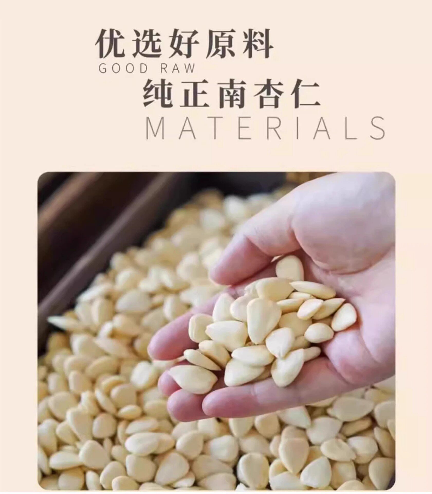 | Packaging specifications | Peeled south almond 180g*1 can,Peeled south almond 180g*2 cans,Peeled south almond 500g*1 bag,Peeled south almond 500g*2 bags |