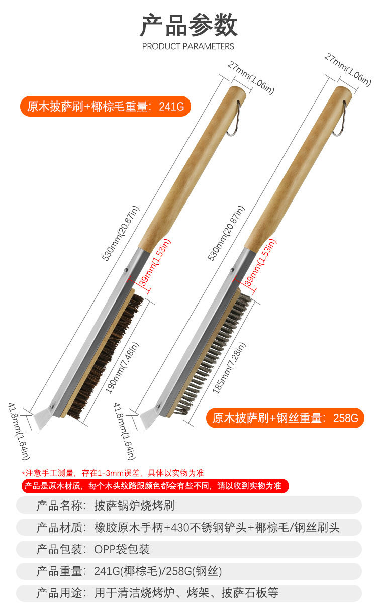 | Color | Log pizza brush (coconut palm hair),Pizza brush with replaceable brush head (steel wire),Pizza brush with replaceable brush head (coconut palm hair),Log pizza brush (steel wire) |