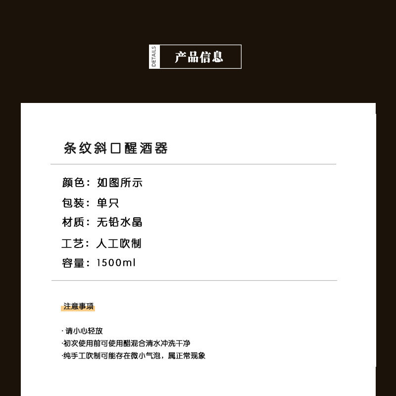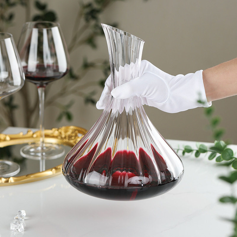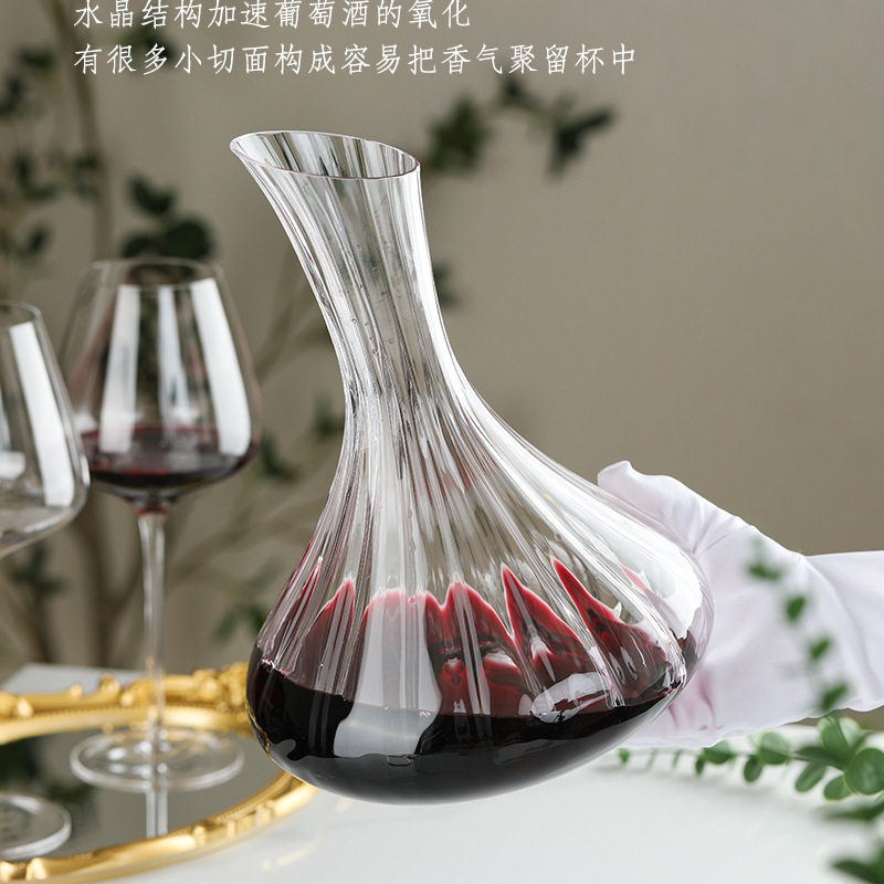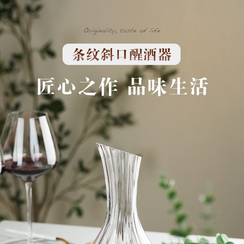 Restaurant Striped Crystal Red Wine Decanter with Slanted Mouth for Quick Decanting Wine Decanter for Home Use and Commercial Use