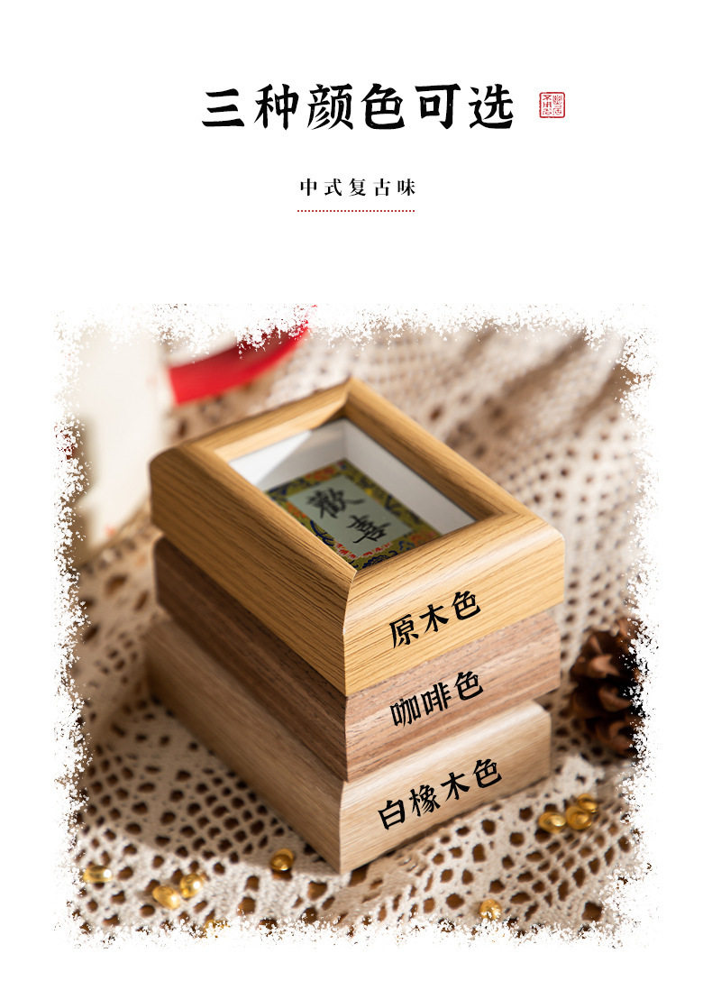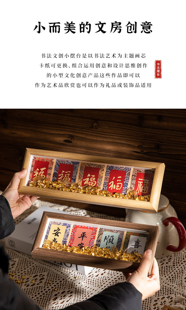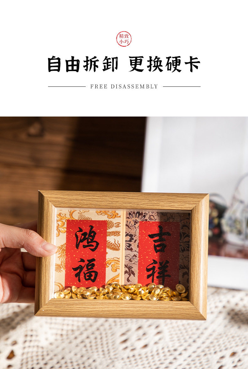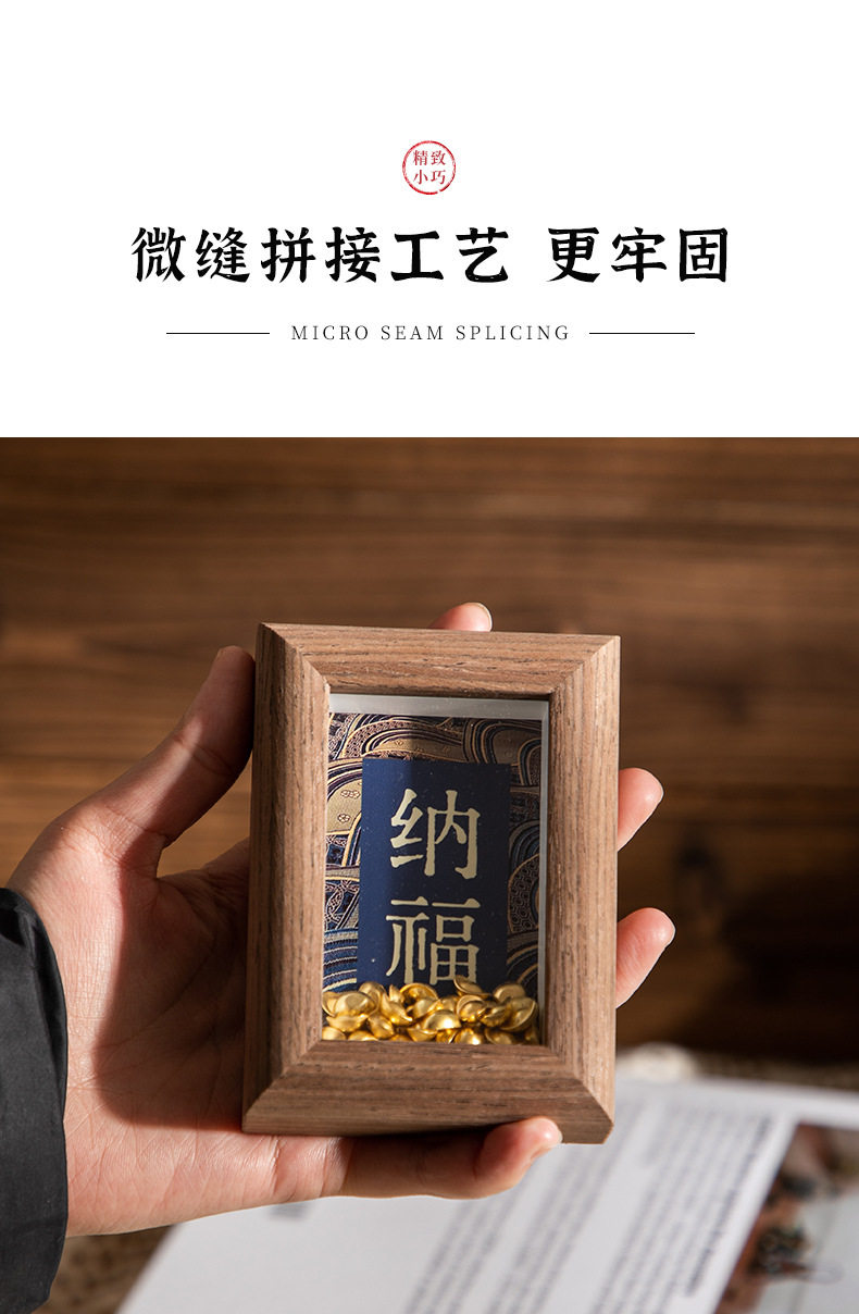 | Inner frame size | Wood color-hongfu-jixiang (8.9*12.7cm),Wood color-fulai-health (8.9*12.7cm),Coffee-hongfu-auspicious (8.9*12.7cm),Coffee-fulai-health (8.9*12.7cm),White oak-hongfu-auspicious (8.9*12.7cm),White oak-fulai-health (8.9*12.7cm),Log-good luck-rich-making money-making fortune (8.6*24cm),Log-ankang-peace-smoothness-joy (8.6*24cm),Coffee-good luck-get rich-make money-make a fortune (8.6*24cm),Coffee-ankang-peace-smoothness-joy (8.6*24cm),White oak - good luck - get rich - make money - make fortune (8.6*24cm),White oak-ankang-peace-smoothness-joy (8.6*24cm),Wood color-wufu (8.5*30cm),Log color-tian guan blessing (8.5*30cm),Brown-wufu (8.5*30cm),Brown-college blessing (8.5*30cm),White oak-wufu (8.5*30cm),White oak-tian guan blessing (8.5*30cm),Wood color-happiness (5.5*8.4cm),Wood color-nafu (5.5*8.4cm),Brown-happiness (5.5*8.4cm),Brown-nafu (5.5*8.4cm),White oak-happiness (5.5*8.4cm),White oak-nafu (5.5*8.4cm) |