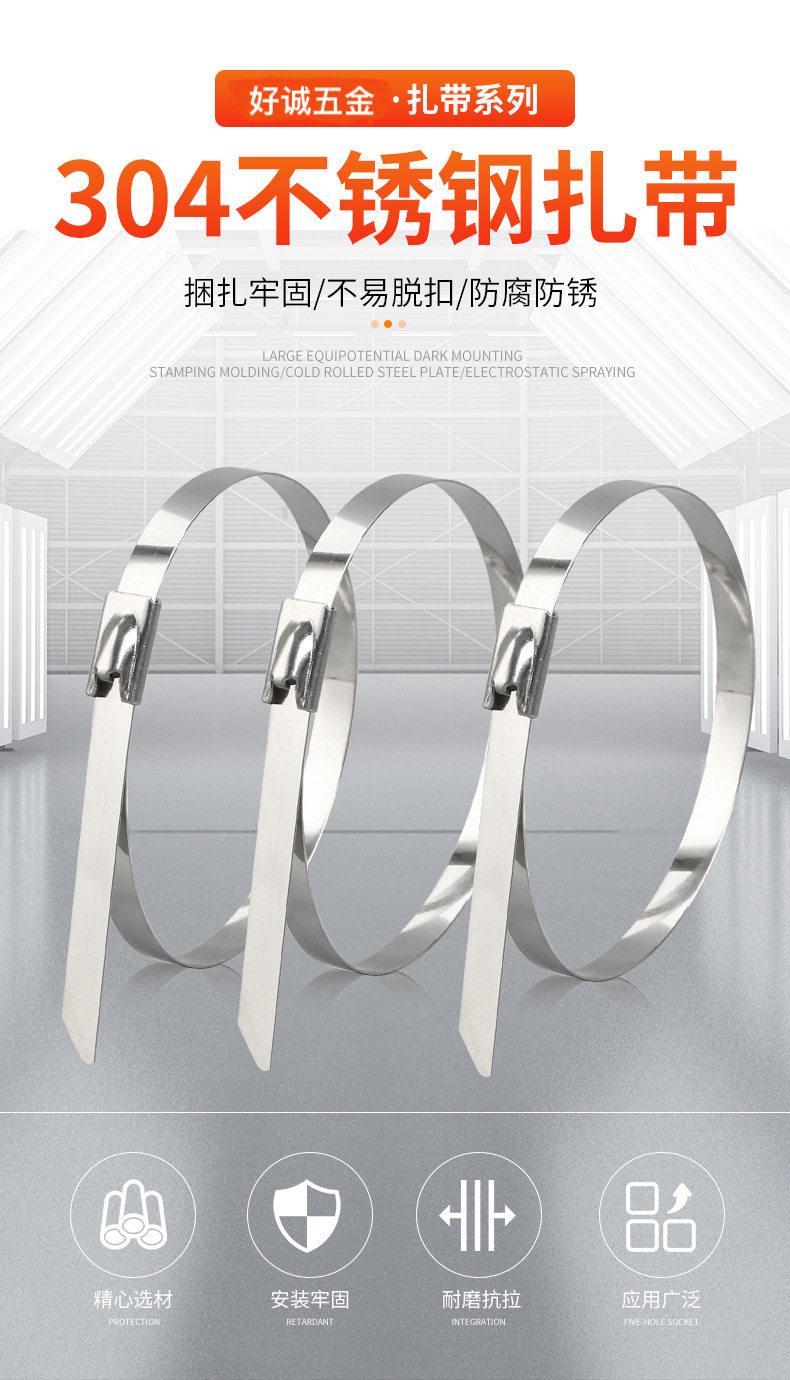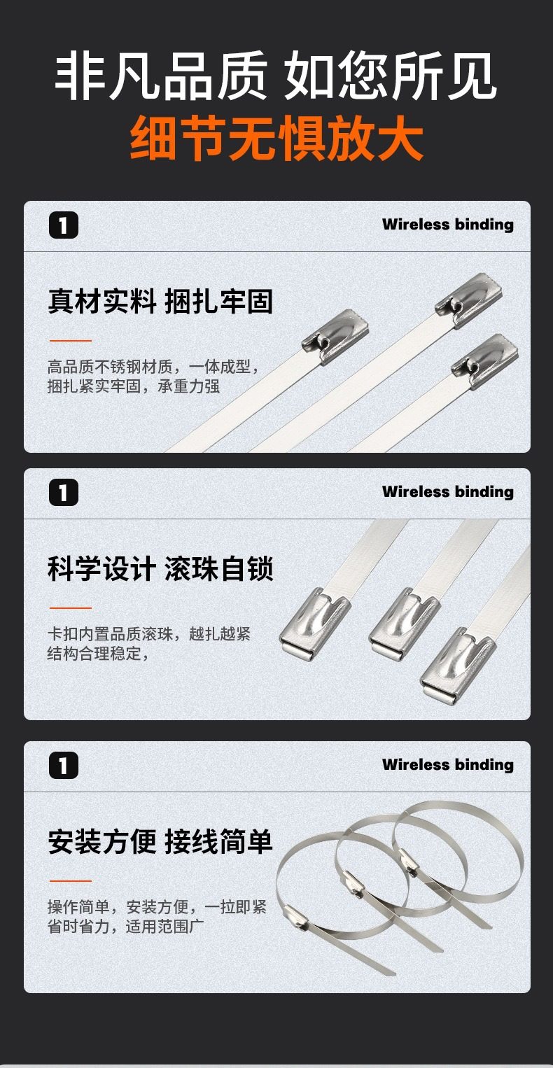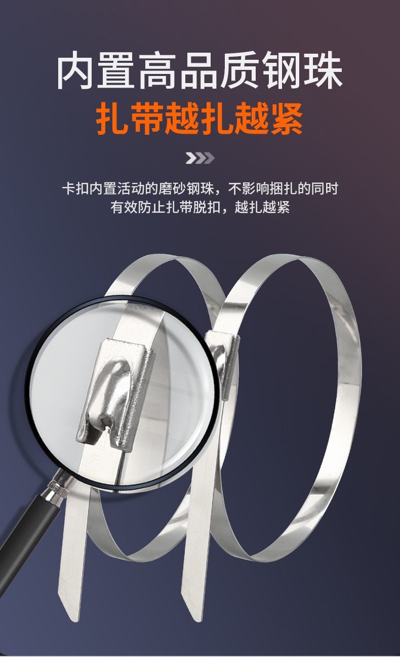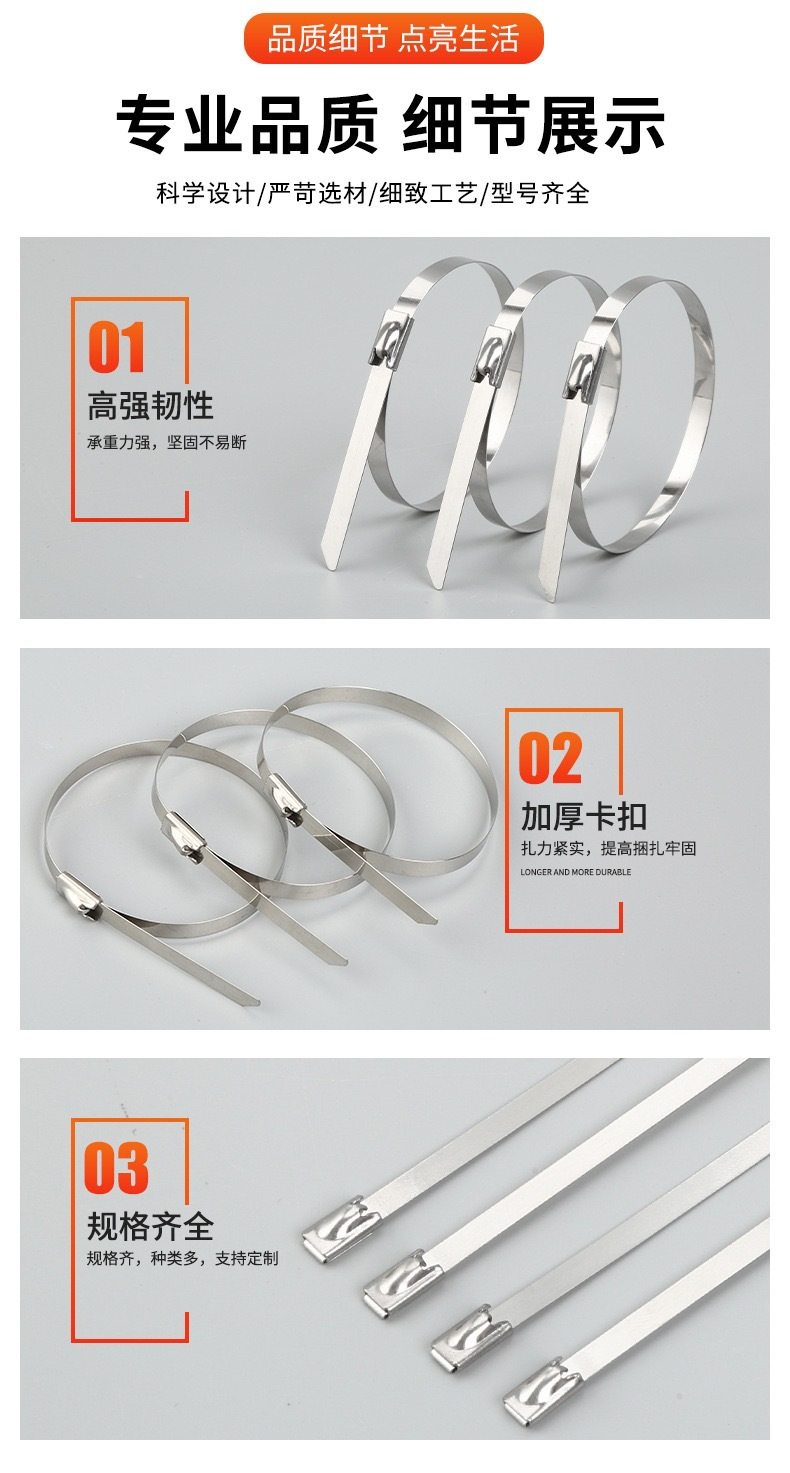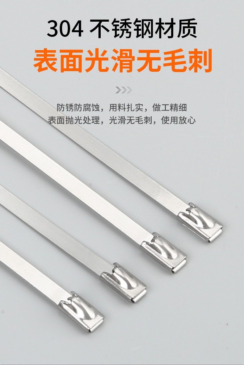 304 Ball-Lock Stainless Steel Metal Cable Ties Anti-Corrosion Packaging Binding Straps 4.6*300mm Tightening