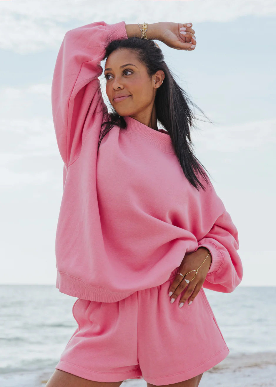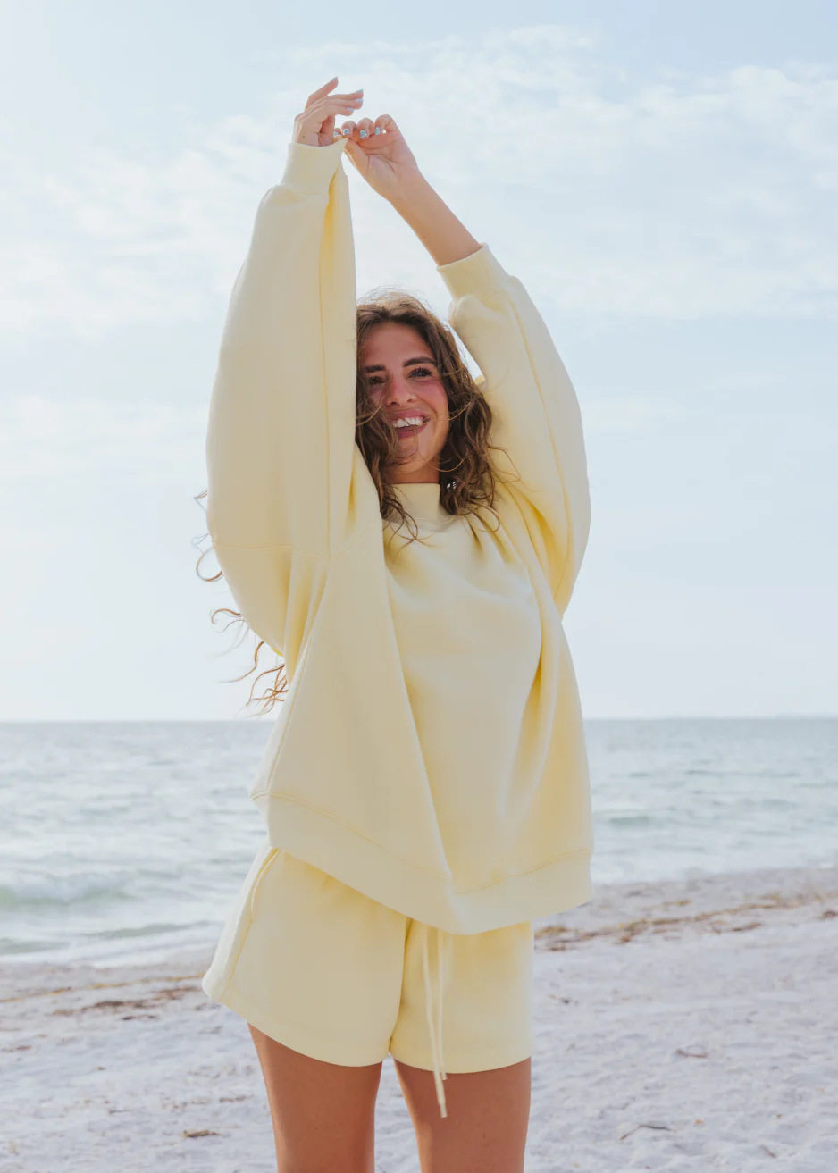 Amazon's New Round Neck Sweatshirt Long-Sleeved Casual Shorts Suit Solid Color Velvet Pullover Top Loose Women's Clothing