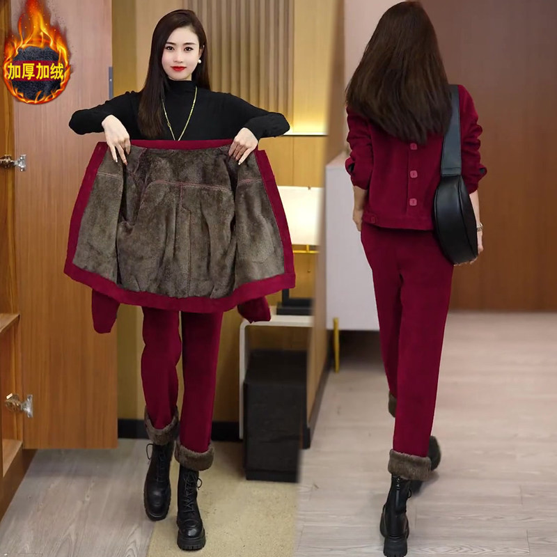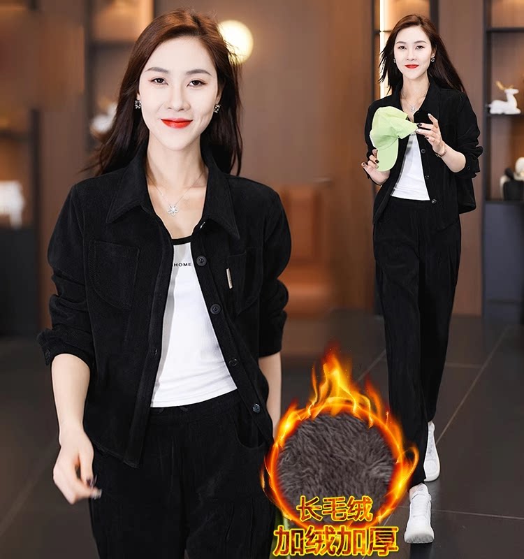 Winter Fleece-Lined Thickened Women's Suit 5 New Fashion Stylish Loose Slimming Petite Casual Two-Piece Set