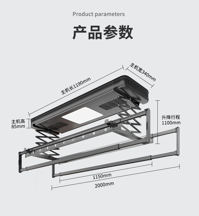 Intelligent Electric Clothes Drying Rack Remote Control Lifting Clothes Rack Telescopic Clothes Rod Indoor Balcony Drying Machine E18