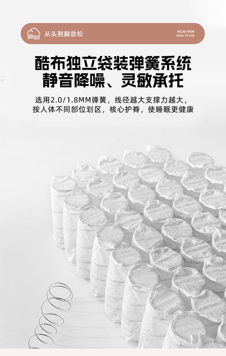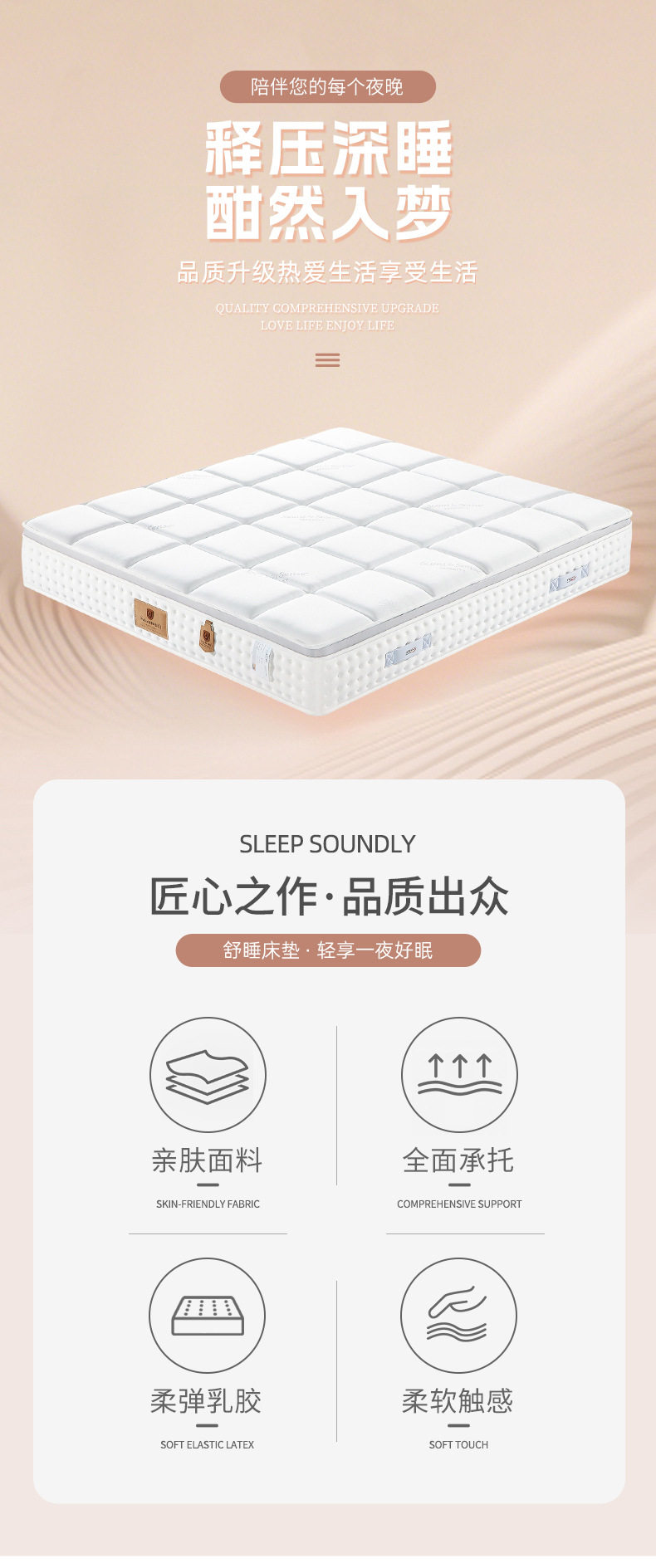 Zero-Pressure Memory Foam Five-Star Hotel Mattress, Dual-Use Soft and Firm Natural Latex, Individually Pocketed Spring Mattress for Guesthouses