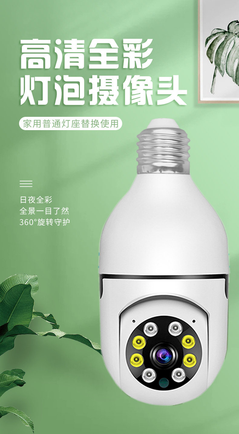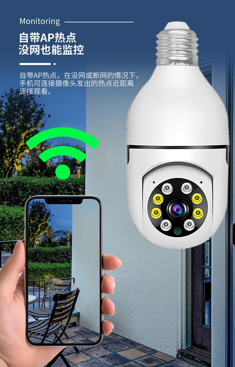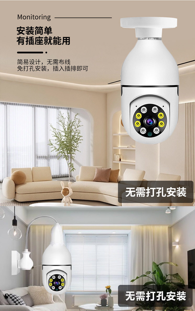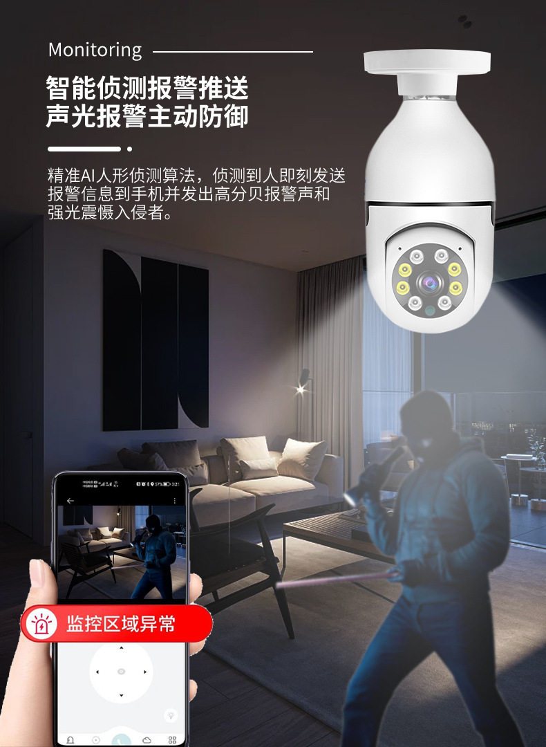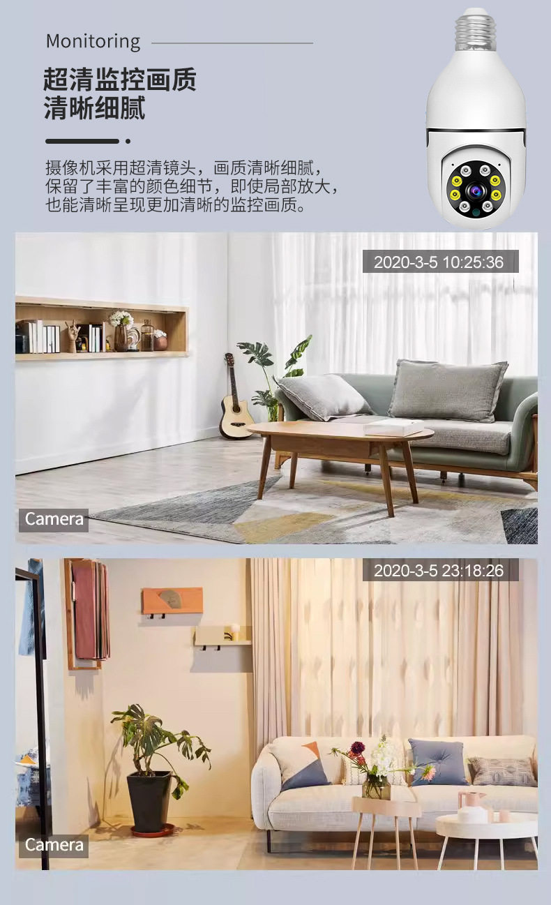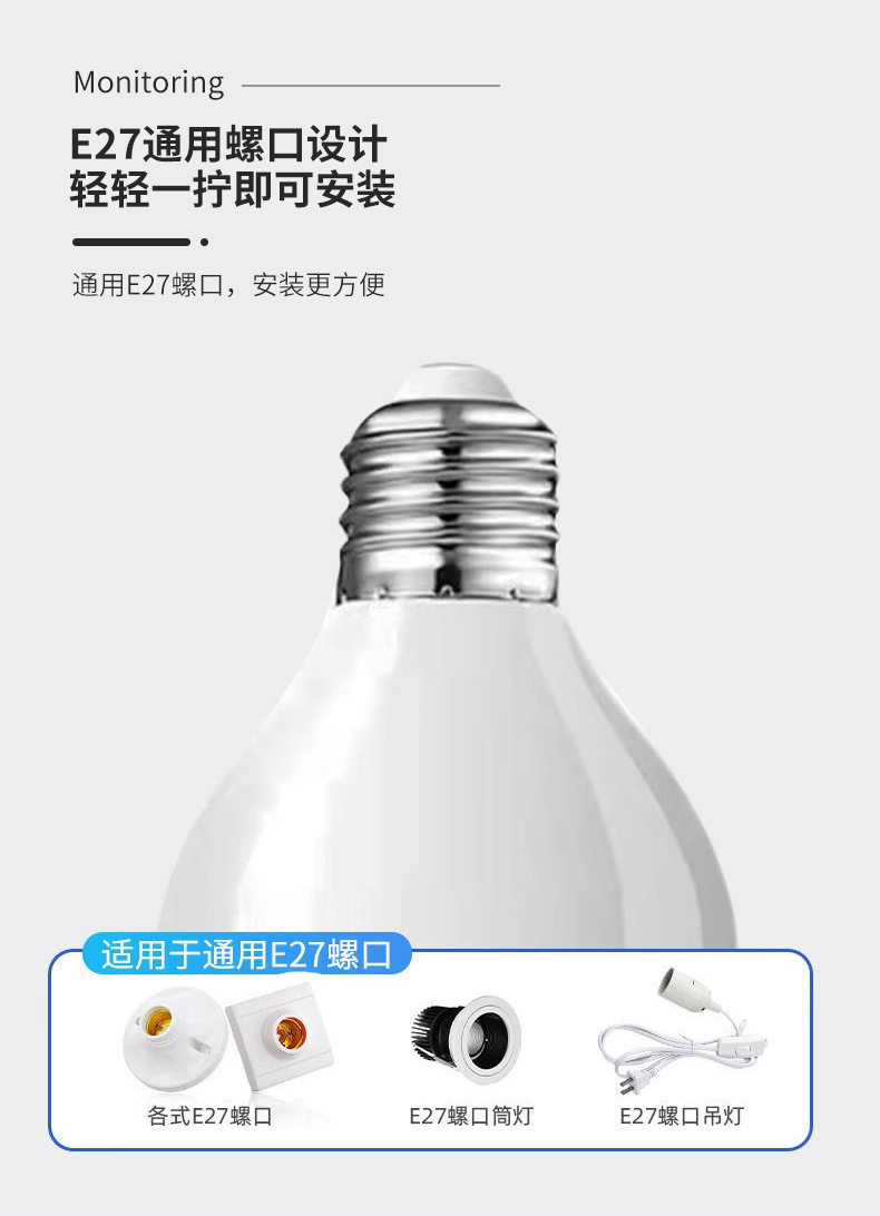 Bulb Camera Lamp Holder Camera E27 Monitoring Indoor Wifi Night Vision Hd 360 Foreign Trade Cross-Border Hot Model