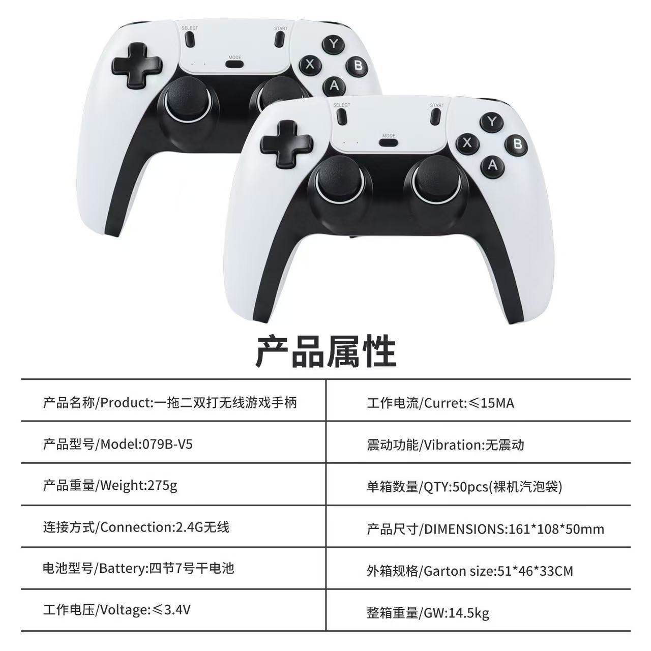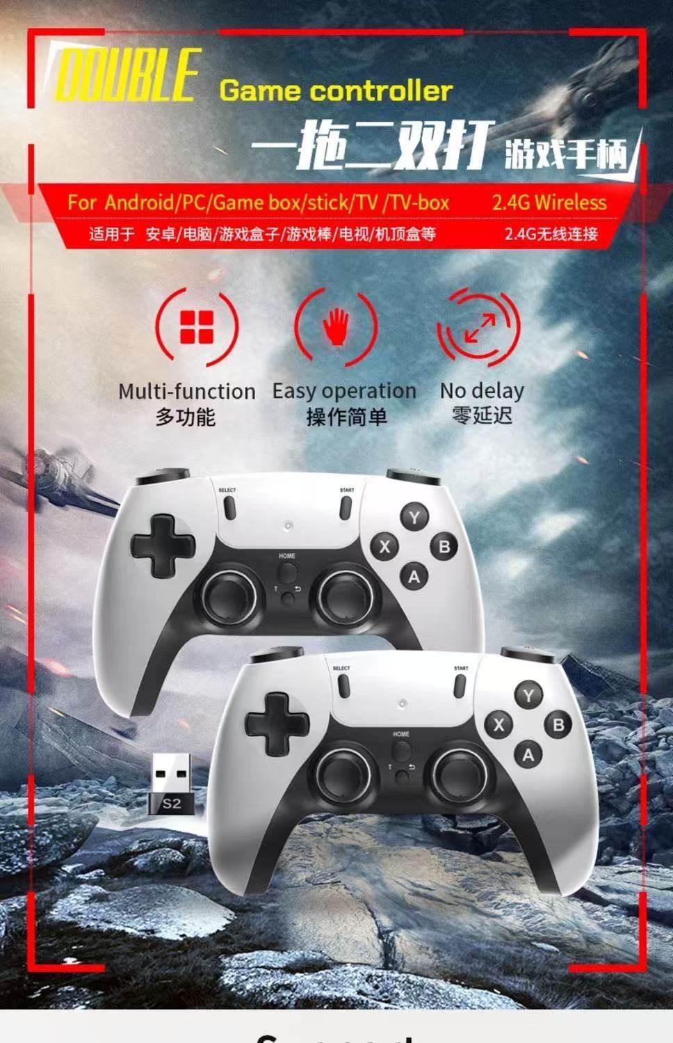 Ps2 Dual Wireless Game Controller for Two Players, Tv 2.4g Wireless Connection, One-To-Two Ps