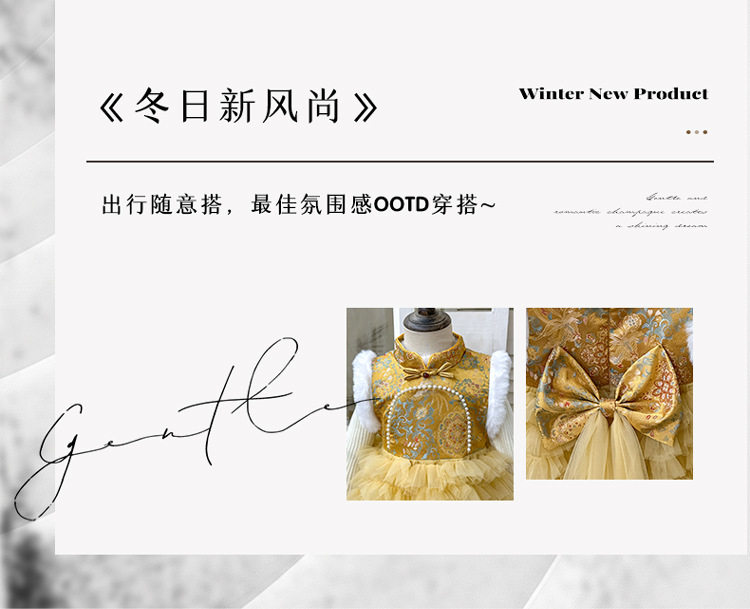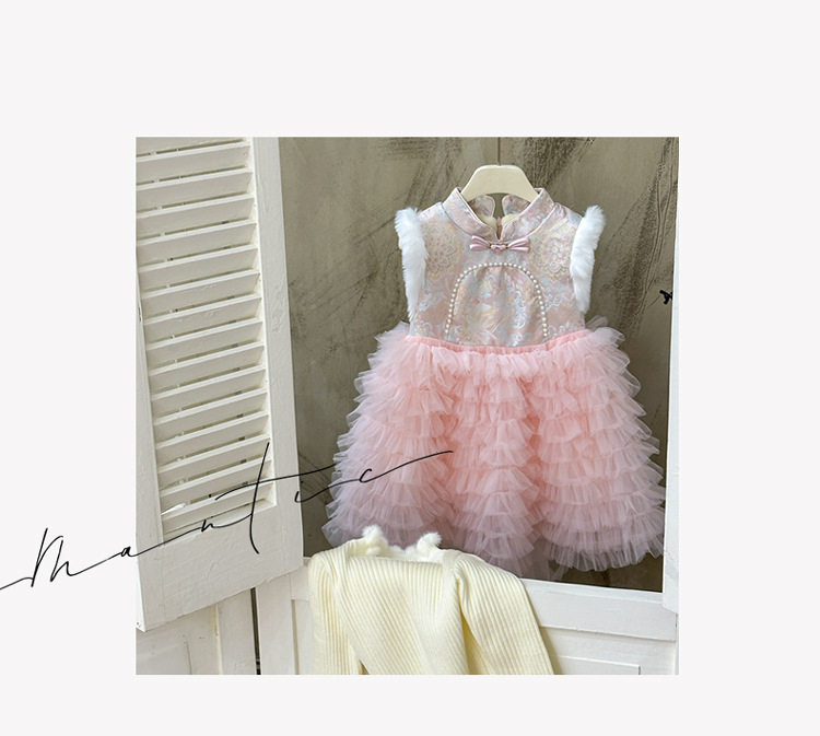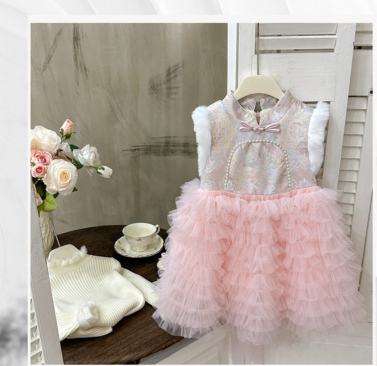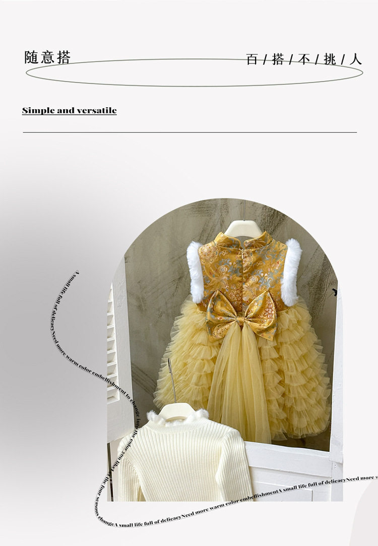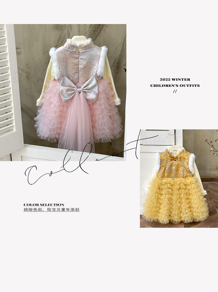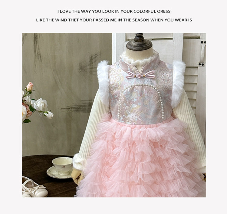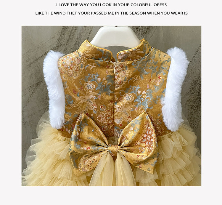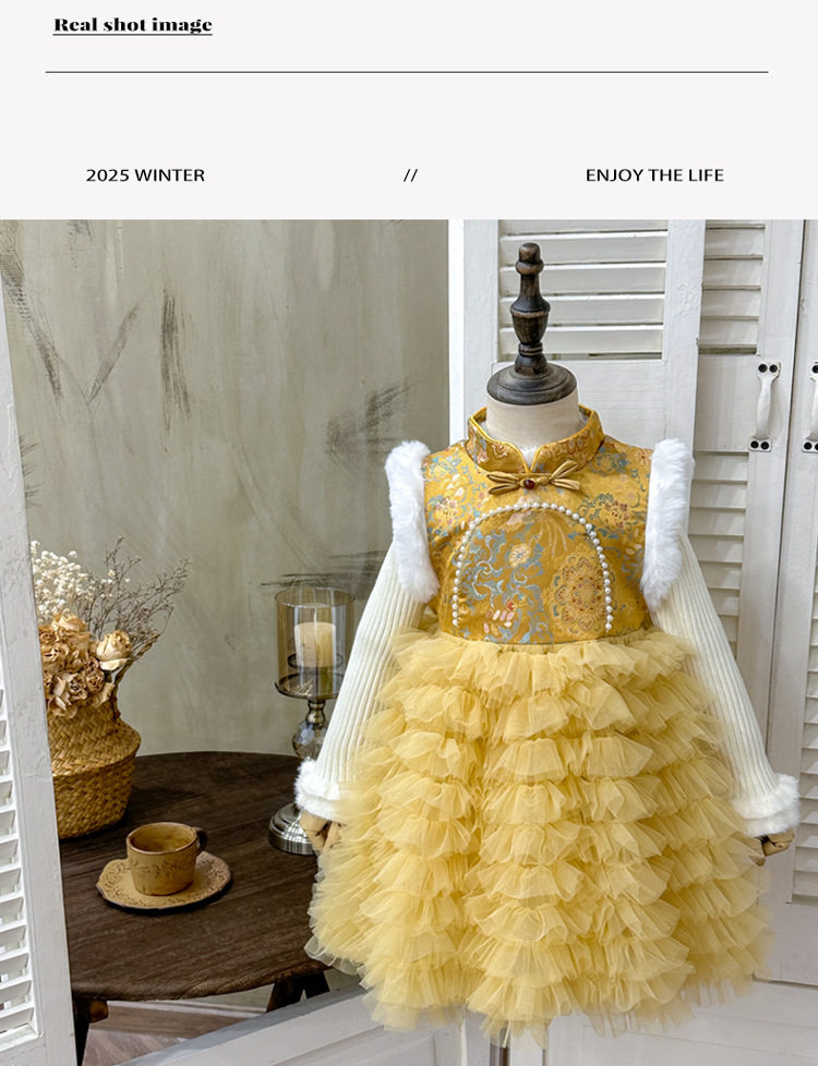 [in Stock] Girls' Chinese Style New Year Dress Winter Tang Suit Birthday Dress with Fleece Lining Puffy Skirt Princess Dress
