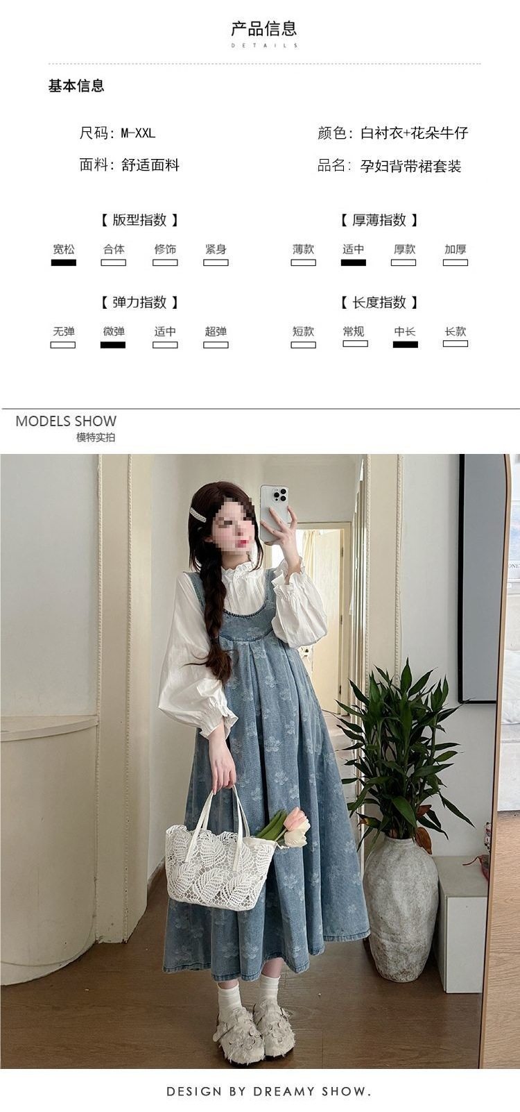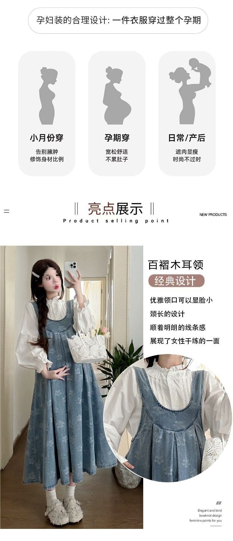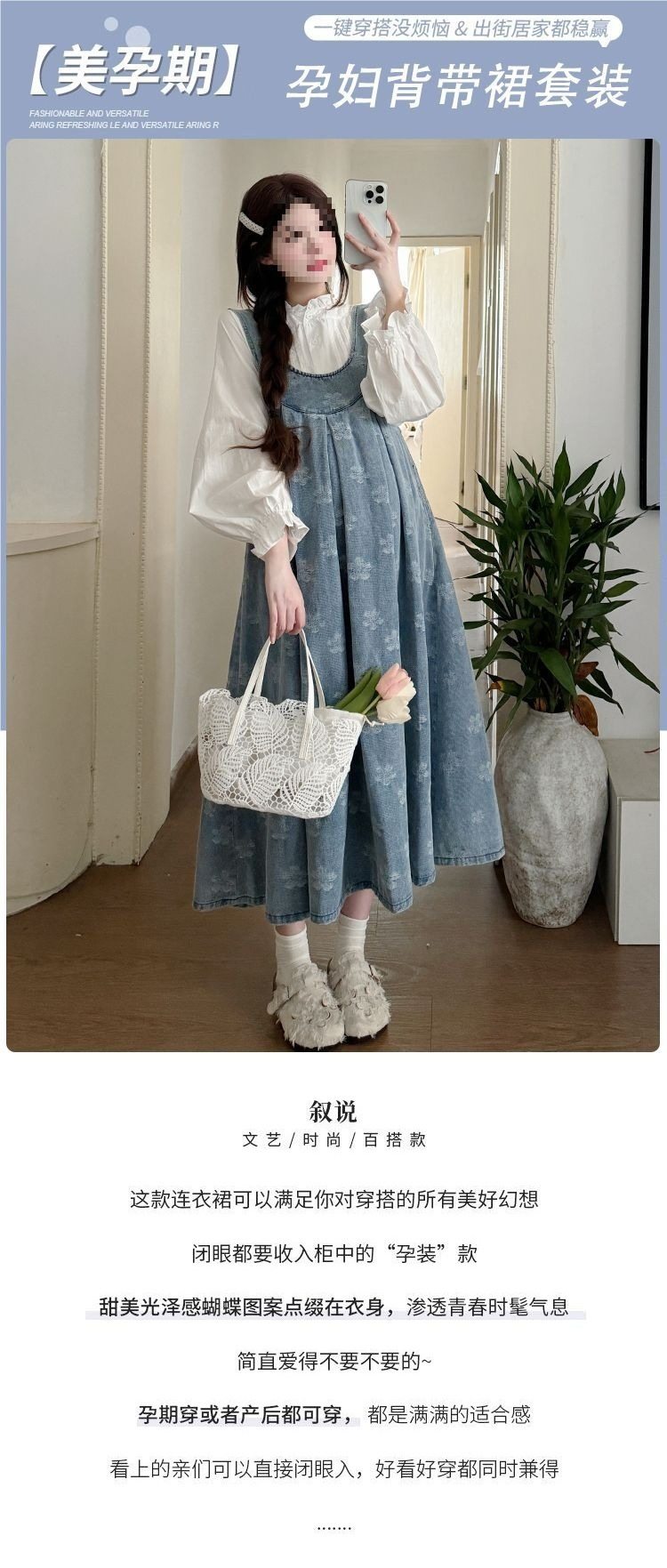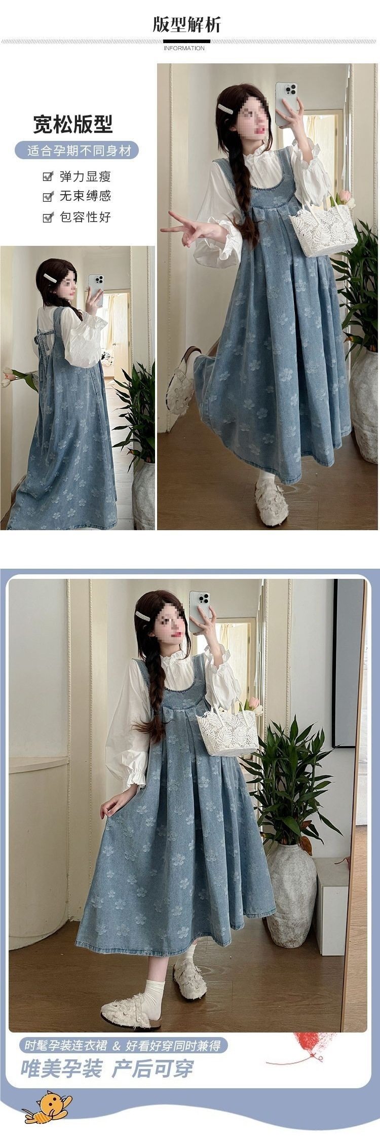 Maternity Suit, Autum Fashion Suit, Loose Mid-Length Trendy Mom Denim Maternity Suspender Skirt Outer Shirt Suit