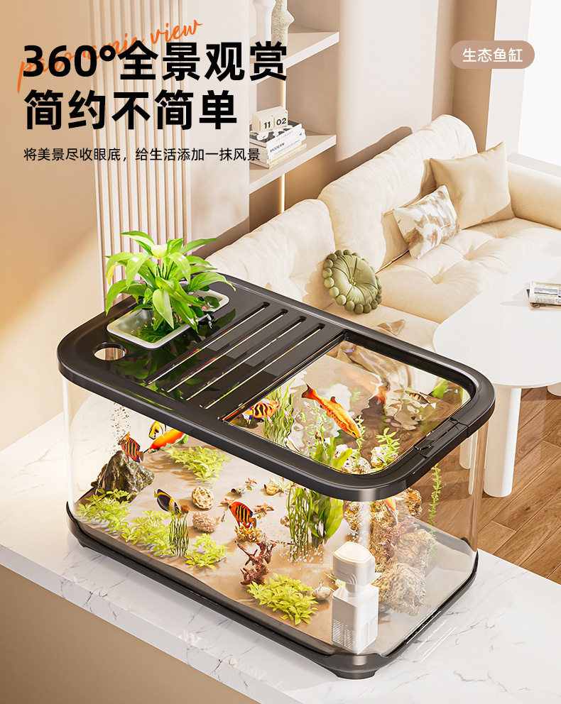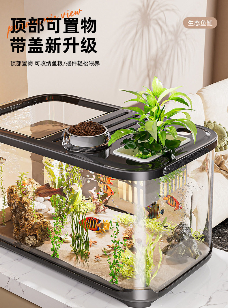 Household Fish Tank Turtle Tank Ornamental Ornaments High-Definition Aquarium Transparent Goldfish Tank Living Room Balcony Small Ecological Tank