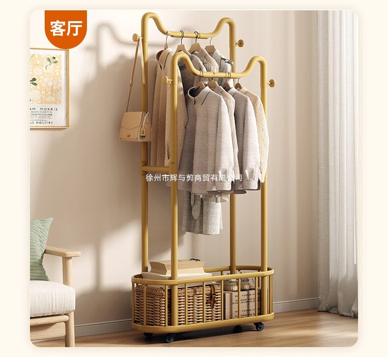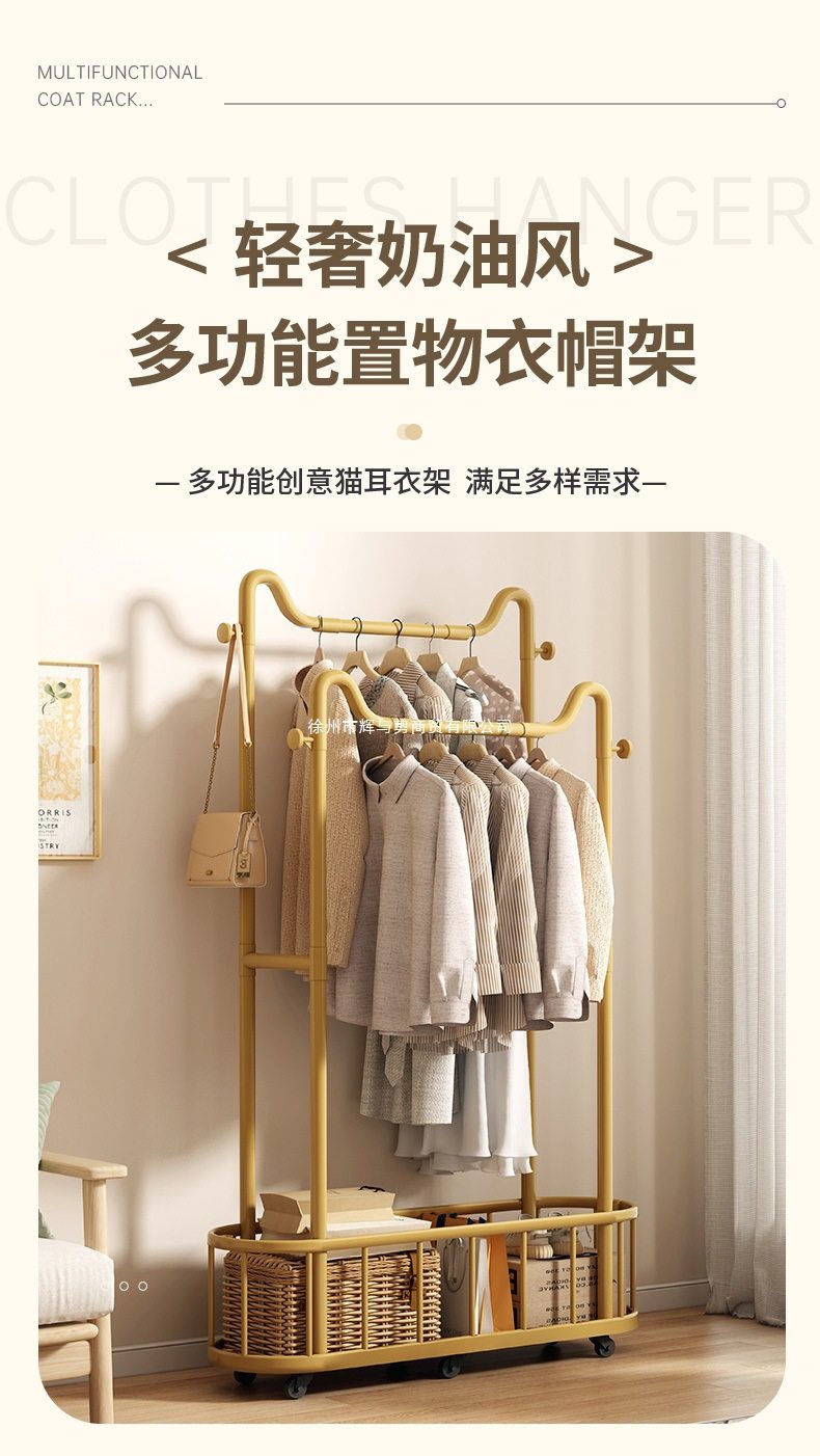 Clothes Rack Floor-Standing Vertical Clothes Rack Floor-Standing Mobile Wheeled Rental Dormitory Clothes Drying Rack Bathroom Cat Ear Coat Rack