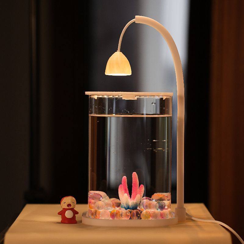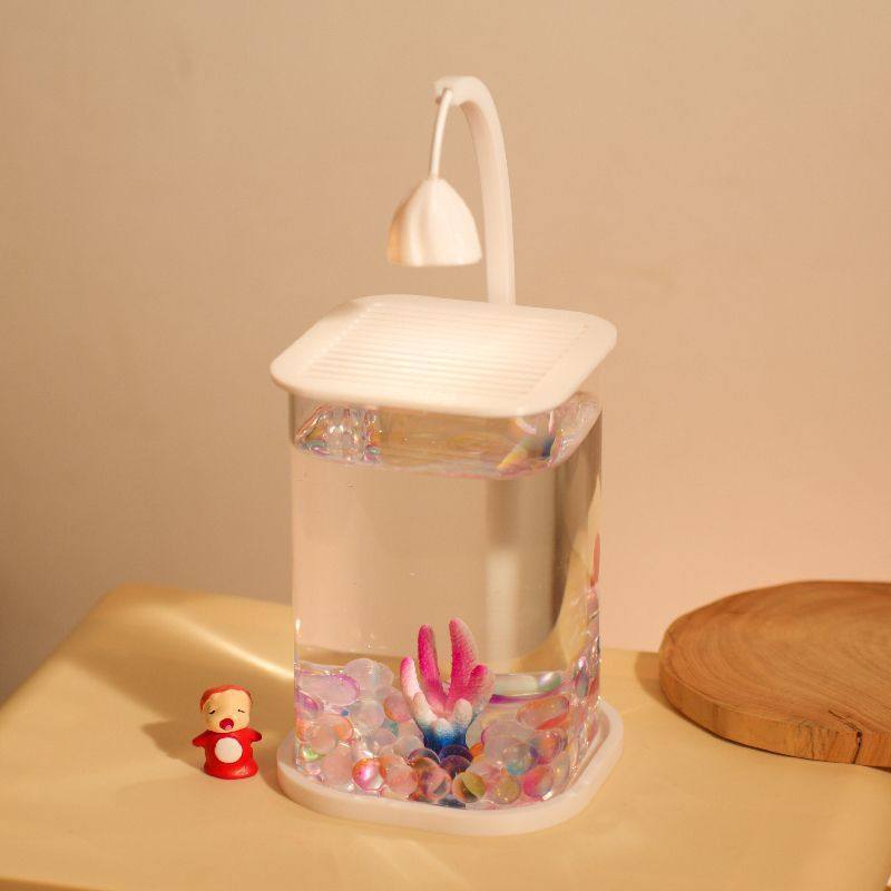 Fish Tank for Popular Bettas, Ultra-Clear Small Glass Tank, Creative Desktop Ornament for Living Room, High-End Ecological Decoration