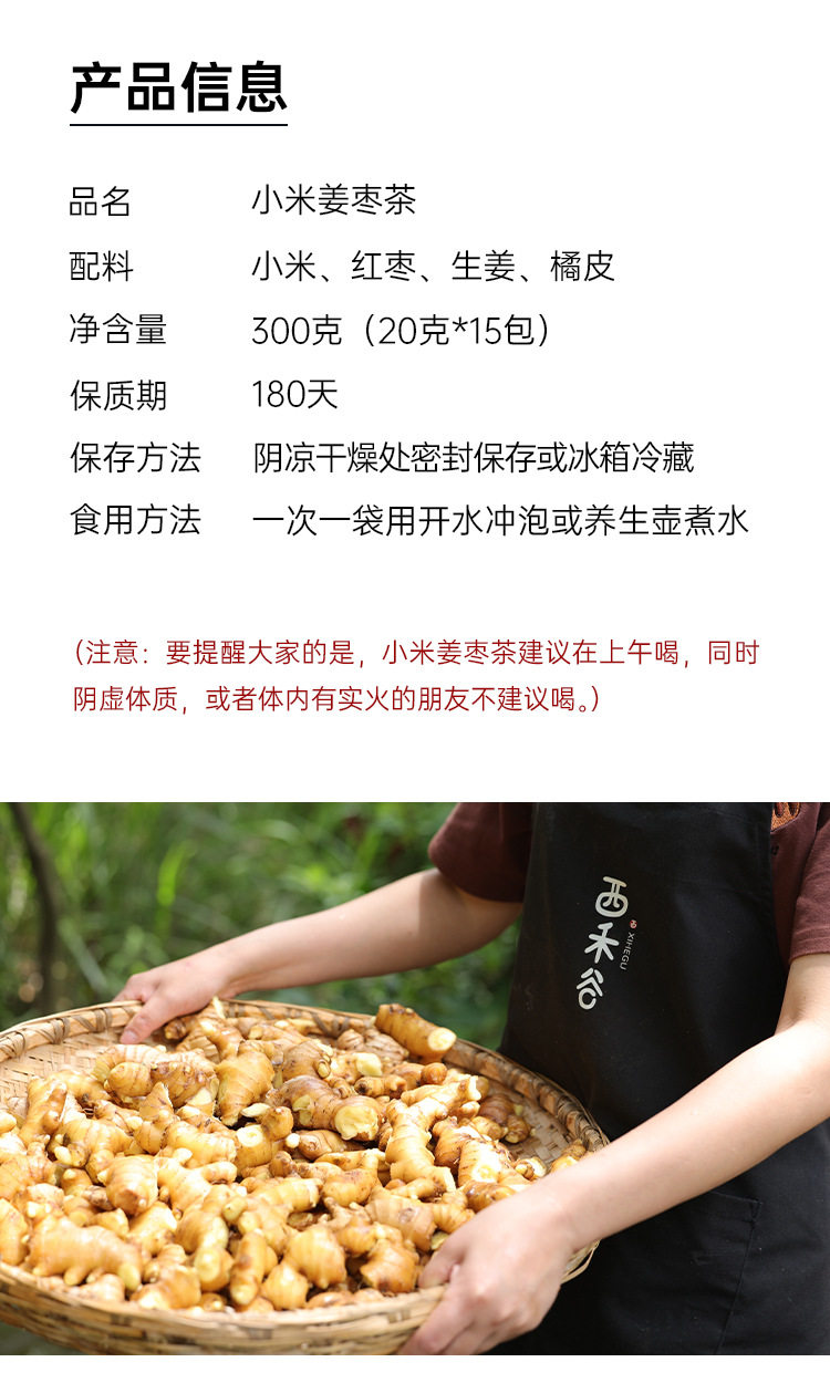 | Packaging specifications | Xiaomi ginger date tea 300g/bag,Xiaomi ginger jujube tea 3 bags |