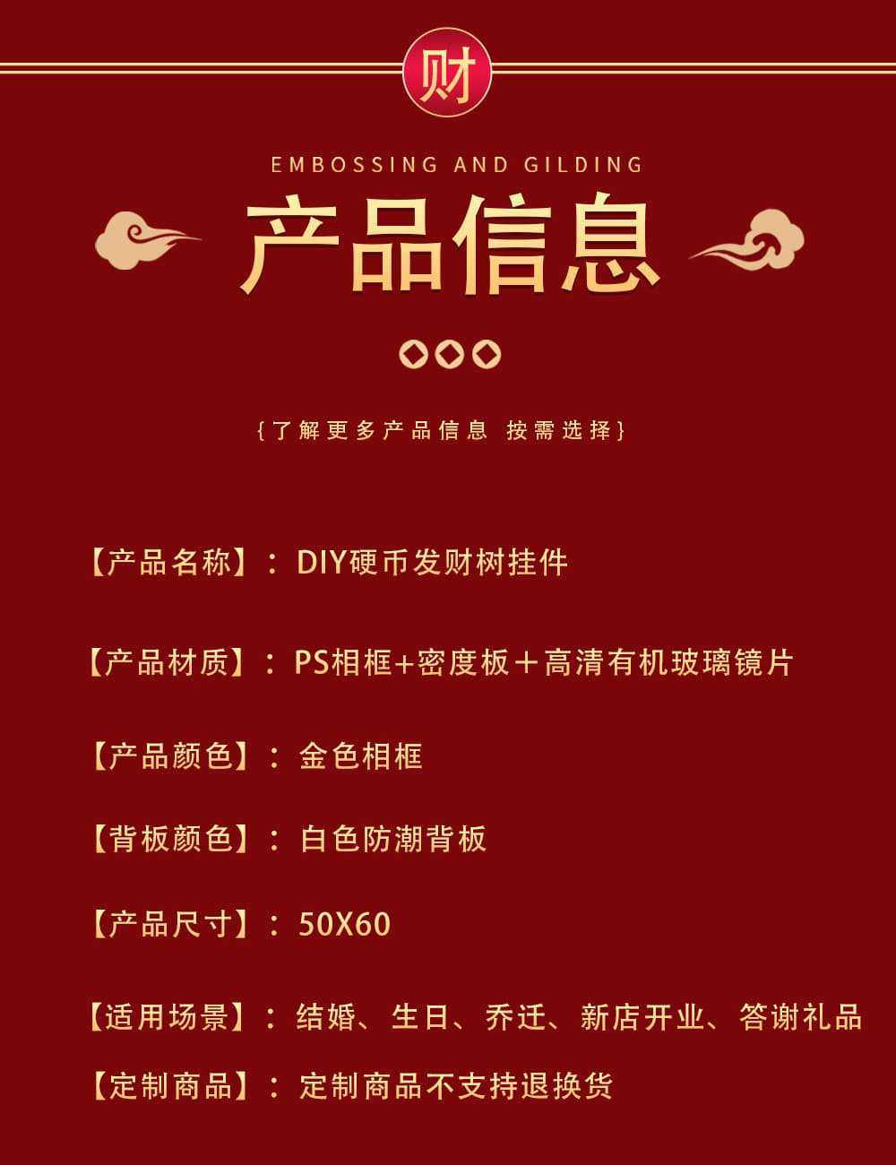 | Inner frame size | 50x60cm persimmon ruyi gold frame |