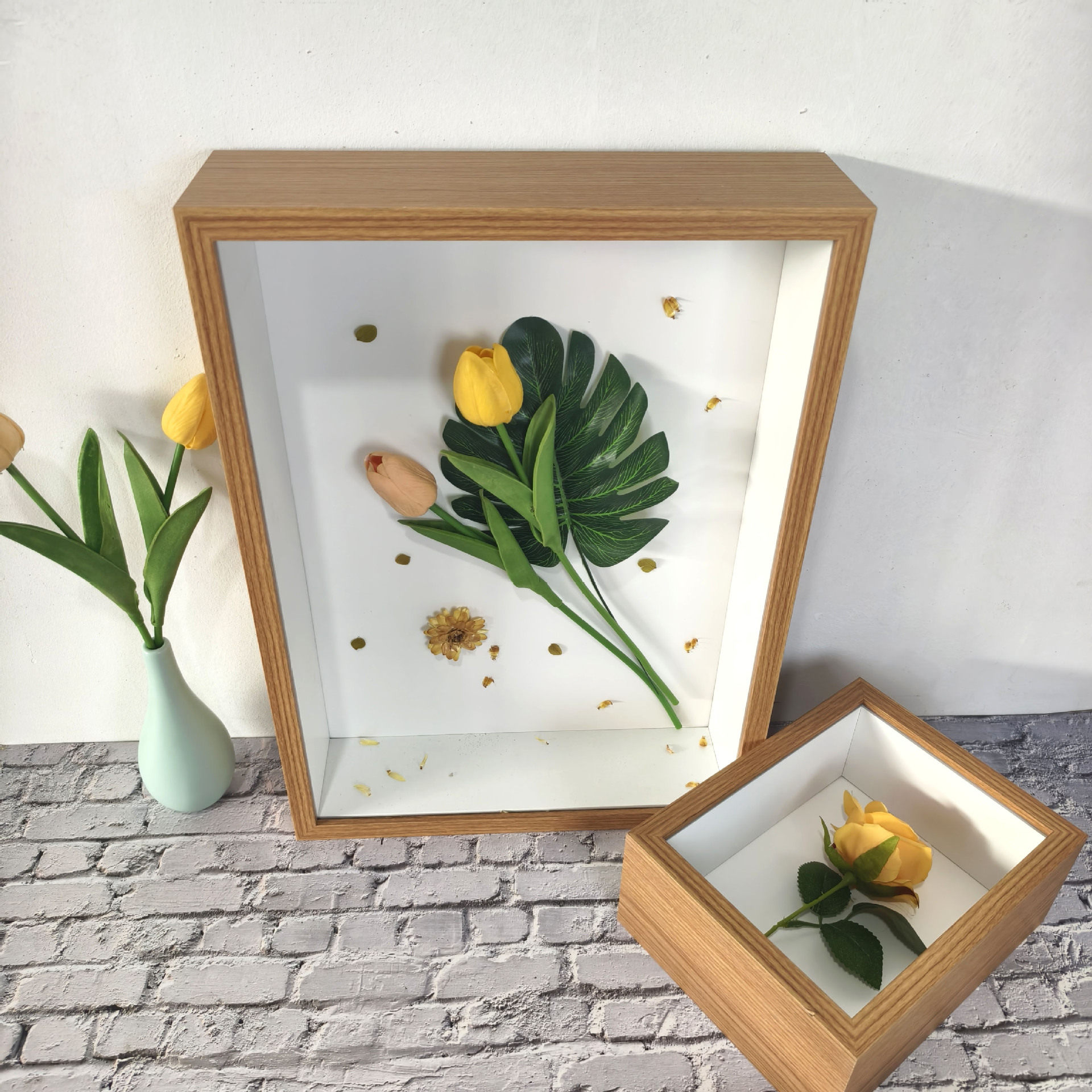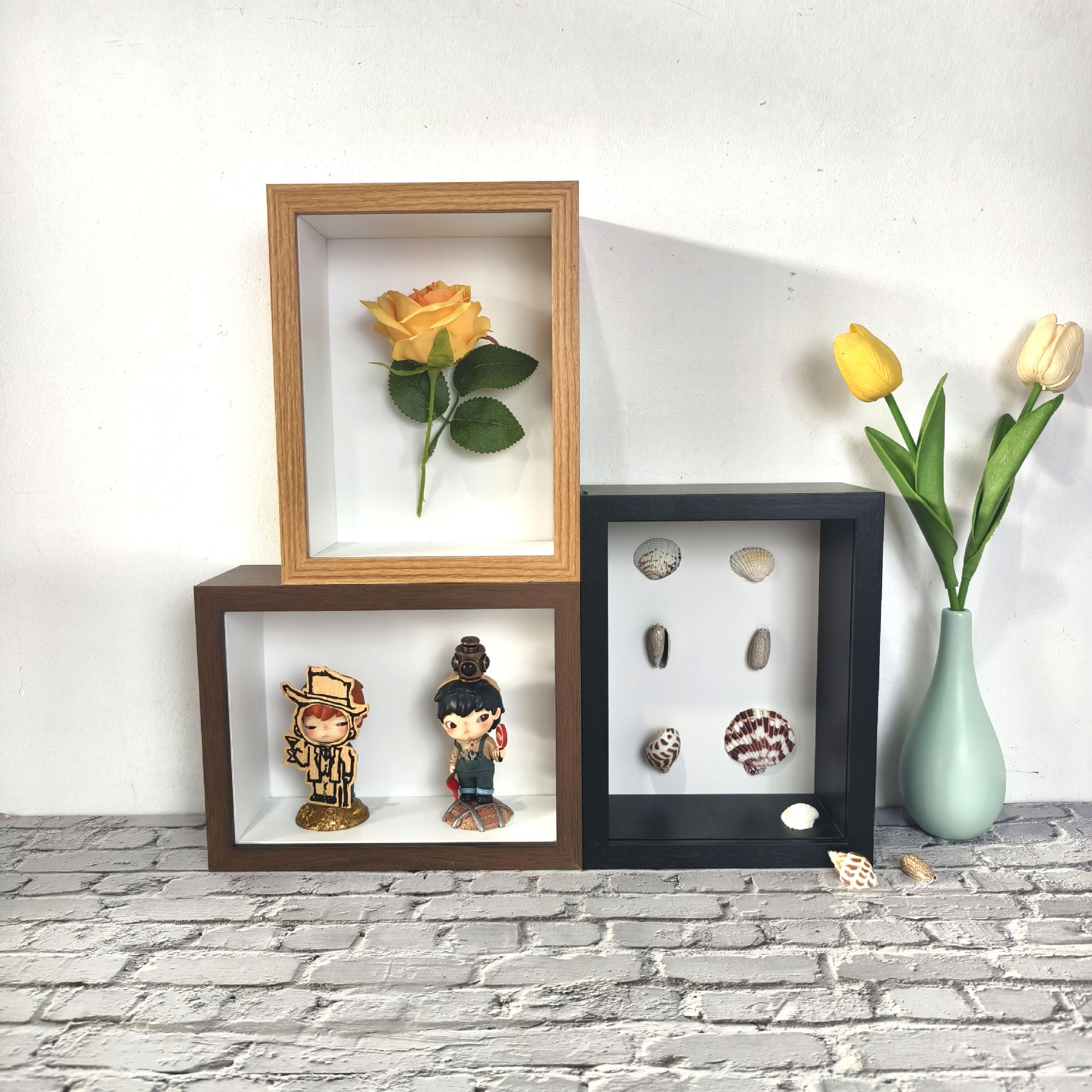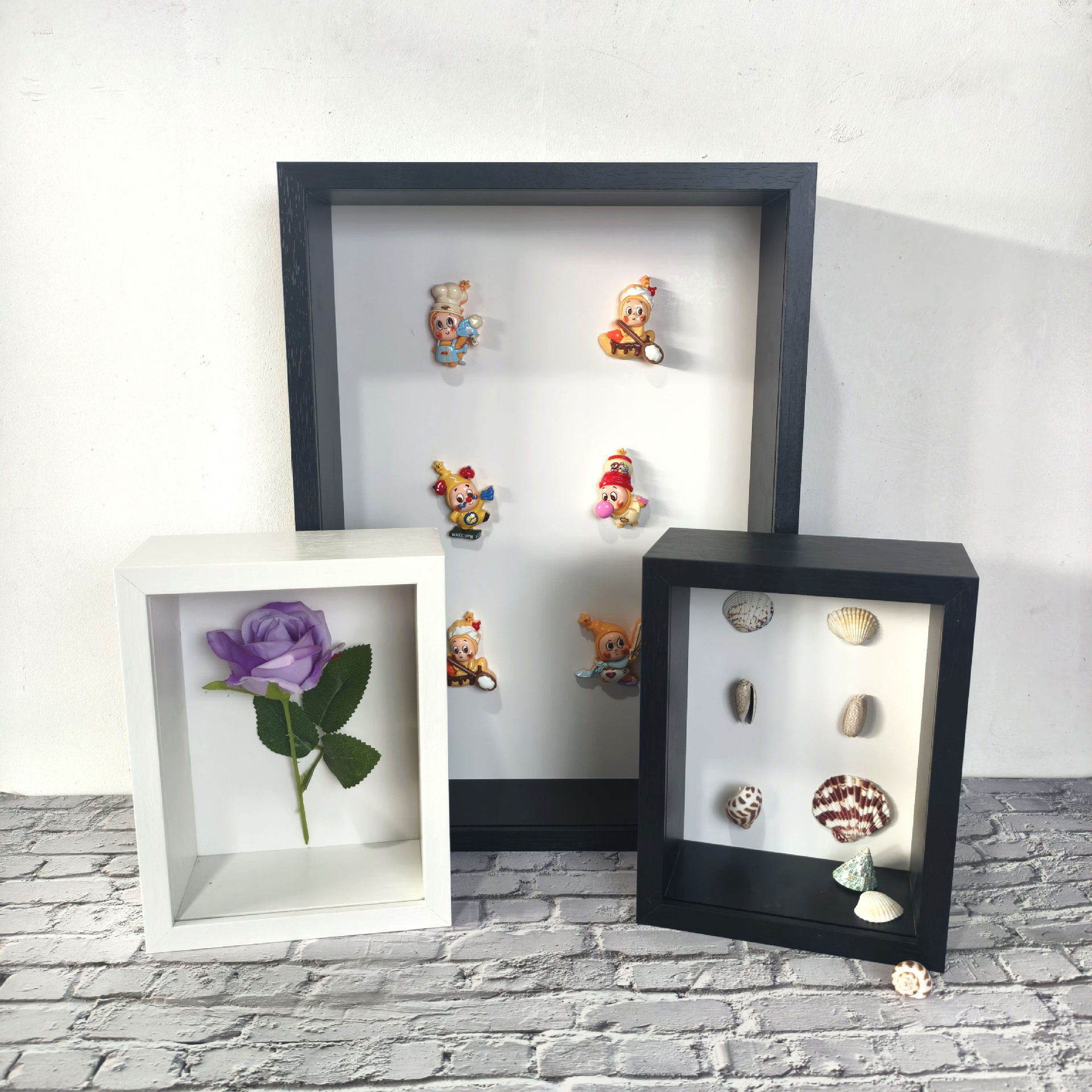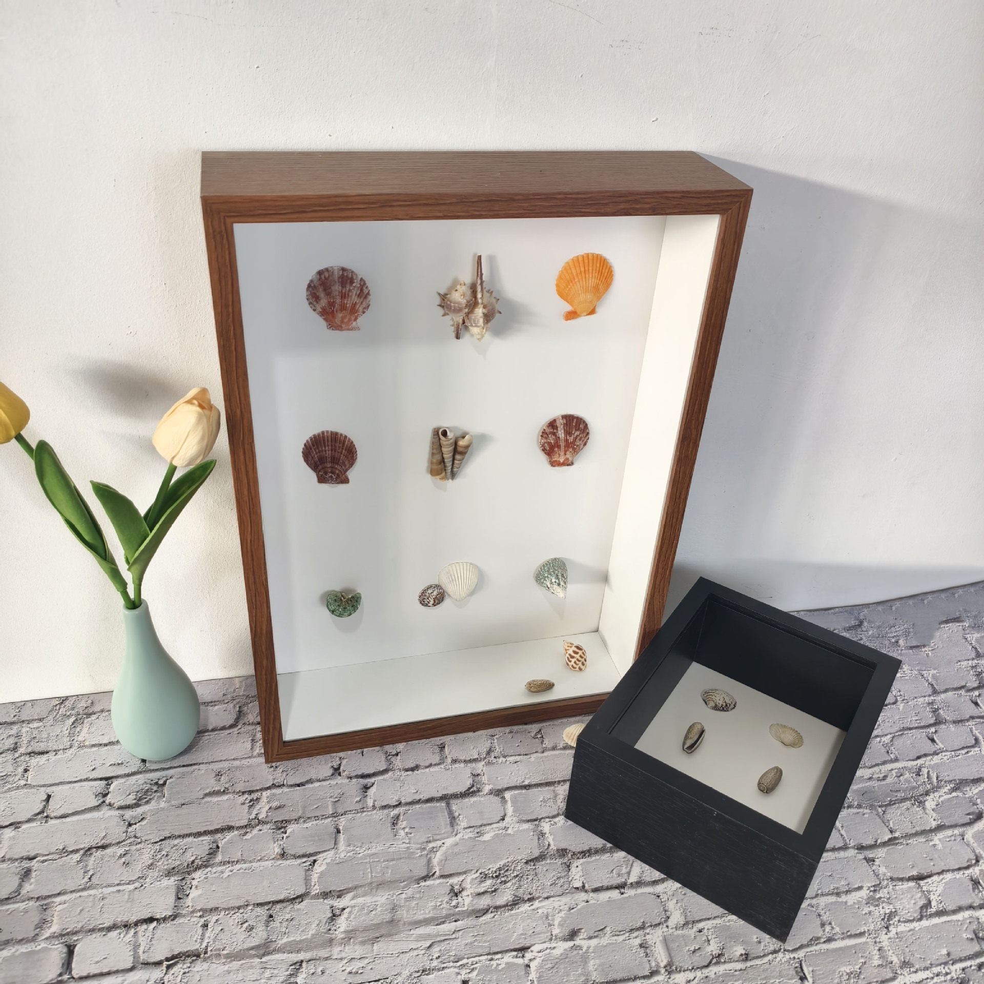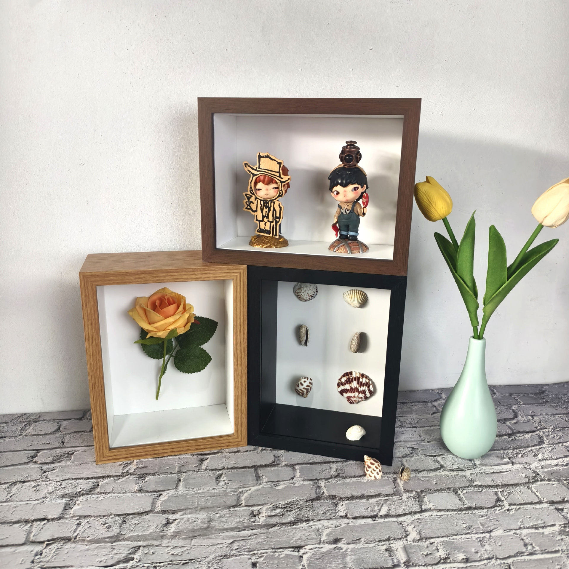 Three-Dimensional Hollow 7cm Storage Specimen Butterfly Insect Shell Handmade DIY Dried Flower Wooden Photo Frame Table Can Be Hung on the Wall