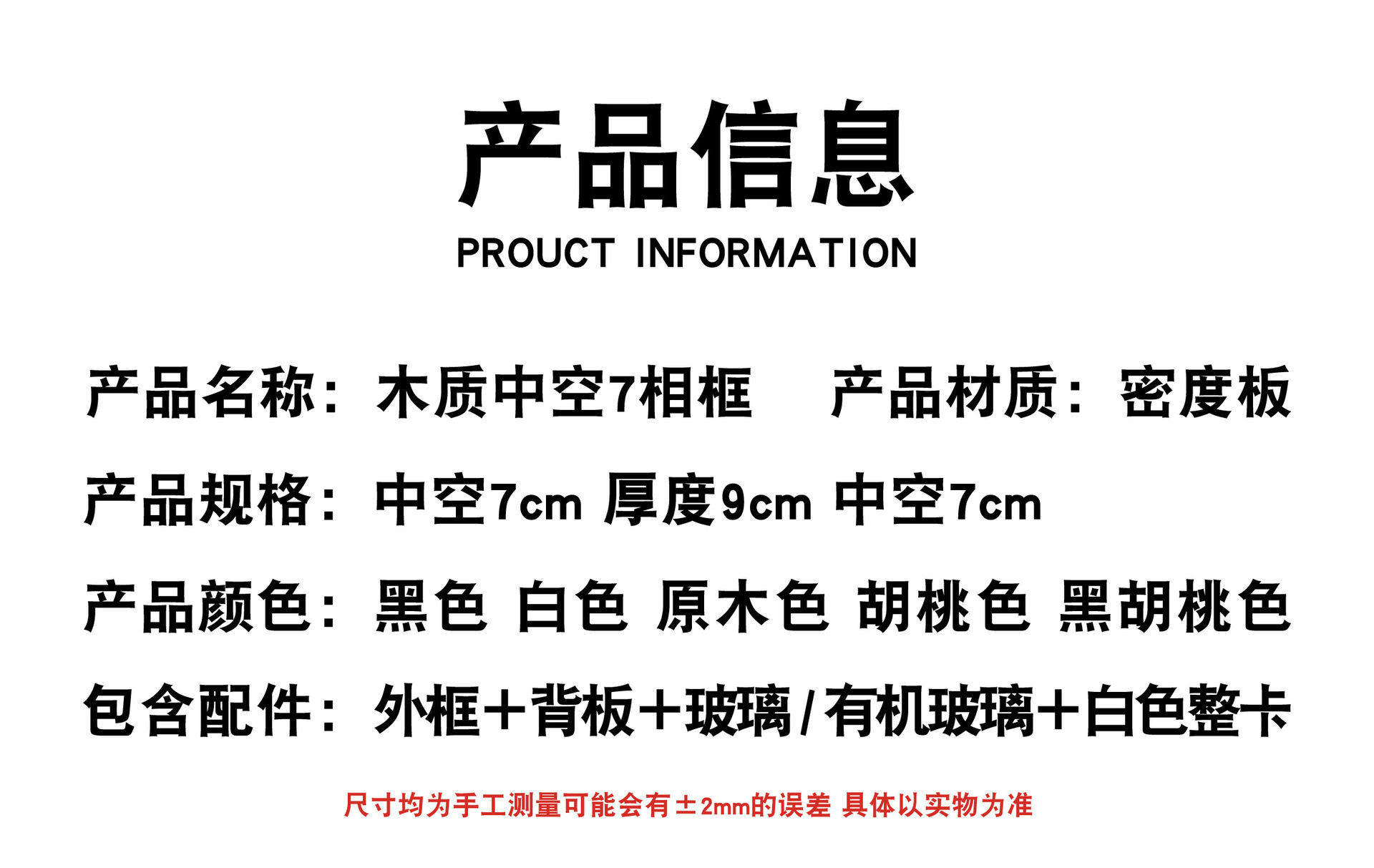 | Inner frame size | White (7cm hollow),Black (hollow 7cm),Log color (7cm hollow),Walnut color (7cm hollow),Black walnut color (7cm hollow),White (hollow 7cm with light),Black (hollow 7cm with light),Log color (hollow 7cm with light),Walnut color (hollow 7cm with light),Black walnut color (hollow 7cm with light) |