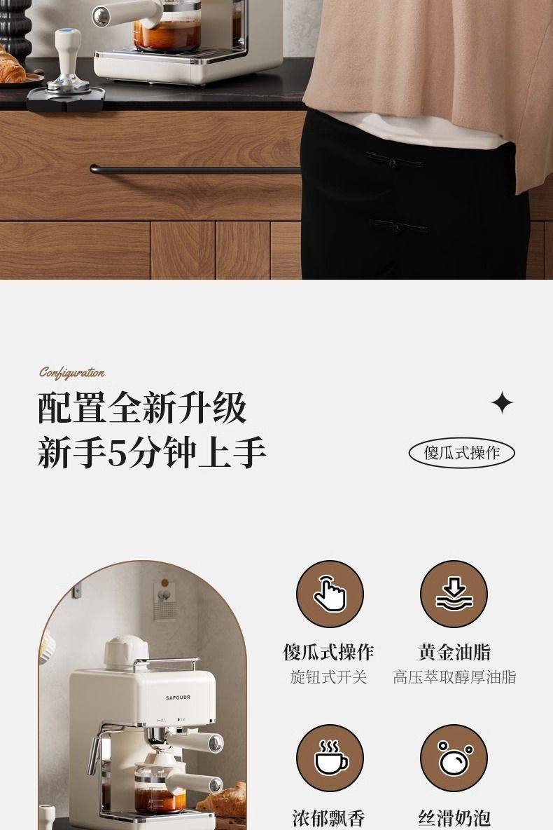 Ea39 Coffee Machine Small Household Italian Latte Art Milk Foam Semi-Automatic Electric Bean Grinder Office Dormitory