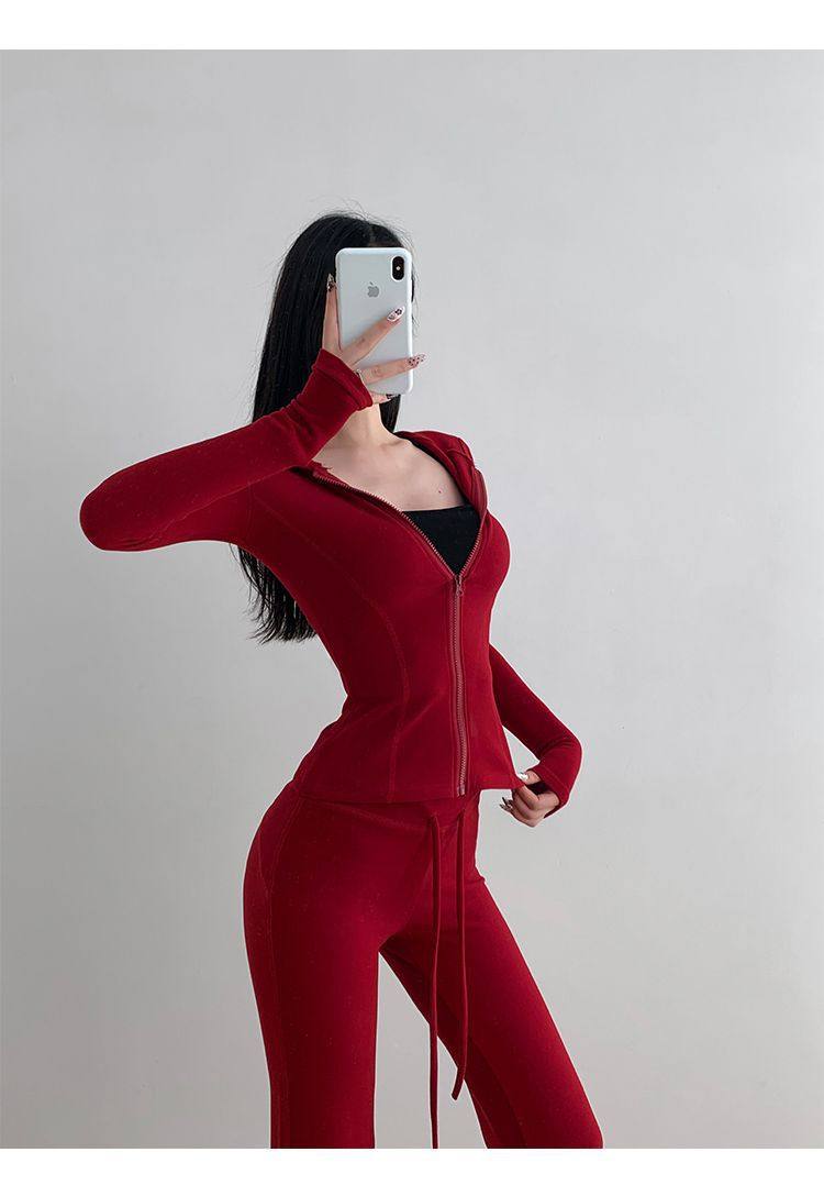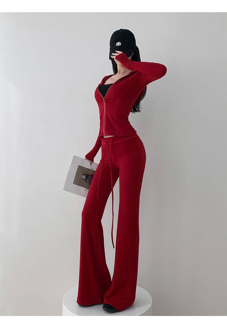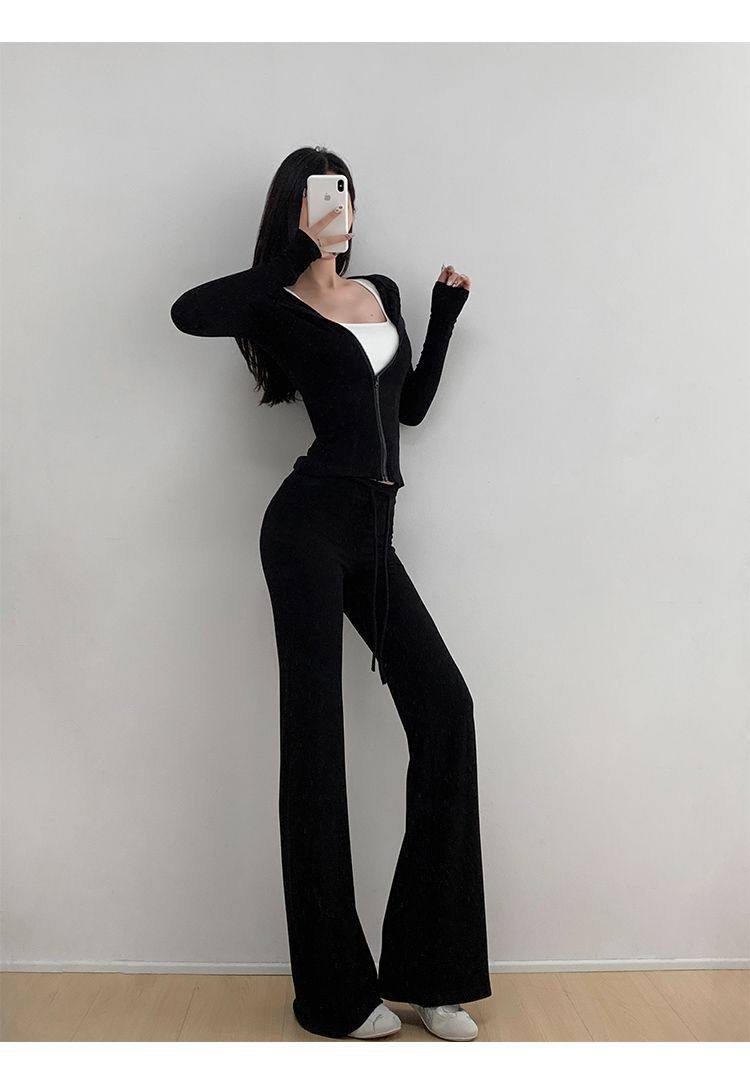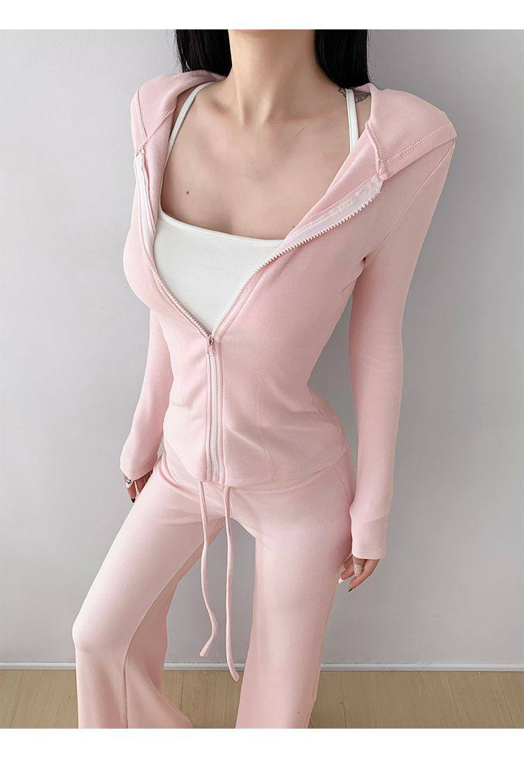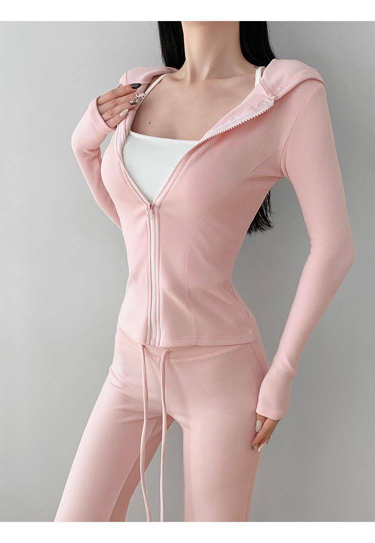 Casual and Comfortable White Women's Suit, Slimming Waist, Long-Sleeved Hooded Sweatshirt, Slim Fit, Leg-Lengthening Trousers, Two-Piece Set