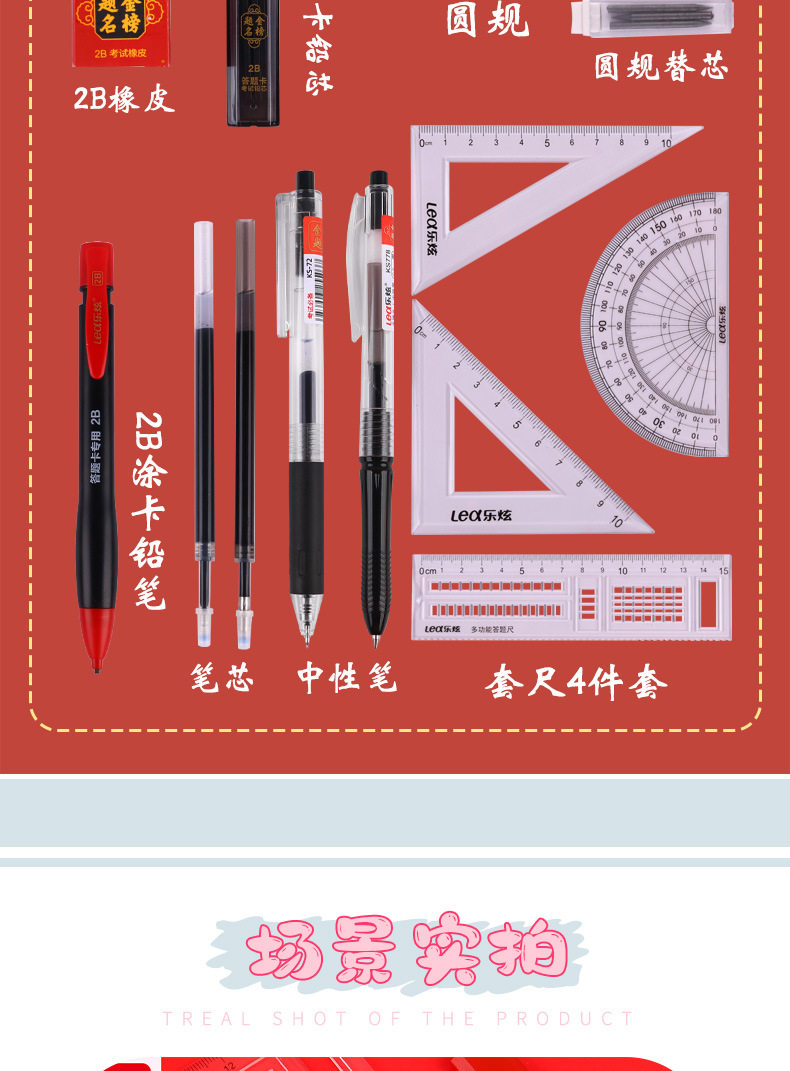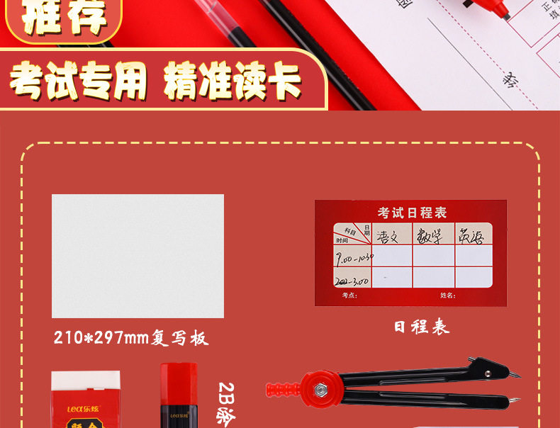 College Entrance Examination 15-Piece Set of Card-Painting Pens, Answer Sheets, Pad Sets, Rulers, Compasses, 2B Pencils, Gel Pens, Yiwu Stationery