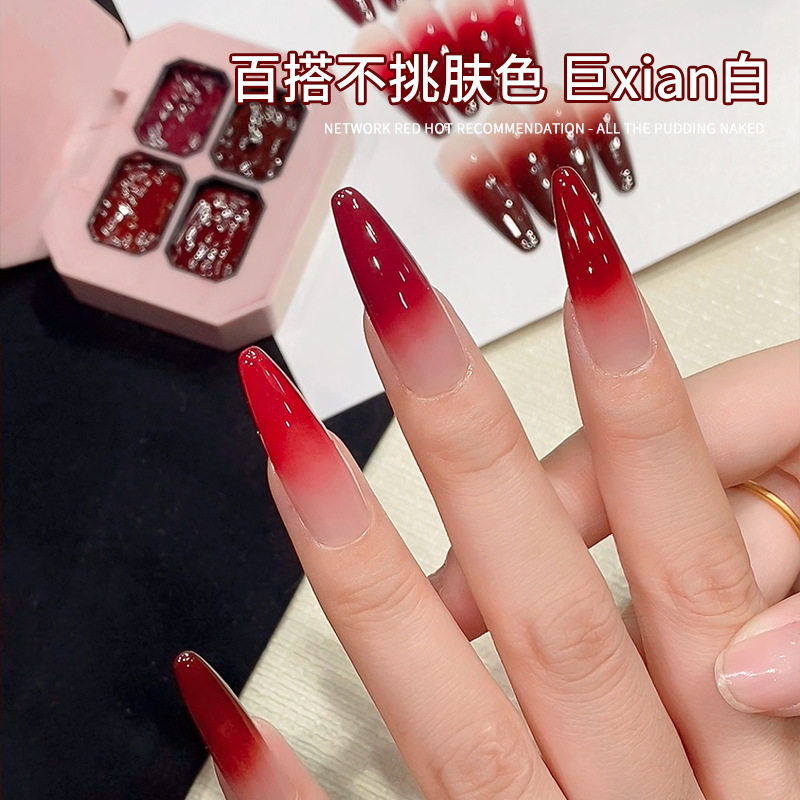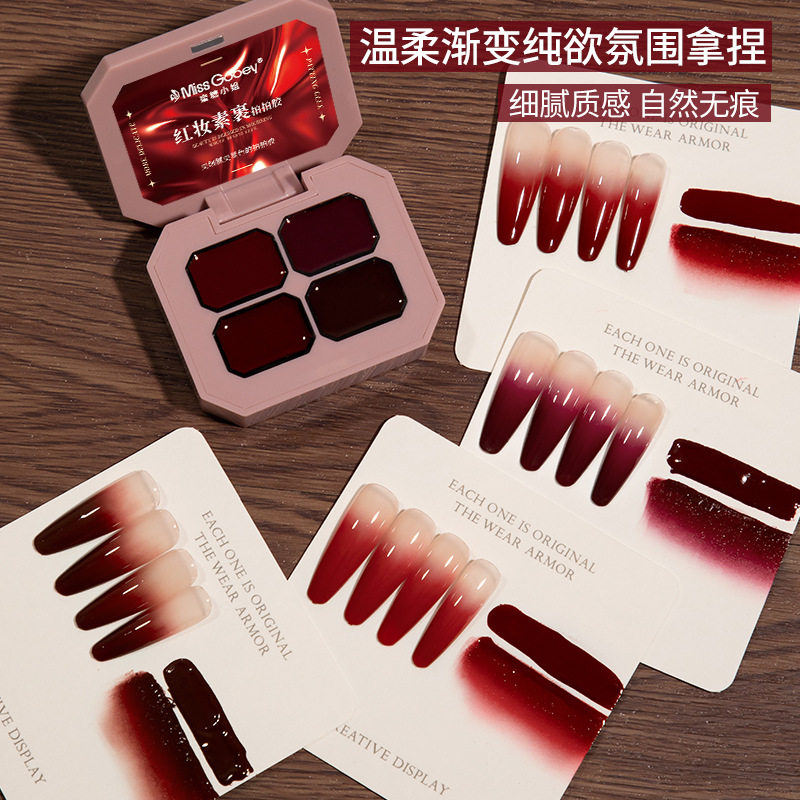 Four-Grid Red Makeup Base Coat Red Gel High Saturation Gradient Brightening Nail Salon Special Nail Polish Gel