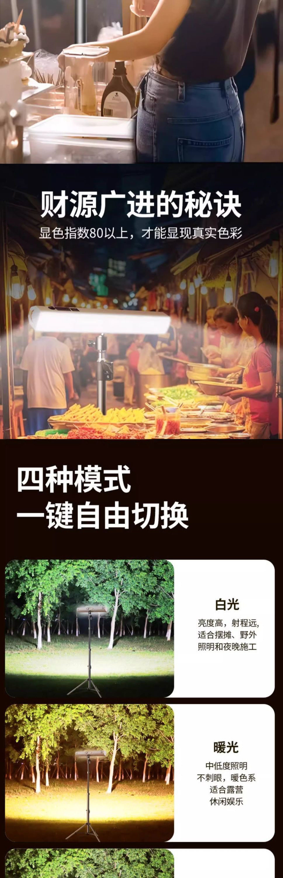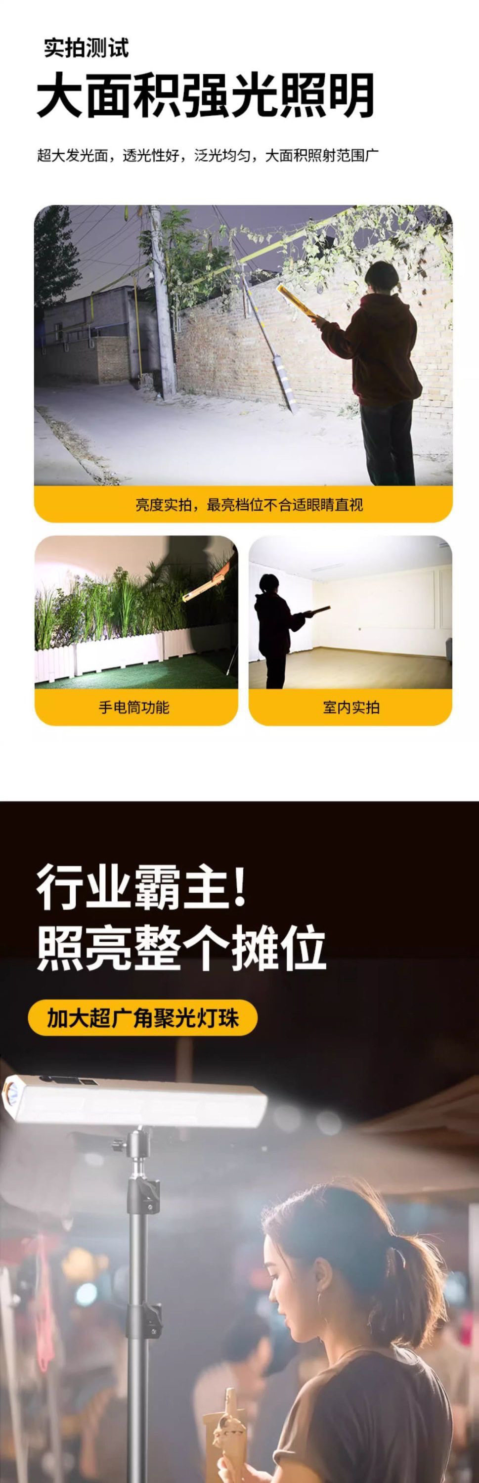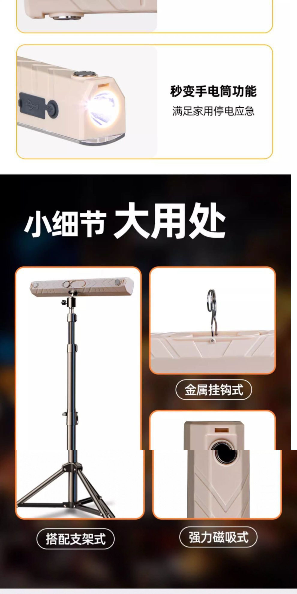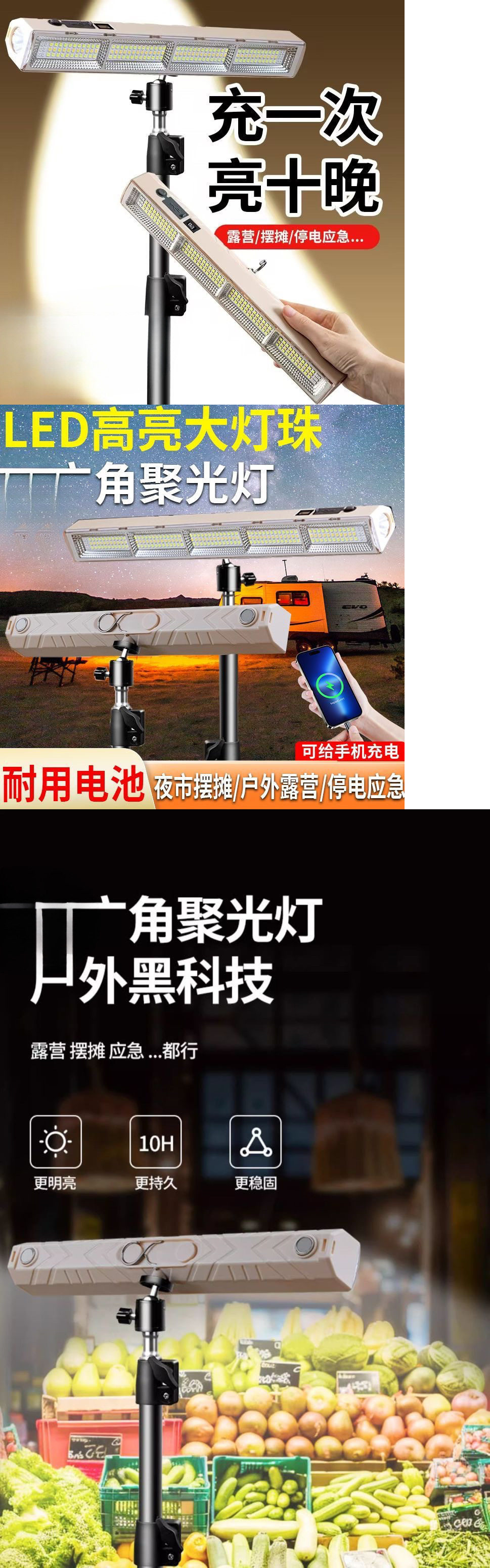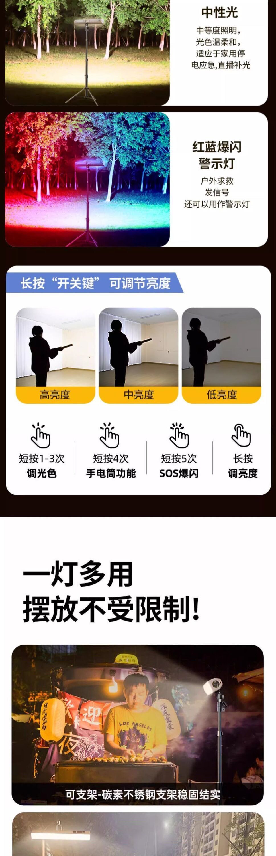 New Camping Style Light Power Outage Emergency Light Led Light Rechargeable Mobile Three-Tone Light Strong Light Bracket Night Market Stall