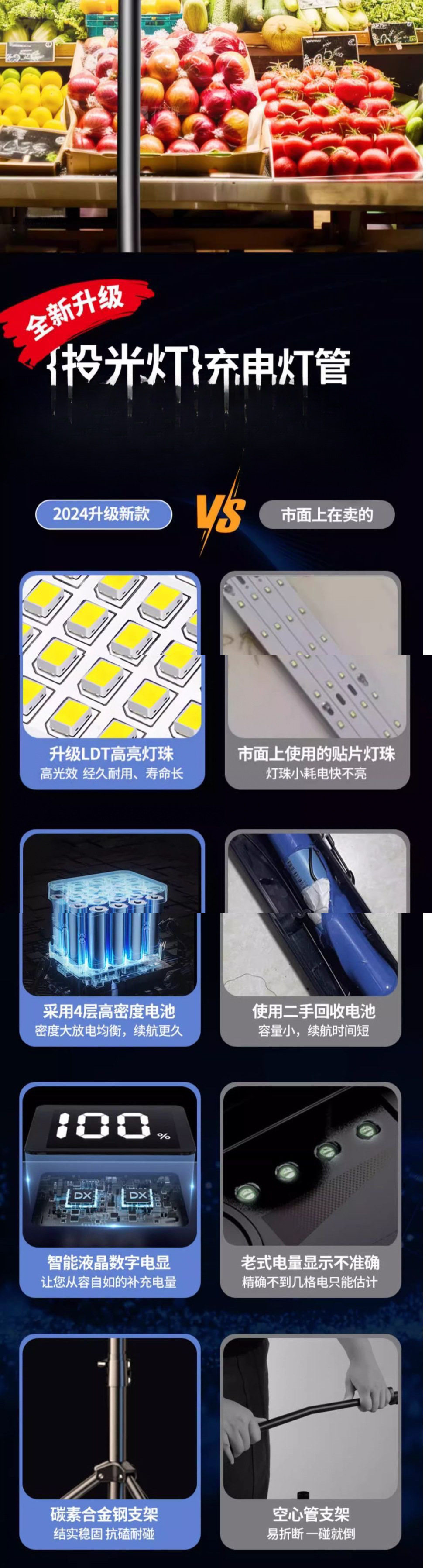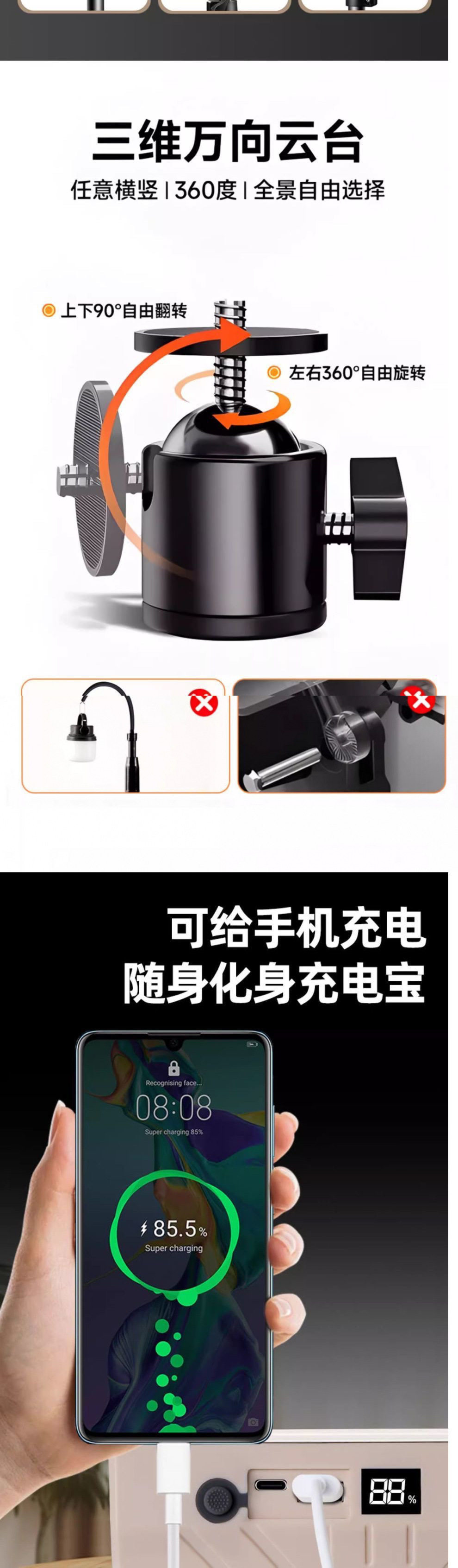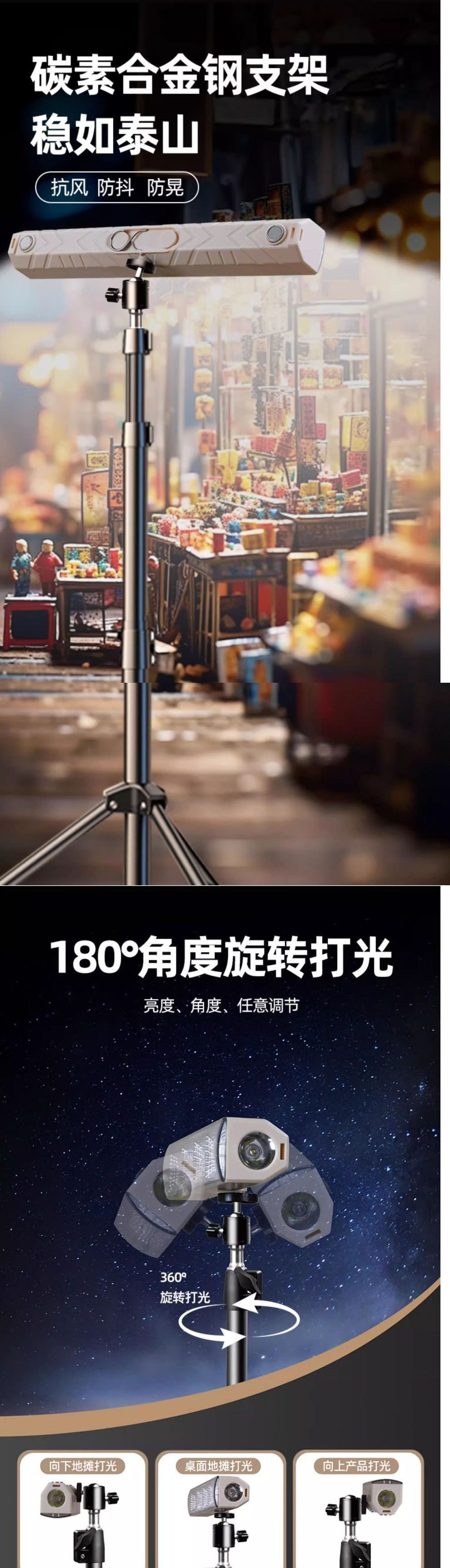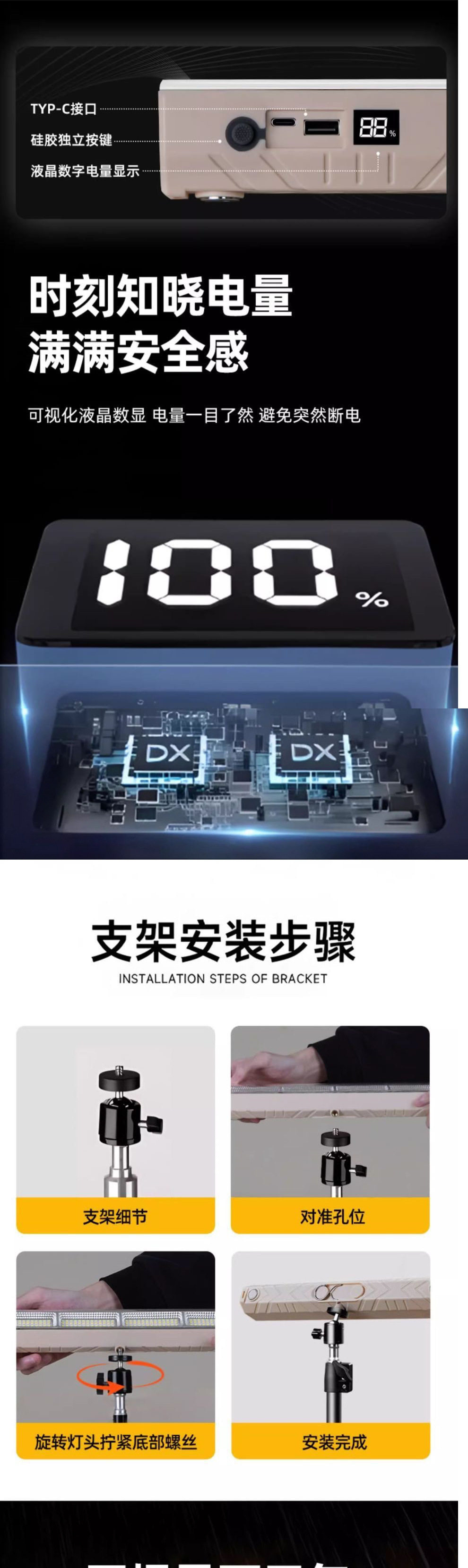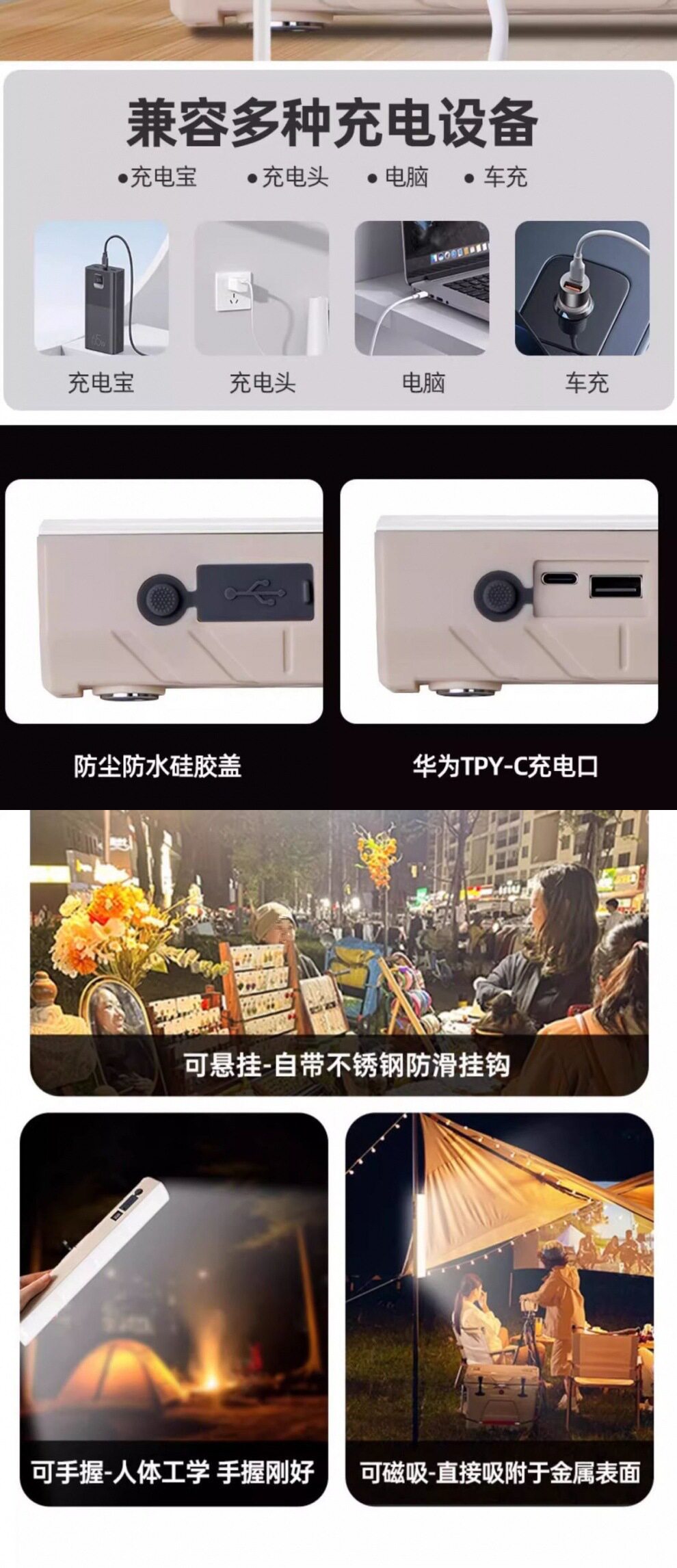 New Camping Style Light Power Outage Emergency Light Led Light Rechargeable Mobile Three-Tone Light Strong Light Bracket Night Market Stall