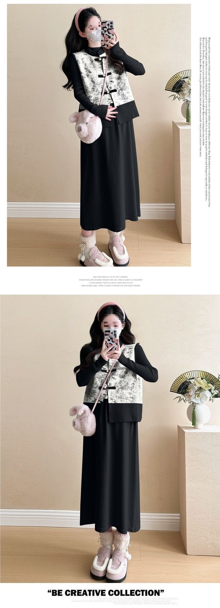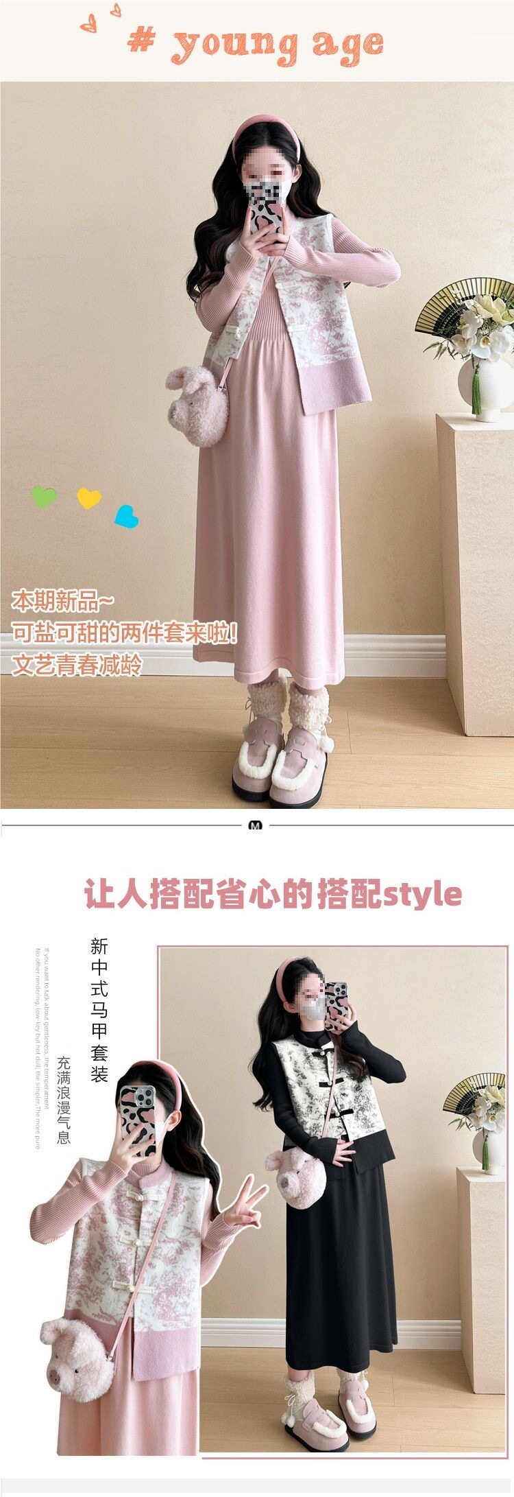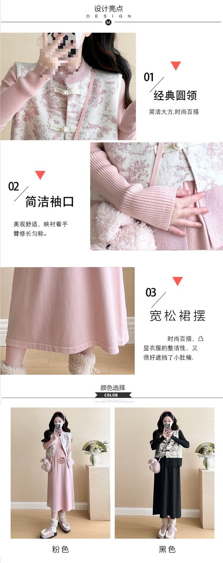 Maternity Dress Suit Autumn and Winter Outer Wear Knitted Bottoming Skirt Sweater Vest Top Two-Piece Set Autumn and Winter Clothing for Women