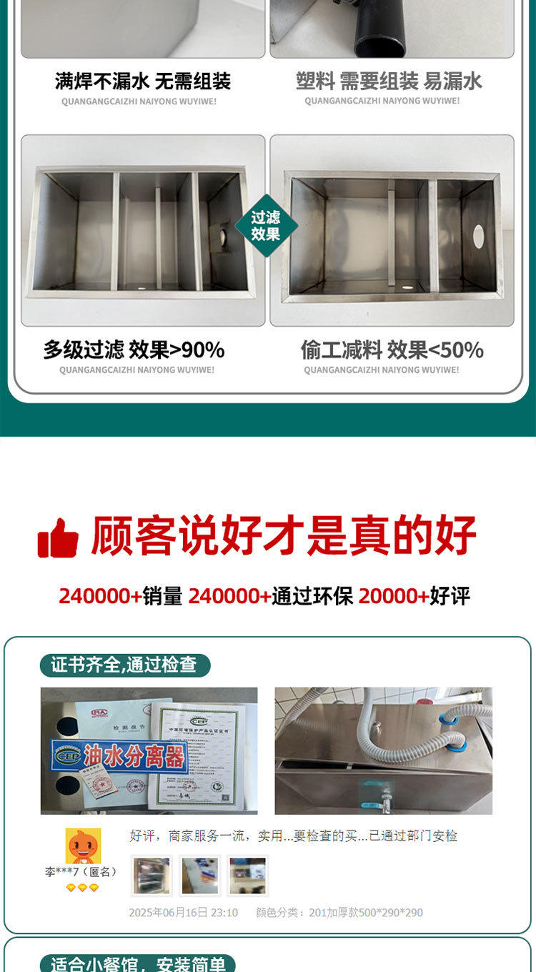 Oil-Water Separator Kitchen Catering Restaurant Household Commercial Stainless Steel Sewer Small Oil Filter Grease Trap