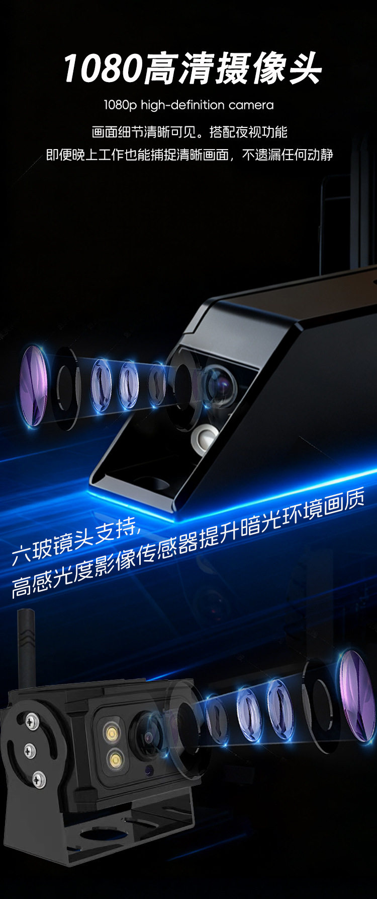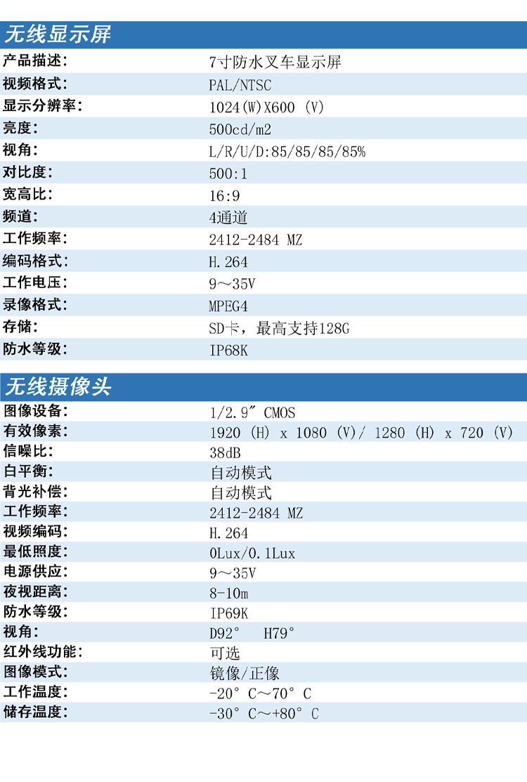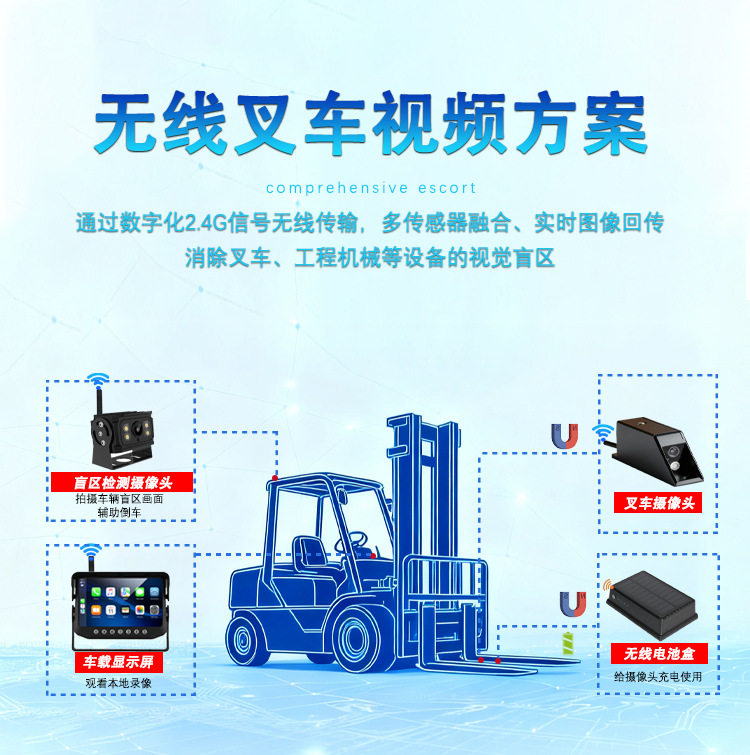 7inch Wireless Forklift Monitoring Crane Blind Zone Observation Display High-Definition Image Forklift 1080P Driving Recorder