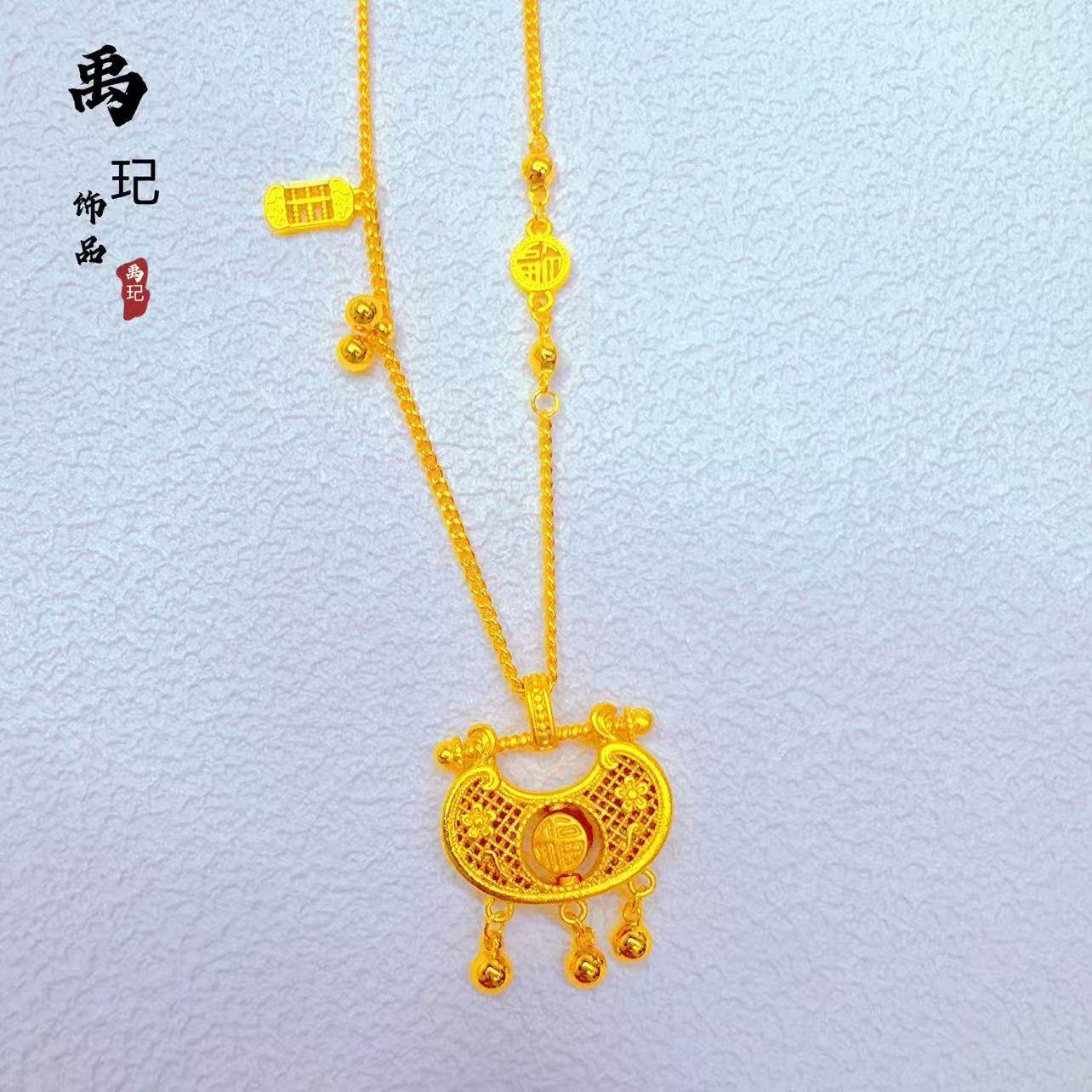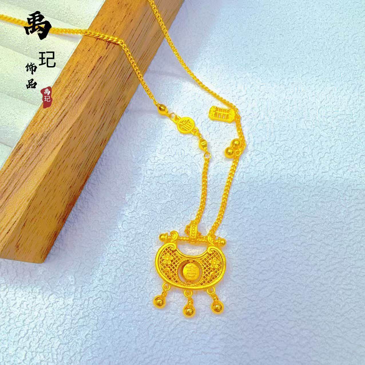 Tiktok Popular Sand Gold Rotatable Auspicious Ruyi Blessing Lock Necklace for Women Hollow Filigree Bell Clavicle Chain Wholesale