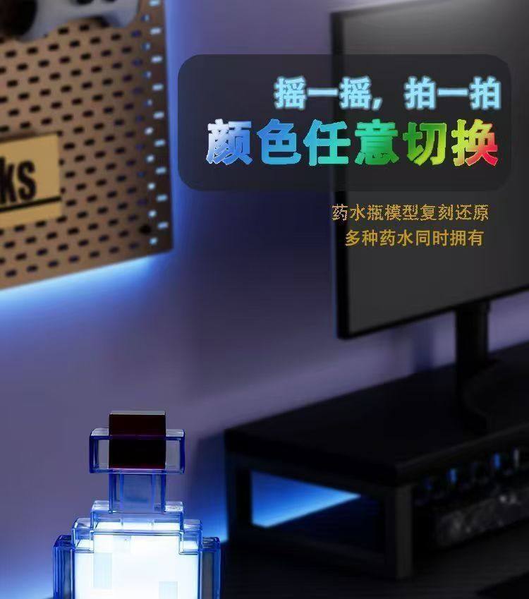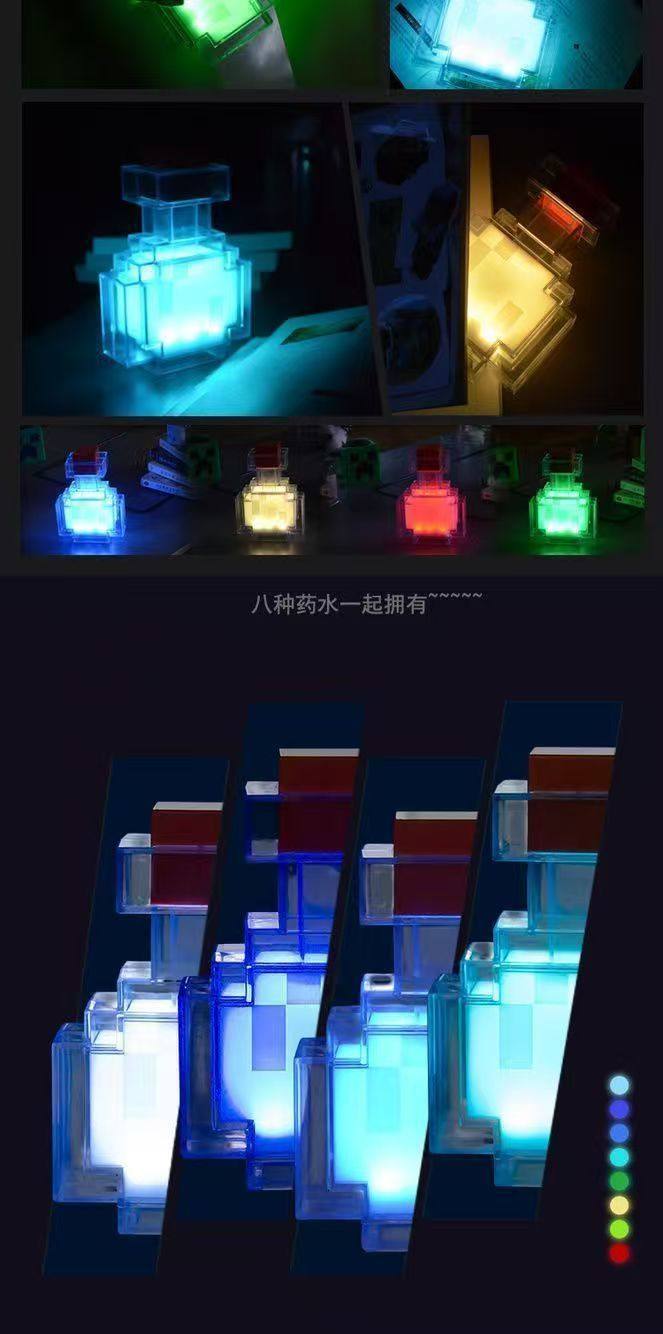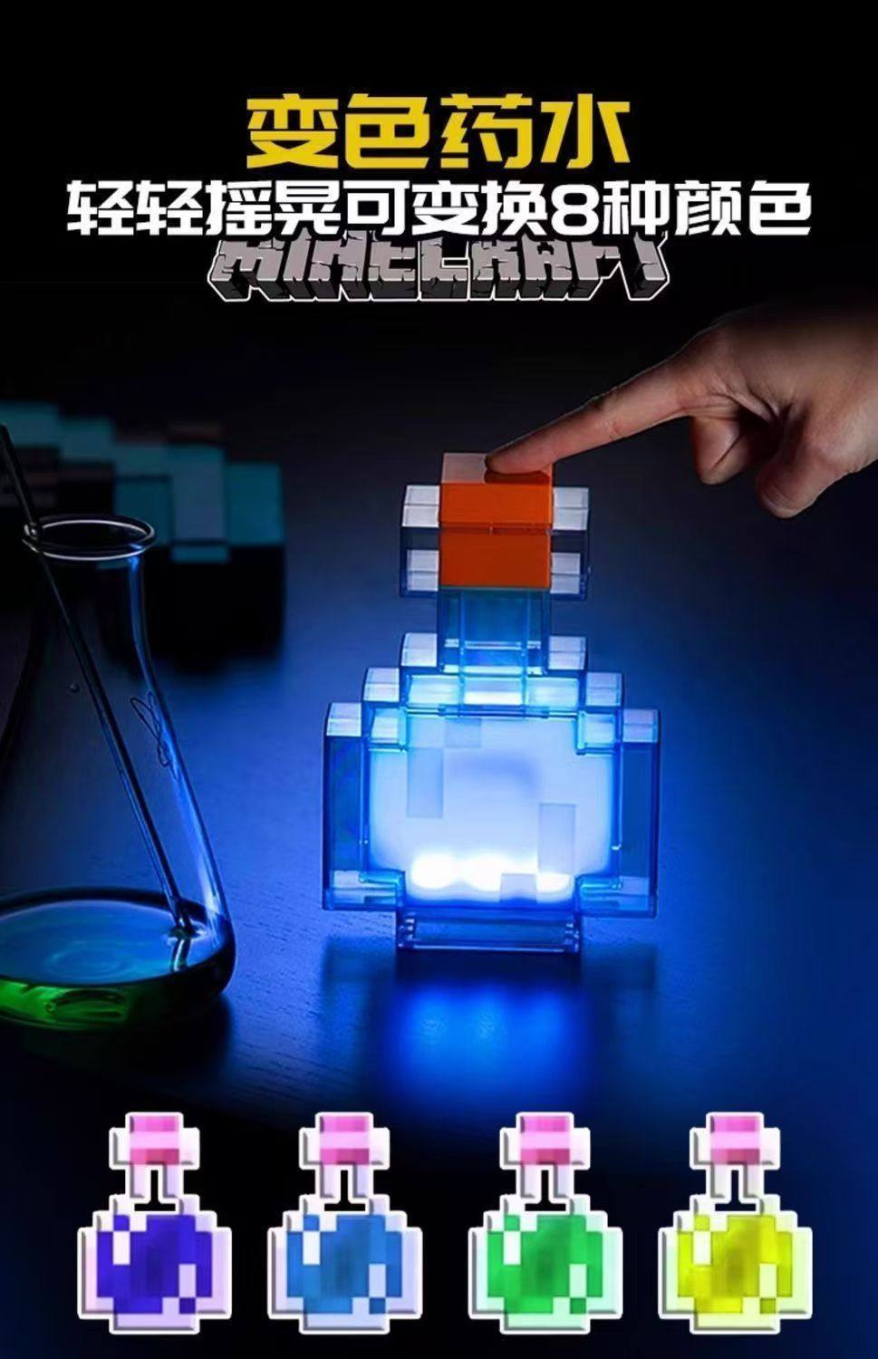 Minecraft Peripheral Mini Potion Bottle Shakes and Changes Color, Seven-Color Soft Light Atmosphere Night Light Kidsren's Toy