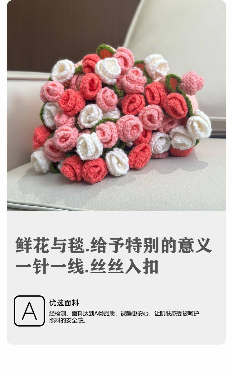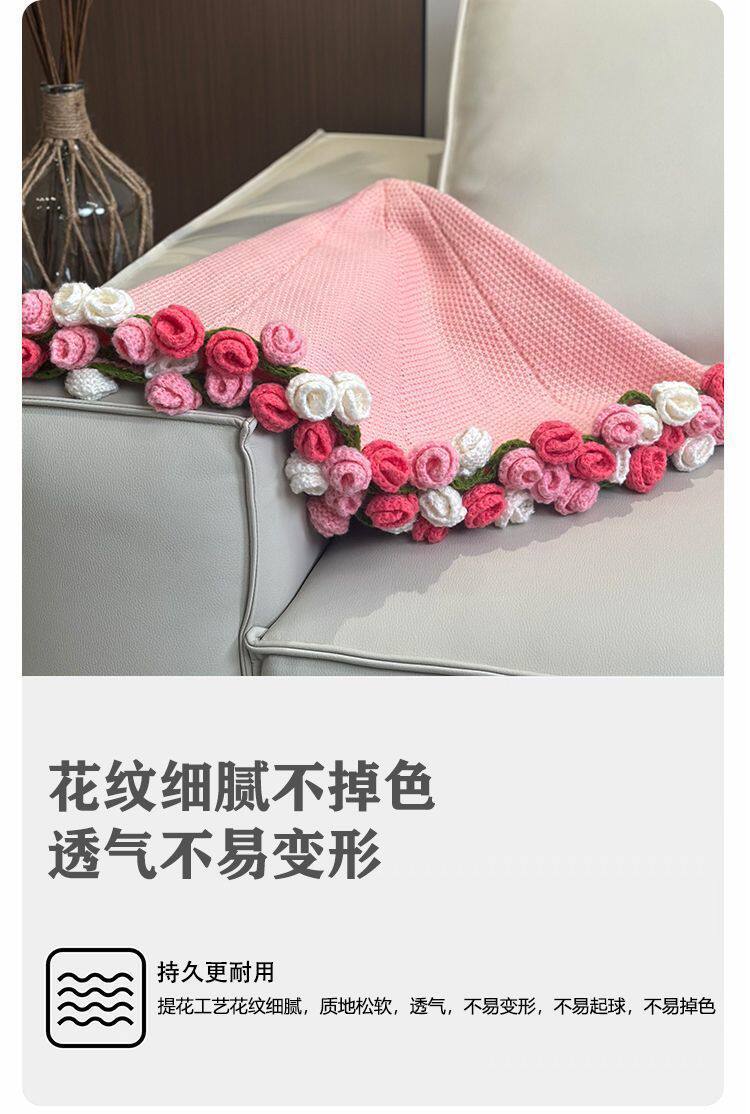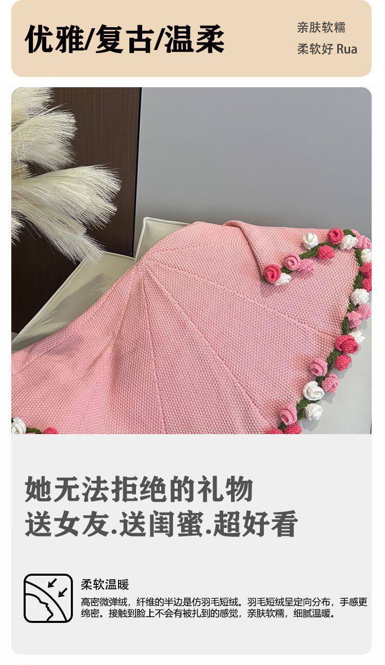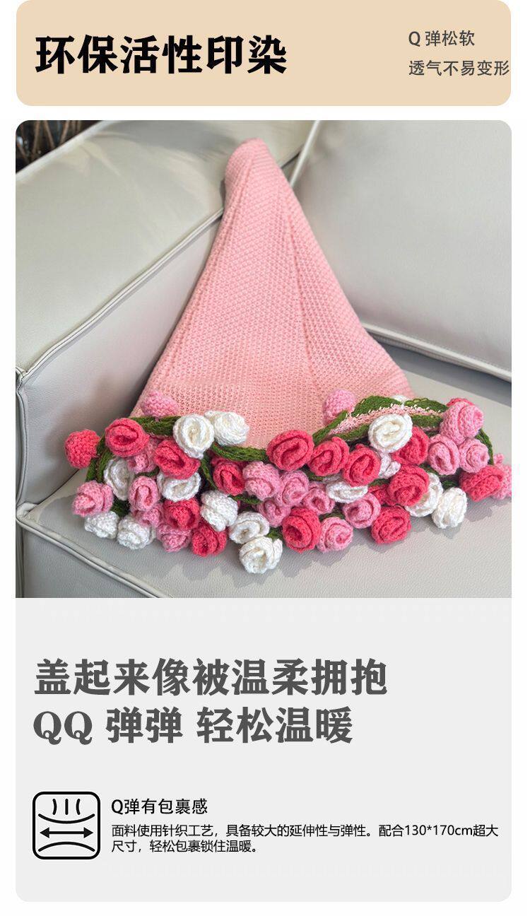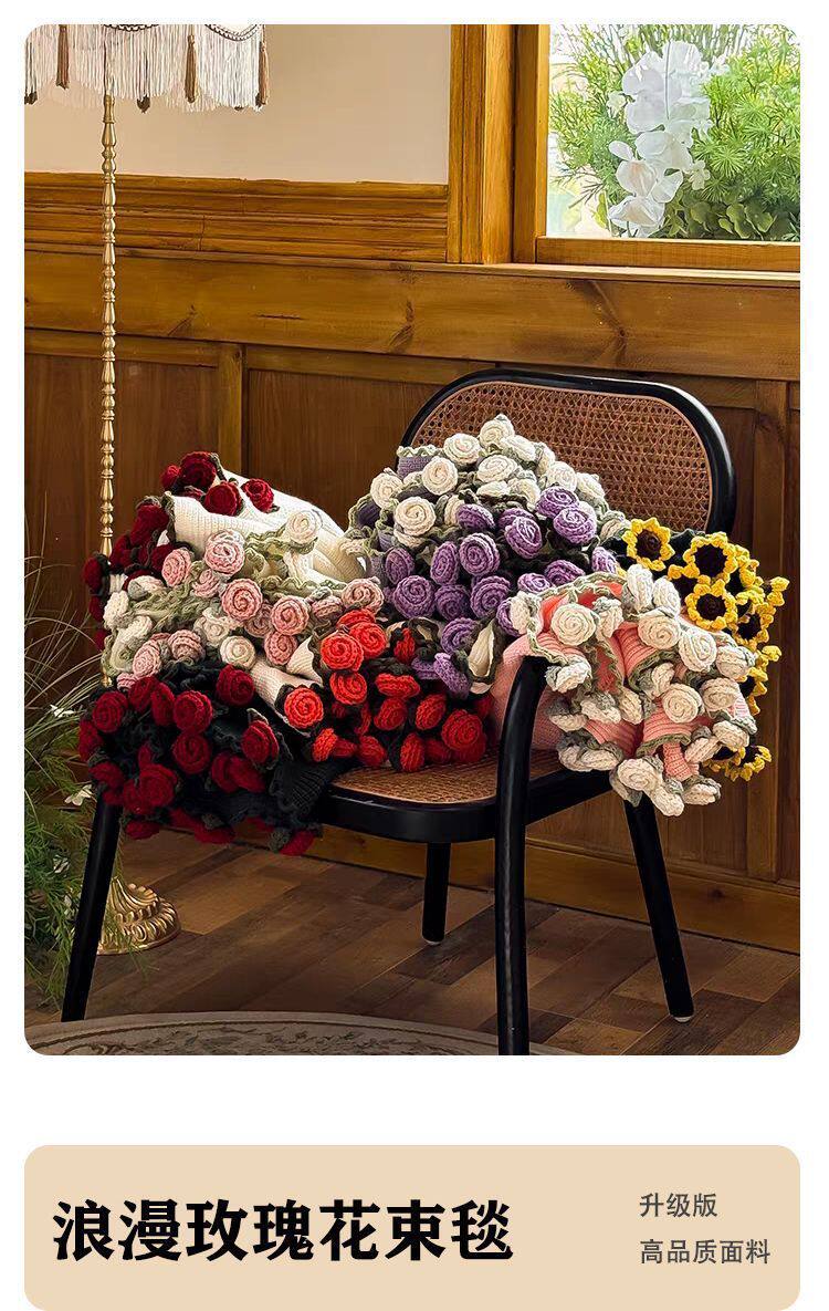 Rose Bouquet Finished Knitted Blanket Hand-Knitted Gift for Girls Sofa Nap Blanket Photo Props