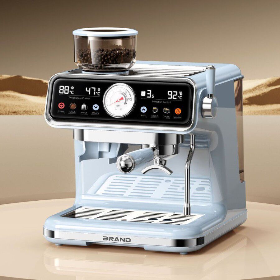Cross-Border Italian Semi-Automatic Coffee Machine, Pump-Type Household Semi-Automatic Coffee Machine with Integrated Bean Grinding and Milk Frothing, Cold Brew Coffee Machine