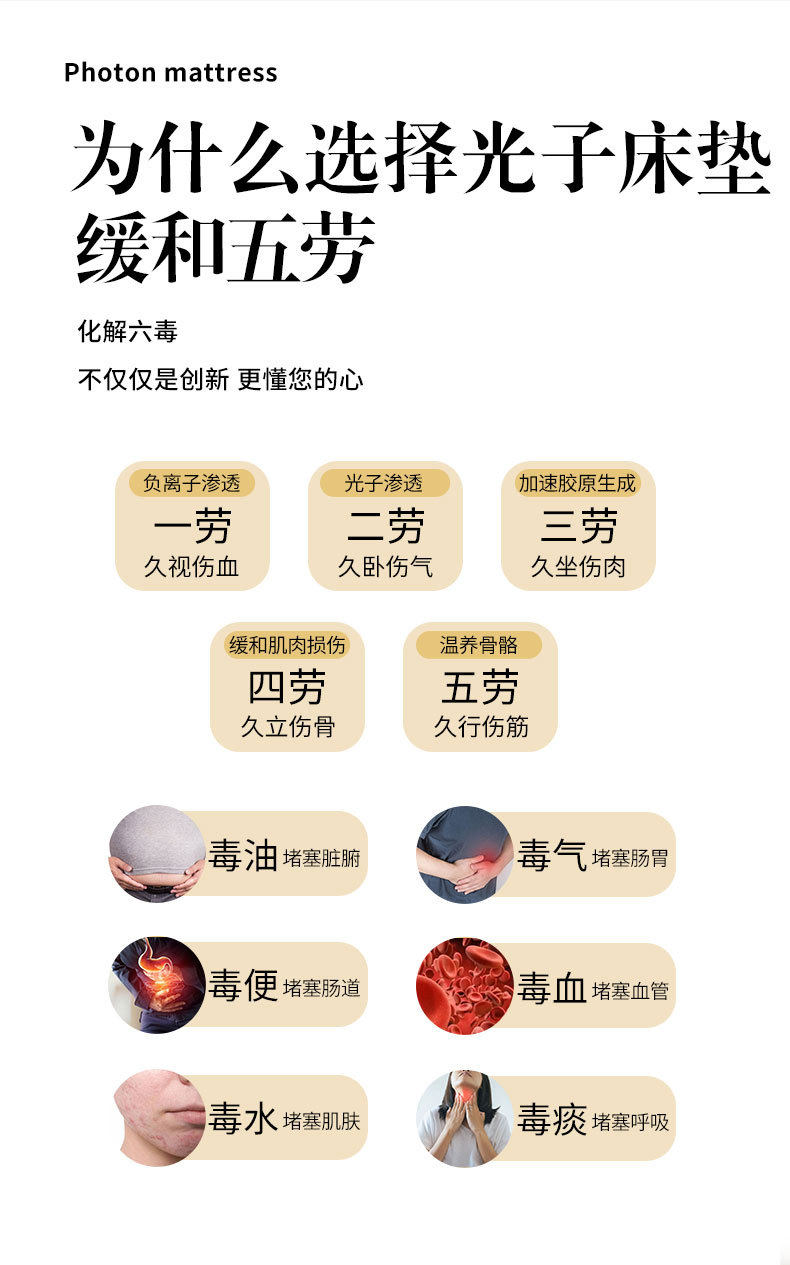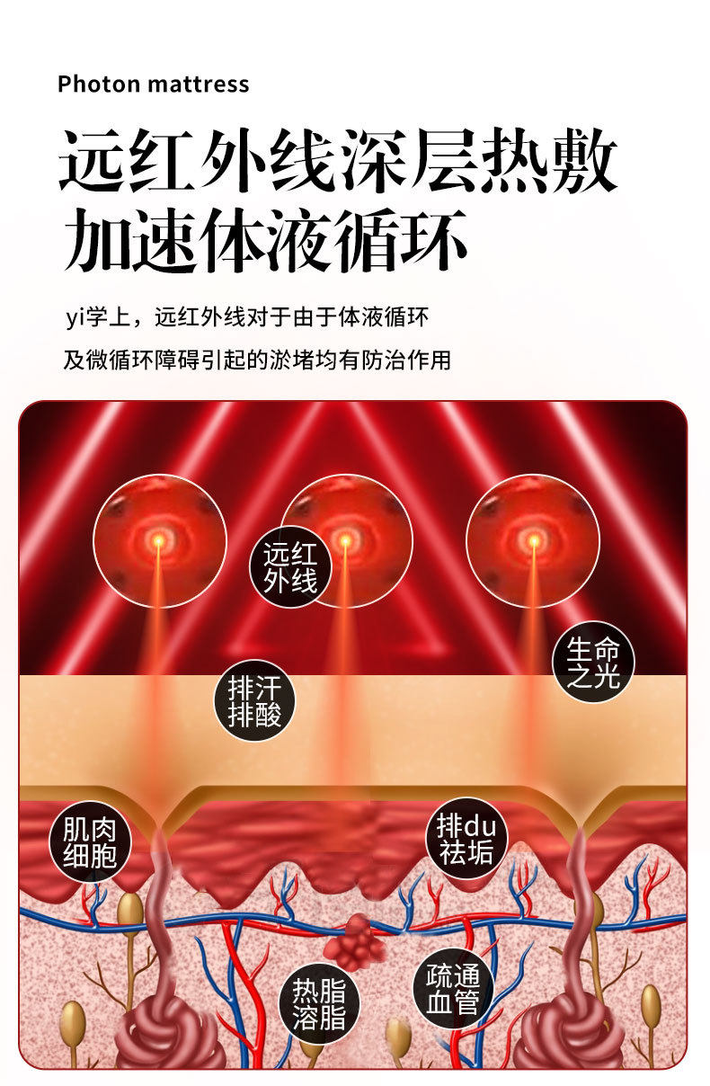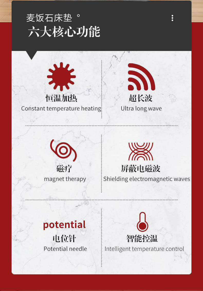 Hexagonal Maifan Stone Red Light Photon Beauty Mattress with Heating Magnetic Field Energy Stone Multifunctional Negative Ion Warmth