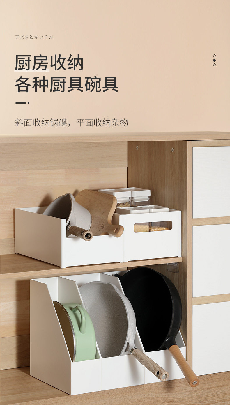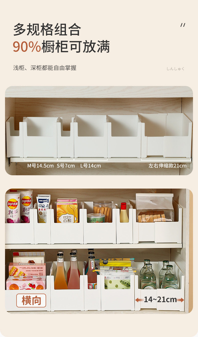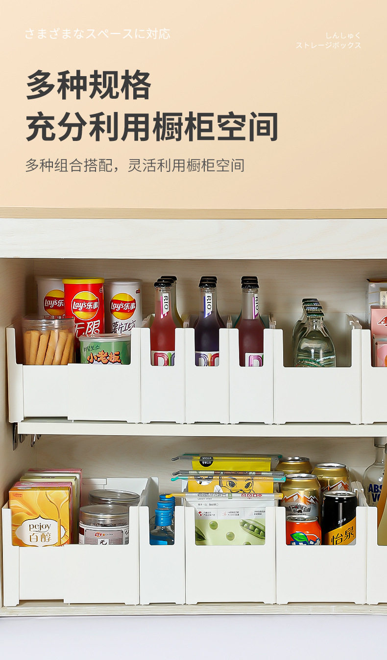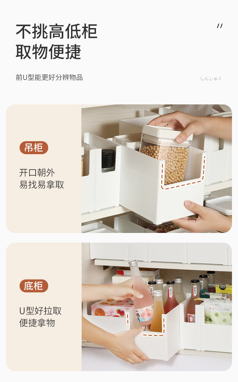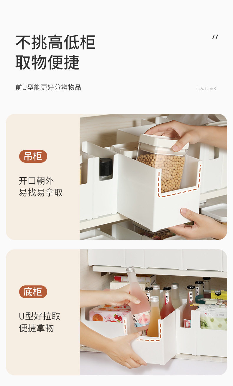 Japanese-Style Cabinet Storage Box with U-Shaped Front Opening, Categorized Storage Basket, Right-Angle Design, Side-By-Side Storage, Space-Saving