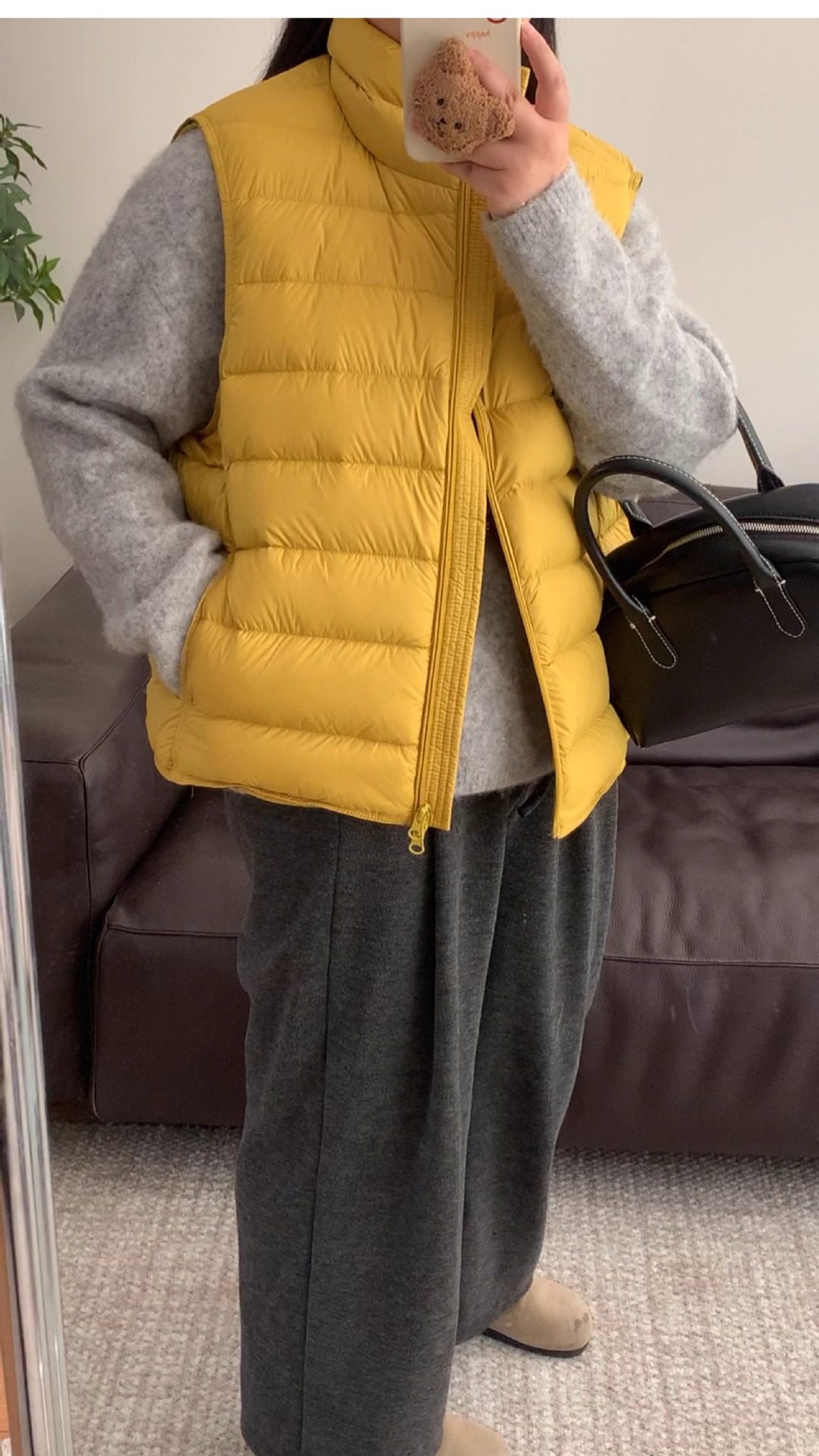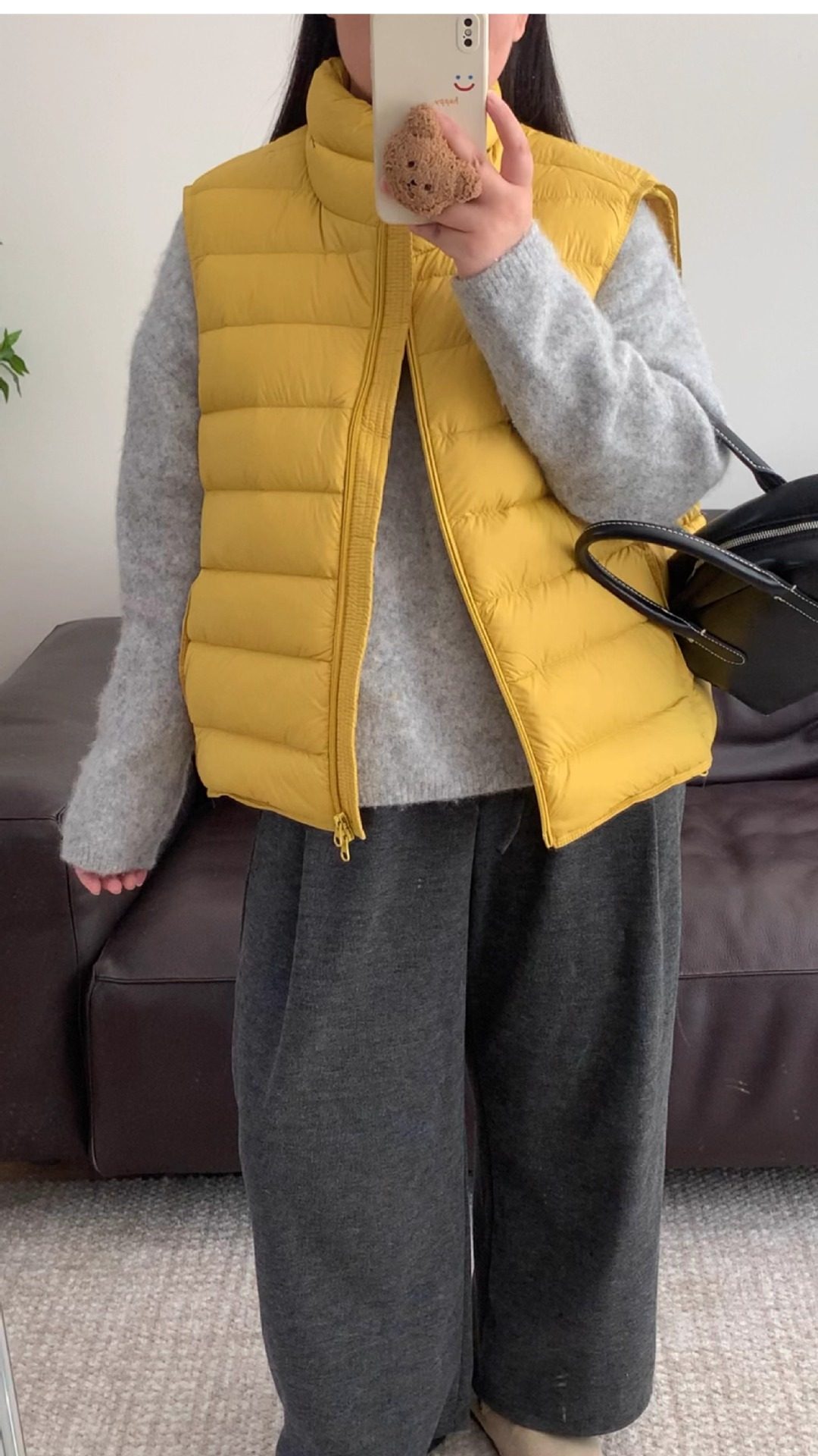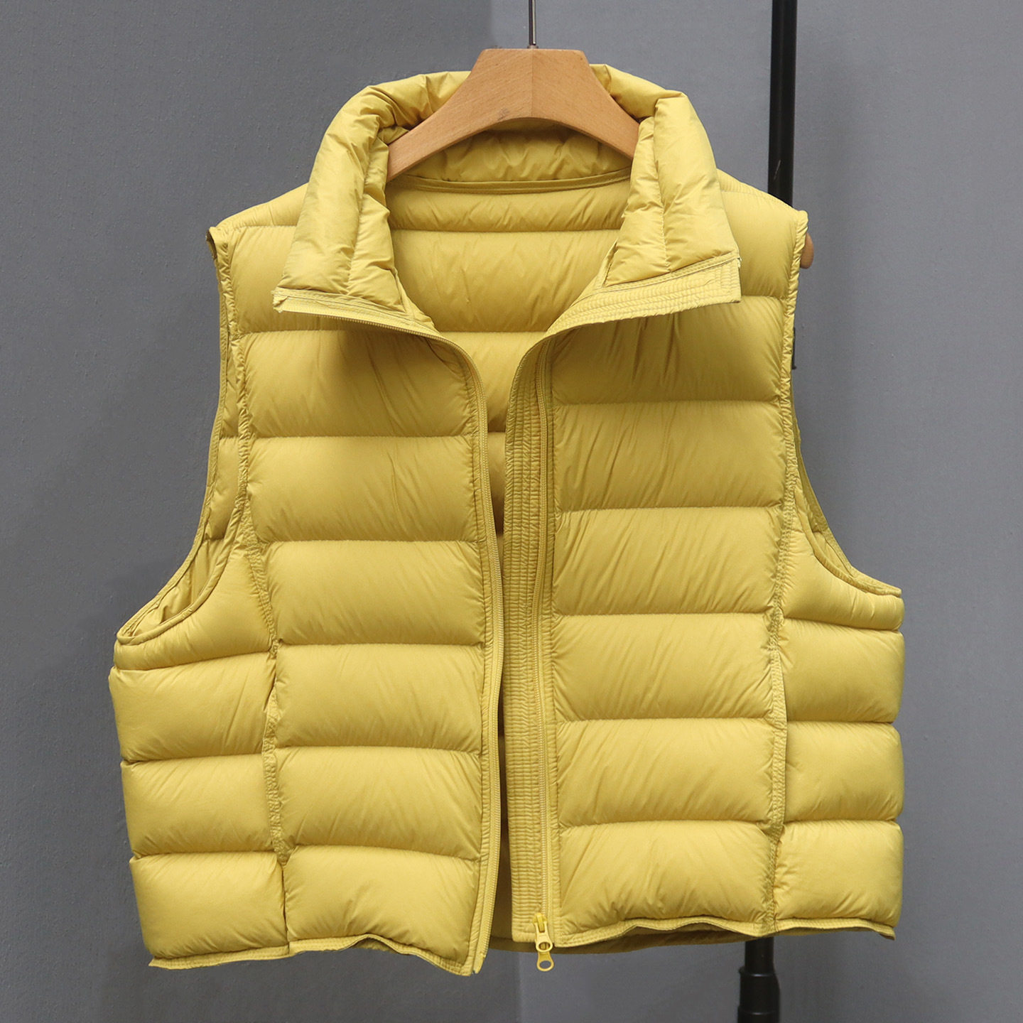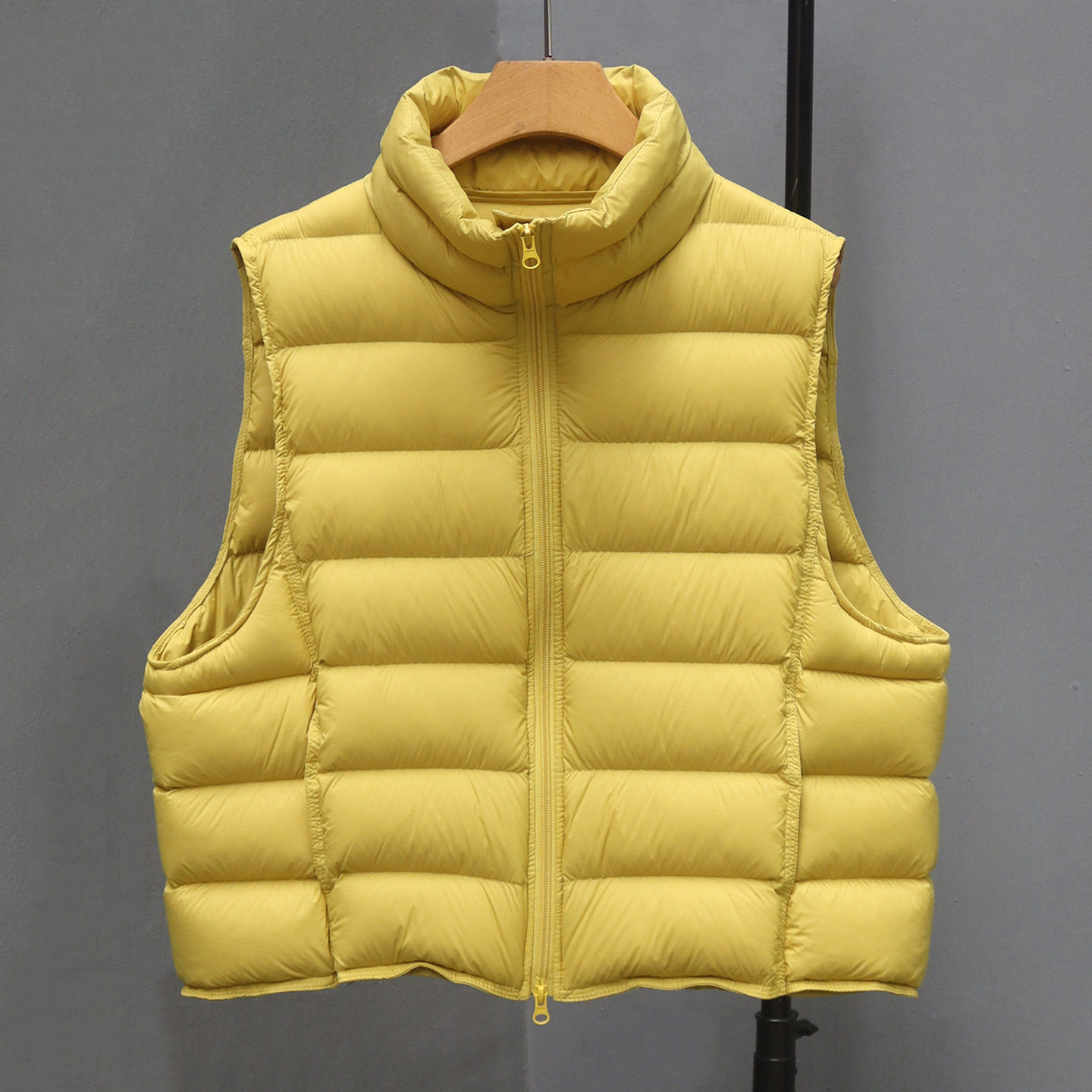 Yellow Ribbed down Vest 2025 Winter New Korean Style Simple Petite 90 White Duck down Vest Jacket